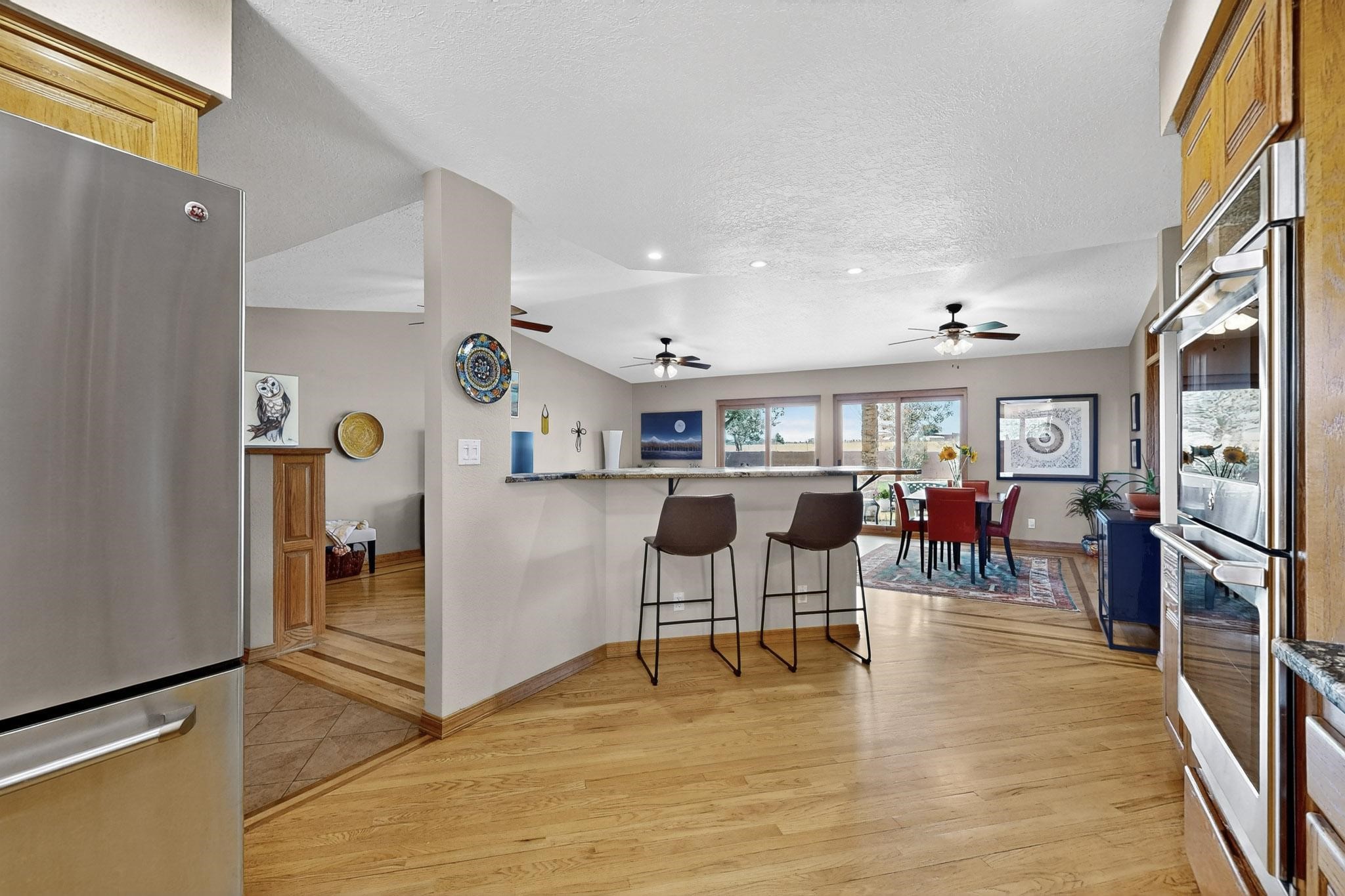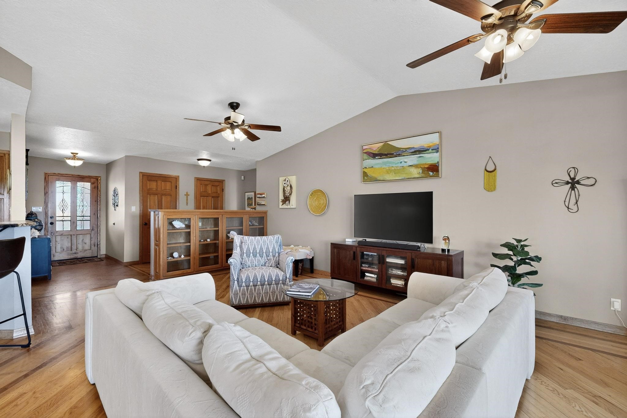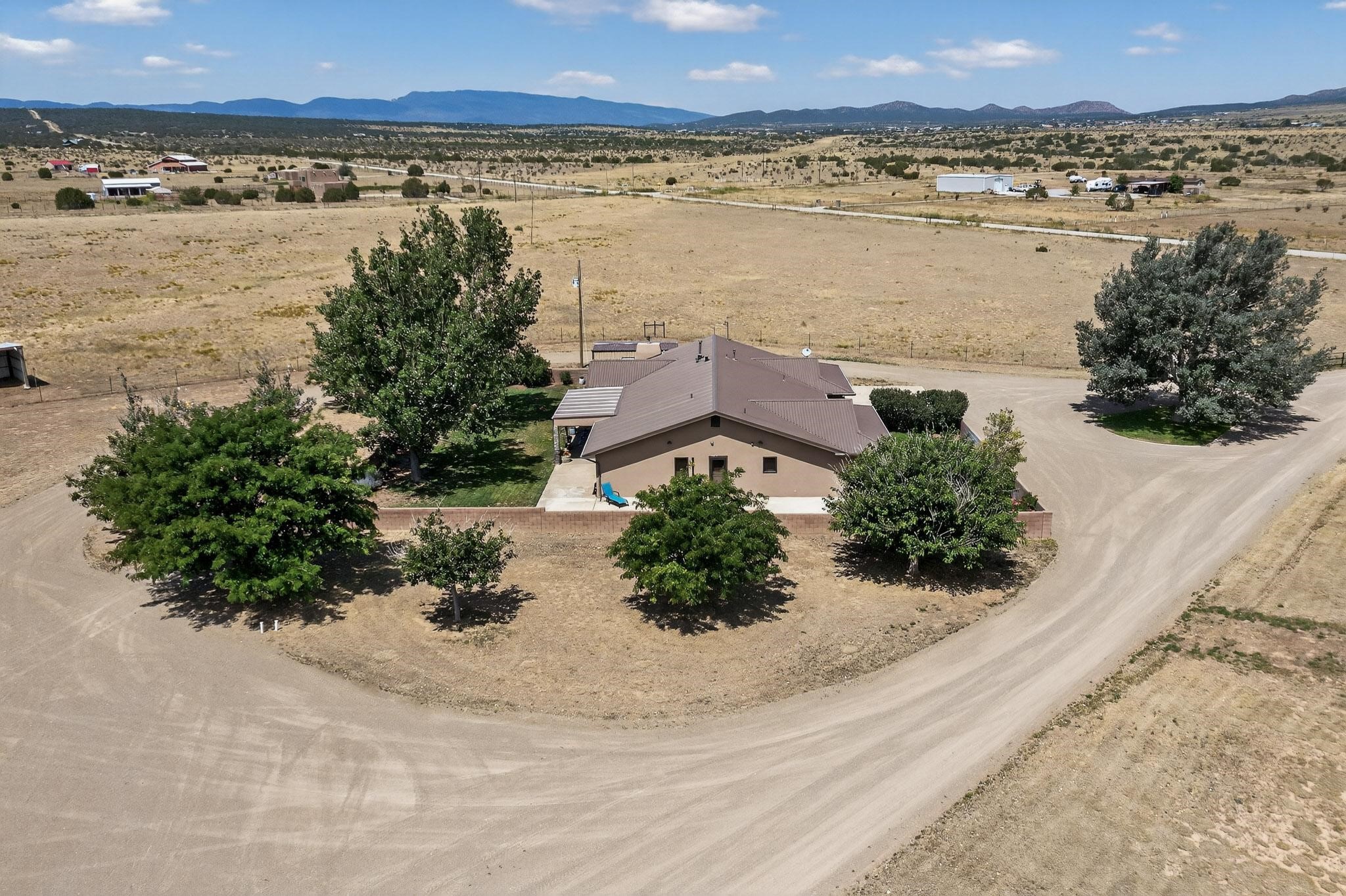 This true equine estate has finally come on the market so don't miss your opportunity to own this amazing property. 38.8 acres fully fenced and cross fenced! 3051 heated sqft of main home and guest suite. This estate home boasts hardwood floors throughout, with custom touches, large spacious open floor plan with great room and kitchen for entertaining, primary bedroom suite with wall to wall closets, double vanities, and exterior access. 3bed 2bath main home, 2 living areas, gourmet stainless steel kitchen, laundry room with storage. There are so many built in storage and closets the possibilities are endless on how you use it. Oversized finished 2 car garage with built in storage. 4 stall barn with finished tack room, and 1 bedroom, 1 bath, kitchenette, walk in closet: guest suite.Not only are you going to love this estate, but your animals will love it too! Full sized arena for your use and three cross fenced pastures all with barn loafing sheds. Water has been run throughout the property to the barns for the convenience of keeping the critters taken care of. The approx. 2300 sqft barn has pull through capability, a finished tack room, 4 walk out stalls, hay storage, rubber floor mats, and a 363 sqft guest living quarters! A large equine estate like this doesn't come up for sale in the East Mountains/Southern Santa Fe County area too often, and none are as nice and custom as this property. If you are needing a place to kick up your boots, let your critters stretch their legs, and for yourself to relax from dawn to dusk, you have found your 38.8 acre slice of paradise with this equine estate.
