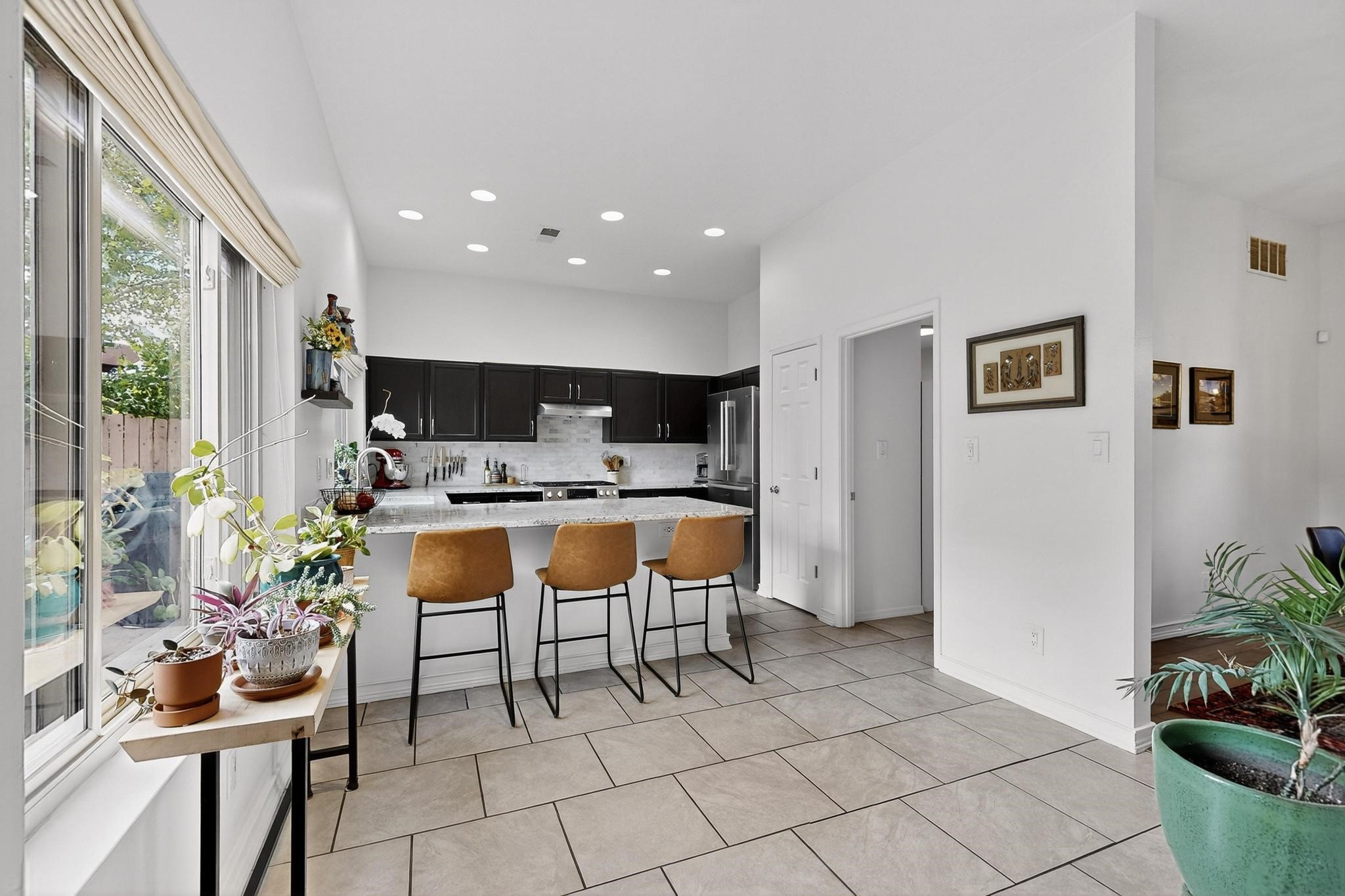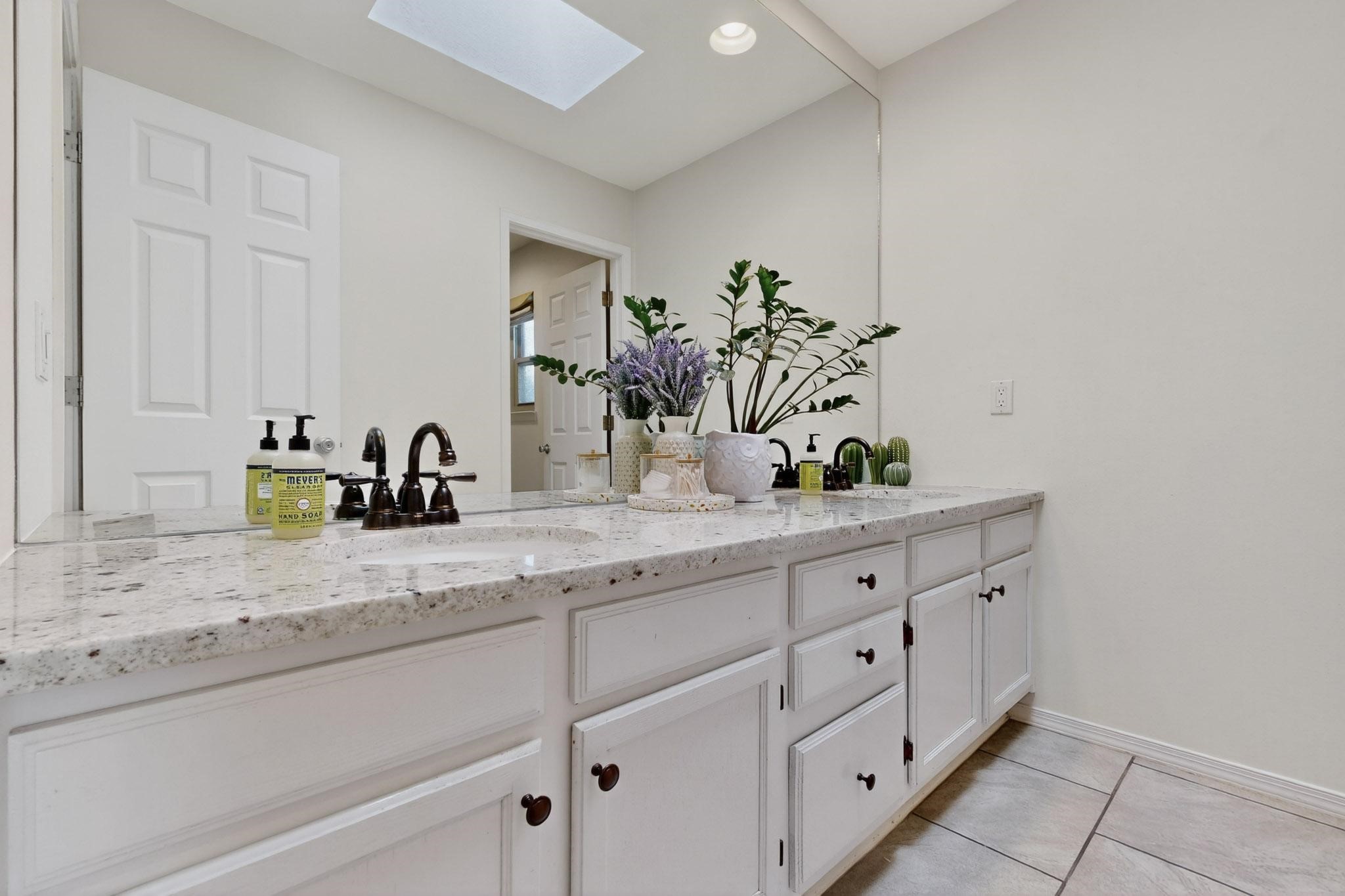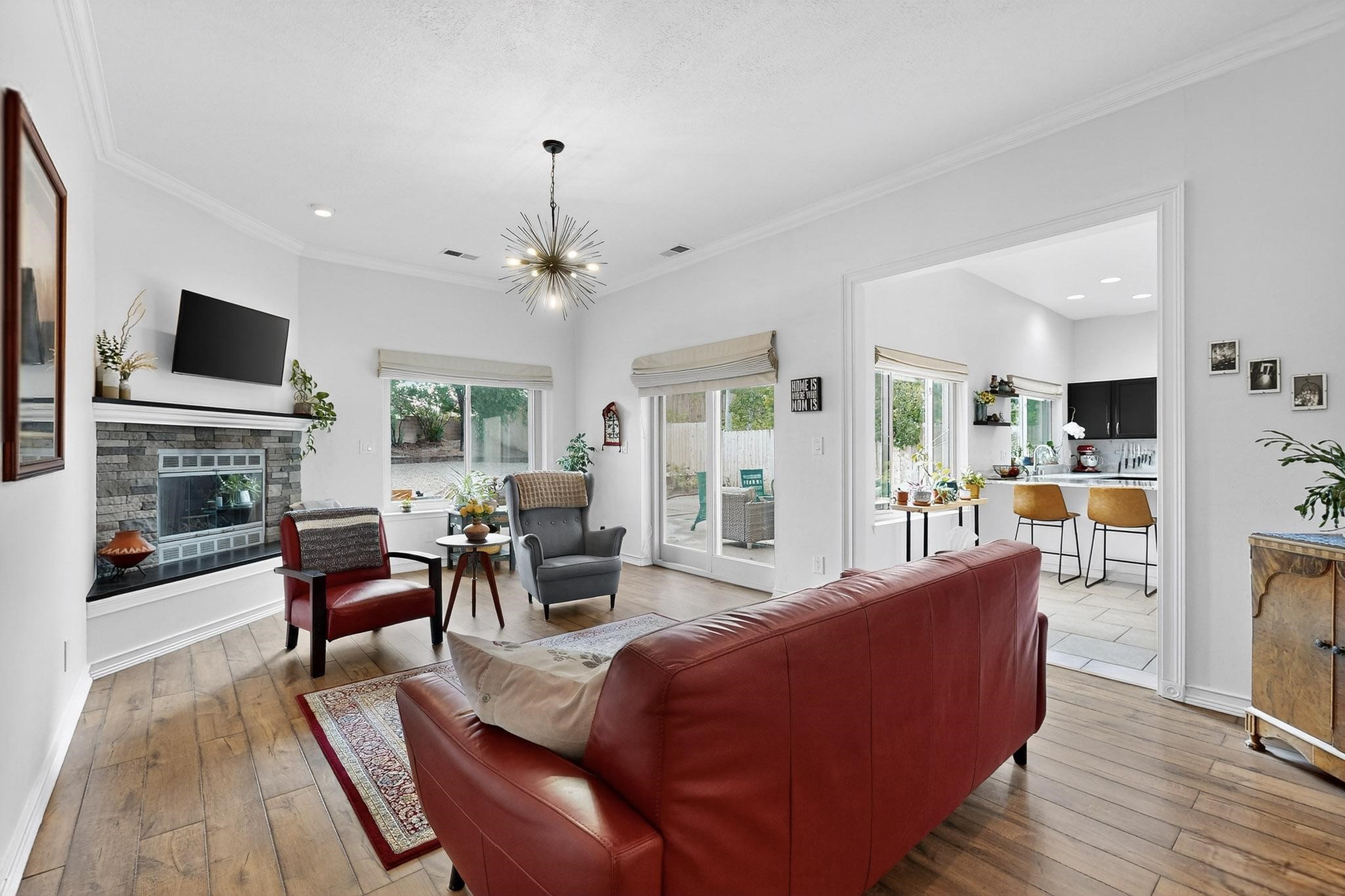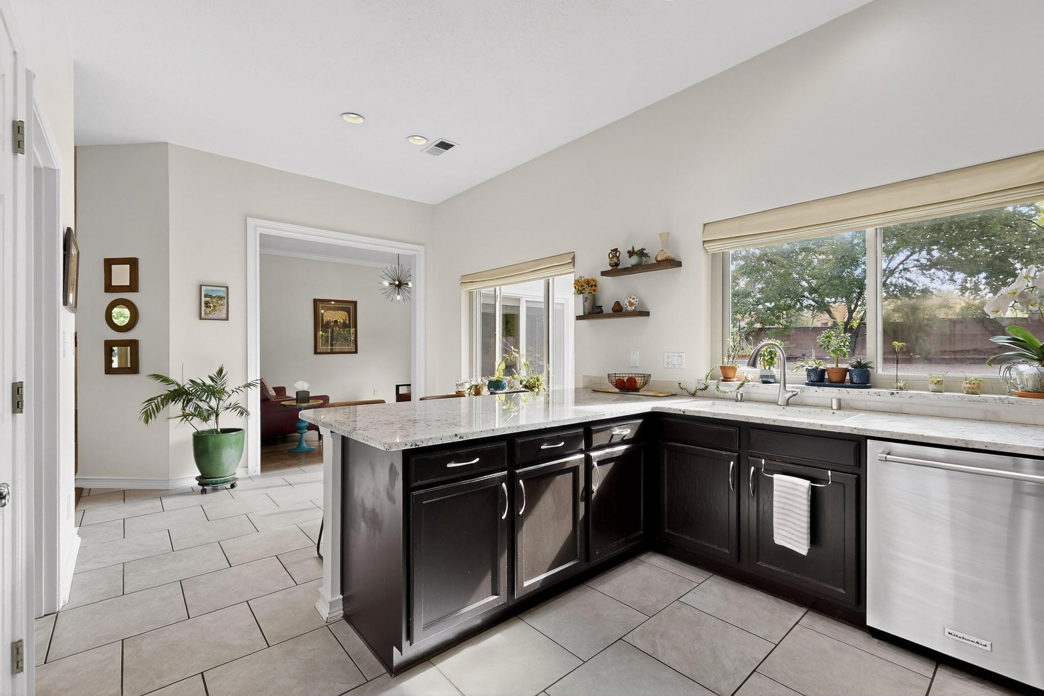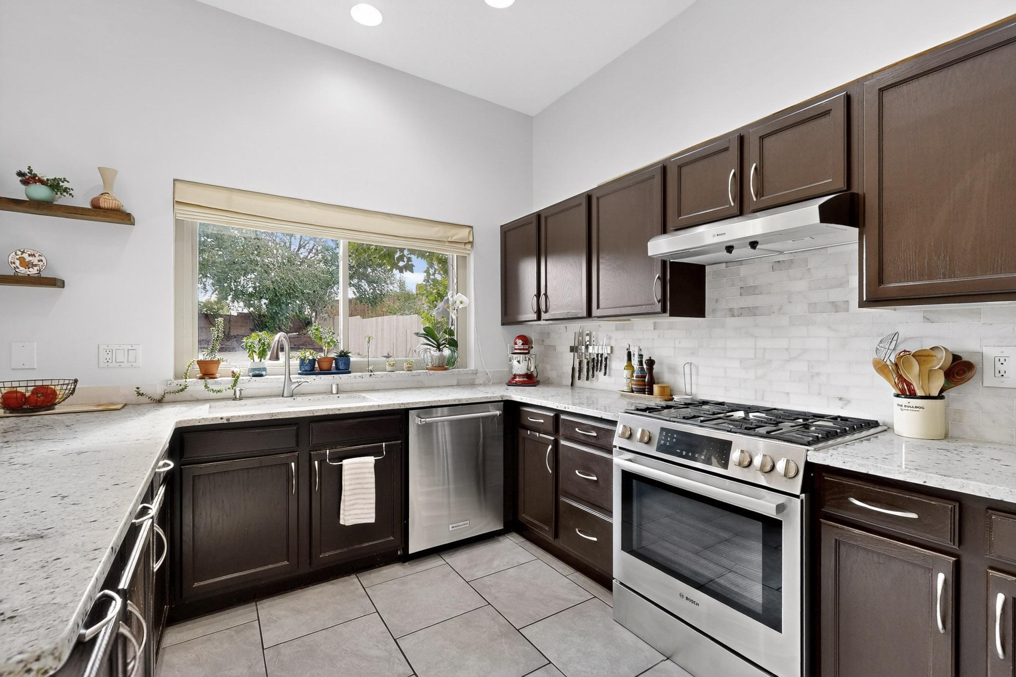 Nestled on a corner lot in the gated Vista Primera community, this beautifully updated 3-bedroom, 2-bath home is move-in ready. The open-concept layout features a modern kitchen with stainless steel appliances and granite countertops, extending into both the kitchen and bathrooms. Enjoy the warmth of the gas fireplace in the living area, or open the sliding door to create a seamless indoor-outdoor entertaining space.Additional highlights include a 2-car attached garage, low-maintenance xeriscaped yard, and a fully fenced backyard for added privacy. Vista Primera offers a gated entrance, community park, and convenient access to walking and biking trails--making it an ideal place to call home.