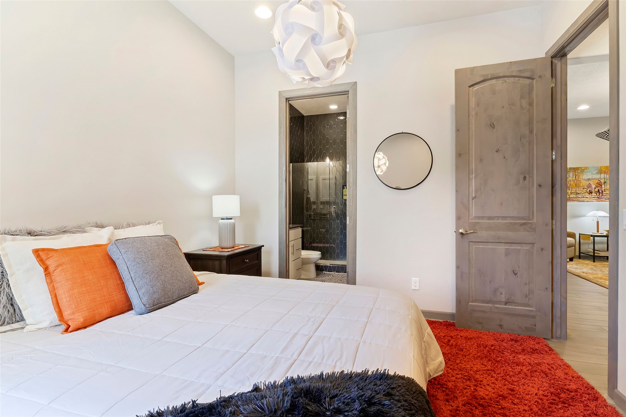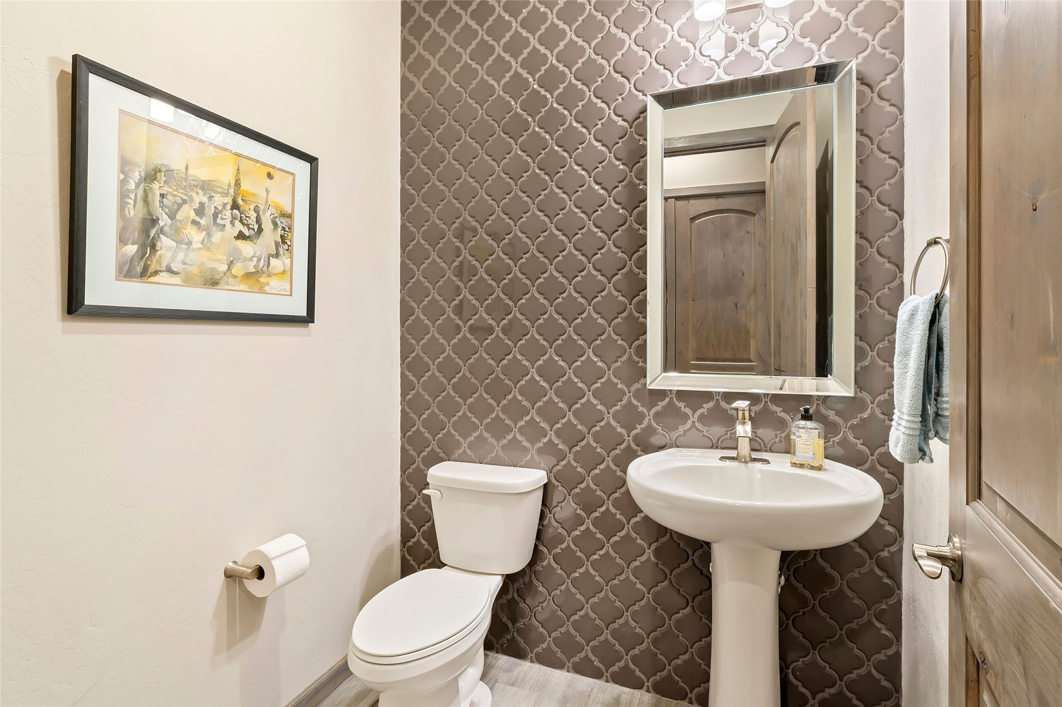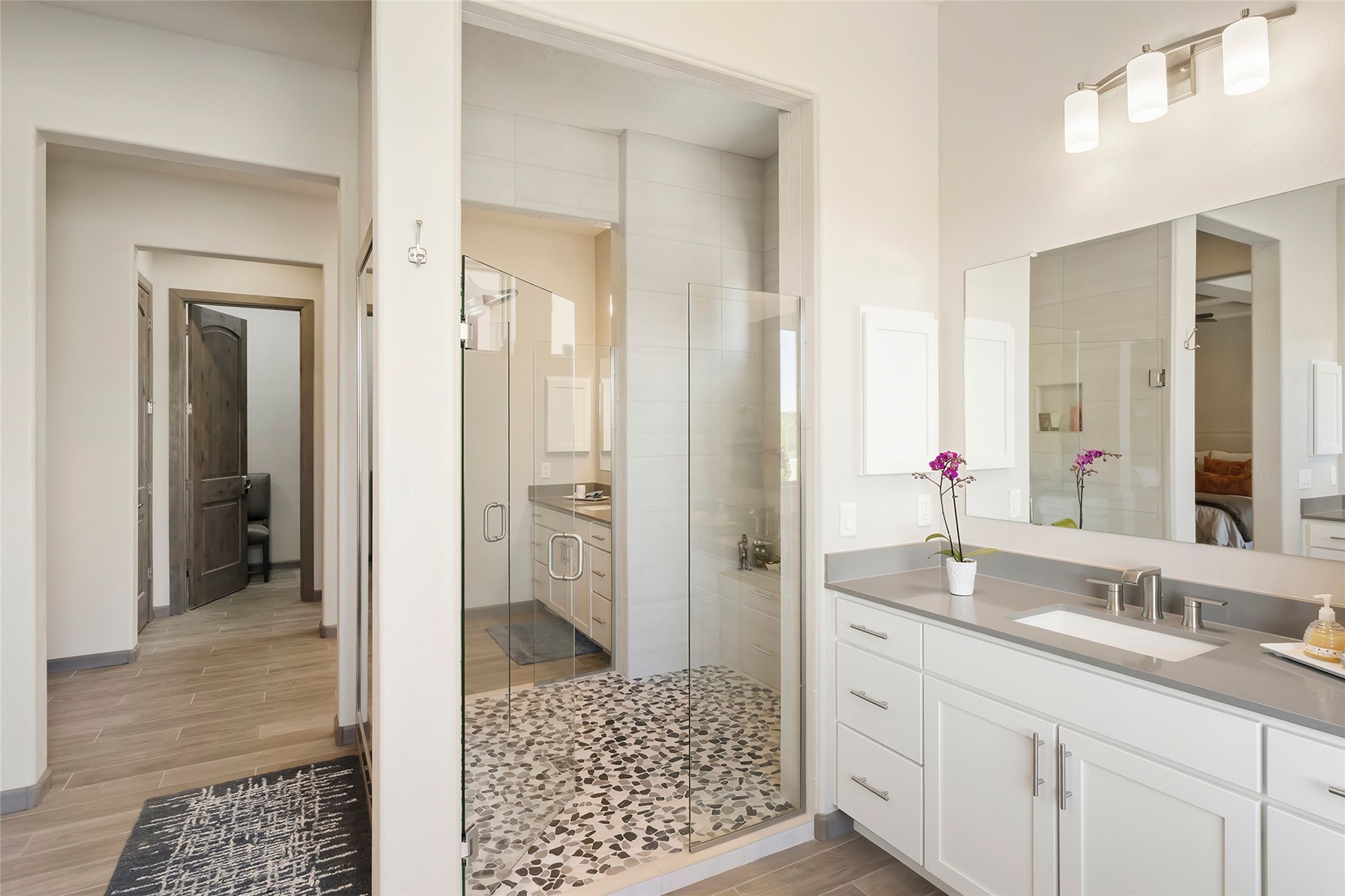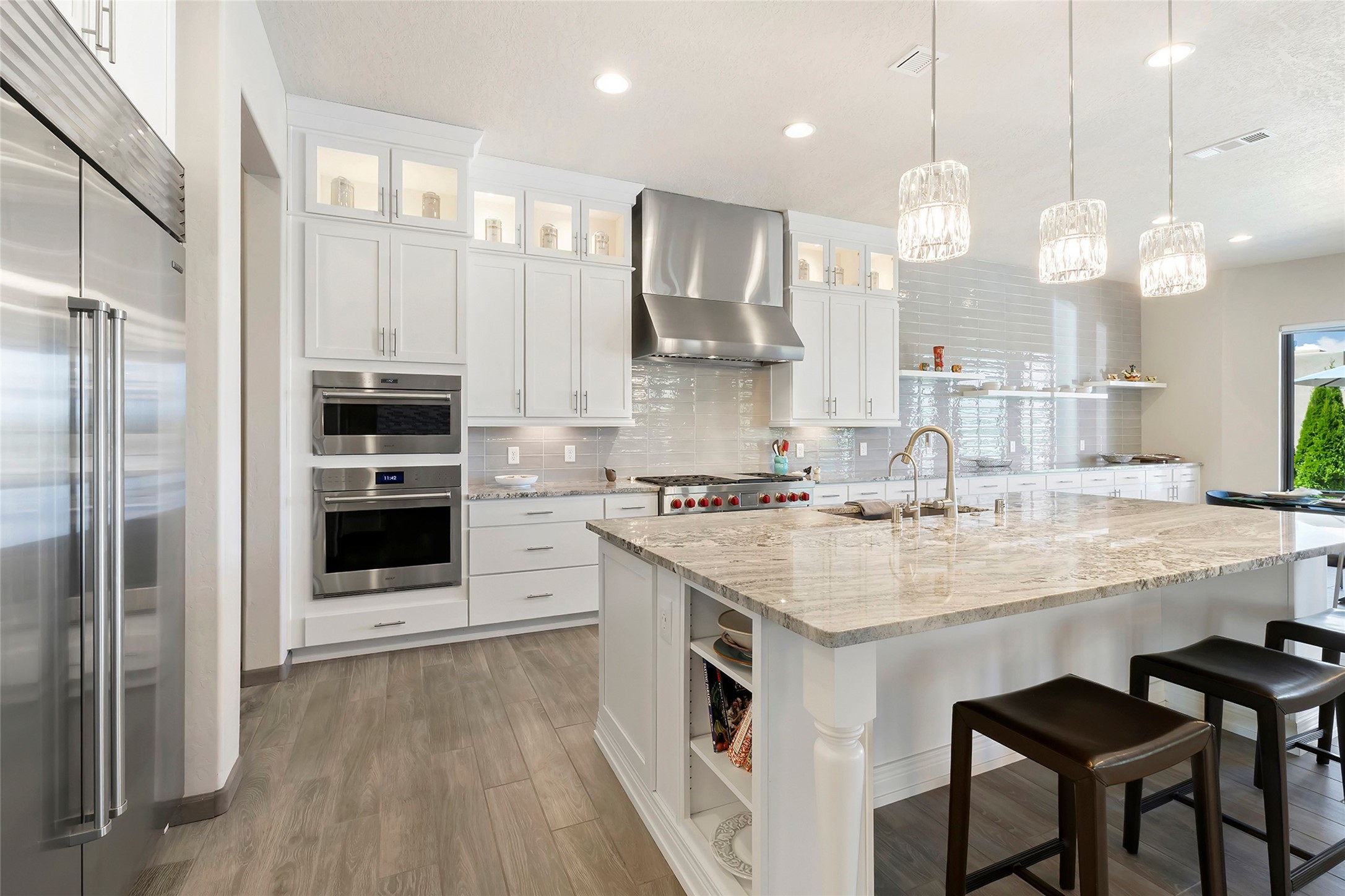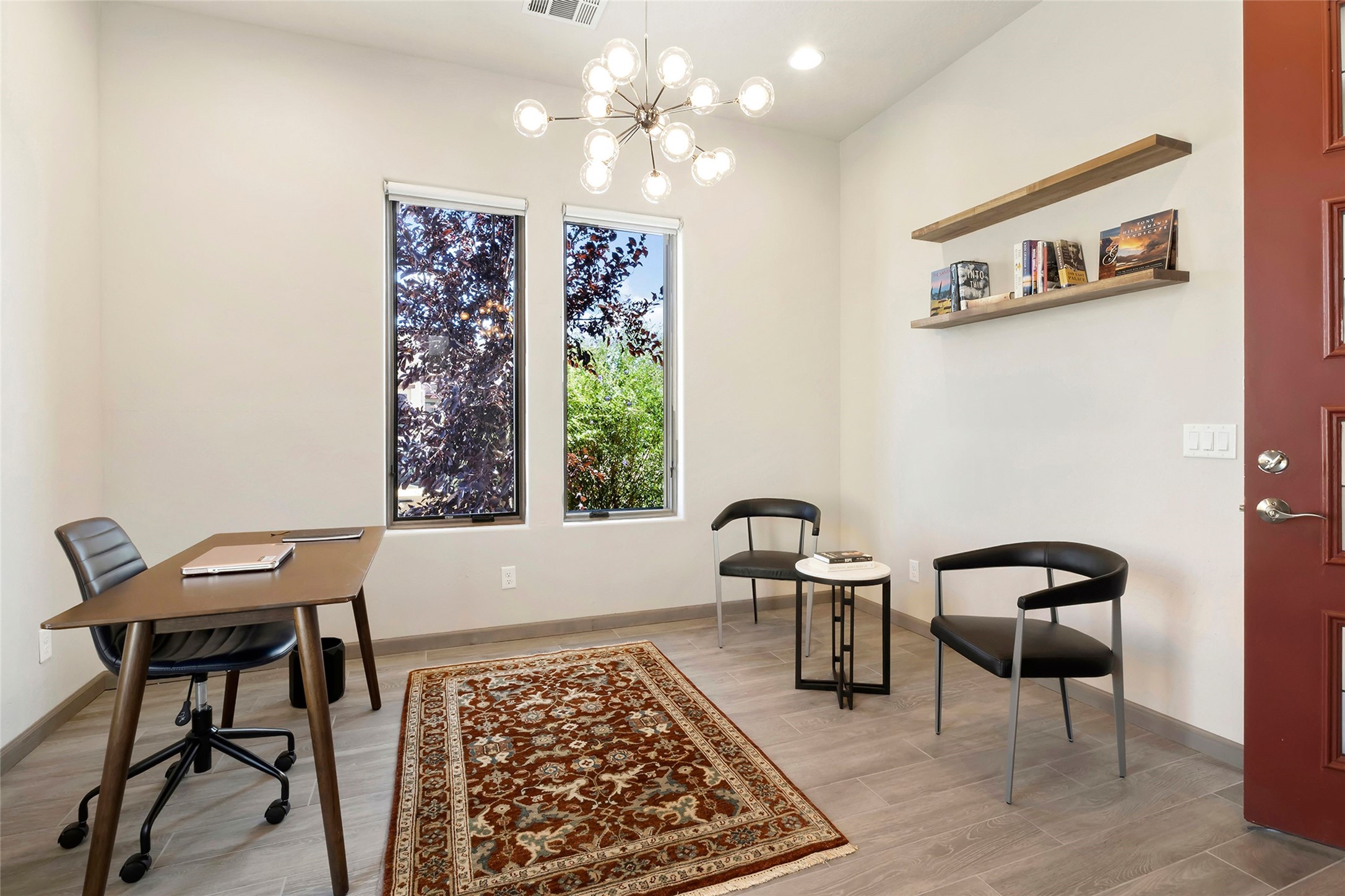 Live the Ultimate Las Campanas Lifestyle. Perfectly sited on a premier elevated lot with Jemez Mountain and dramatic sunset views, this exciting 2022-built residence with a private casita and 3-car garage is a rare offering. Located within walking distance of The Club at Las Campanas, this exceptional home seamlessly blends sophisticated modern design with the true essence of Santa Fe. The gated front entrance opens to an intimate courtyard with a tranquil fountain, which connects the main home and casita. Thoughtfully designed, this floor plan highlights a spectacular living room ideal for both relaxed living and grand entertaining with western views which frame the space, rich wood plank and and beam ceiling accents, a modern gas fireplace with surround stacked stone, wet bar or barista area and retractable glass doors which create a true indoor-outdoor living experience. The chef's island kitchen is a delight, featuring natural stone counters, a generous breakfast bar, Wolf 6-burner range with double ovens and griddle, a Wolf wall oven and microwave, Sub-Zero refrigerator, dual dishwashers and a large walk-in pantry. This culinary haven flows into a gracious dining room with mountain views and designer lighting. The private, luxurious primary suite offers beautiful Jemez Mountain views, a cozy sitting area with fireplace and a spa-inspired bath with a soaking tub, walk-through shower, dual vanities and a custom walk-in closet. Separate from the main living areas are two guest suites, each with ensuite baths, which share a secondary living area or media room. The dedicated office with courtyard views provides an ideal work-from-home setting, while the separate casita with a 3/4 bath is an ideal guest quarters or studio. Outdoor living is elevated with multiple entertainment areas, a covered portal, two outdoor fireplaces and a built-in BBQ. This special home with smart-home technology and soft natural light throughout, defines excellence and is not to be missed.