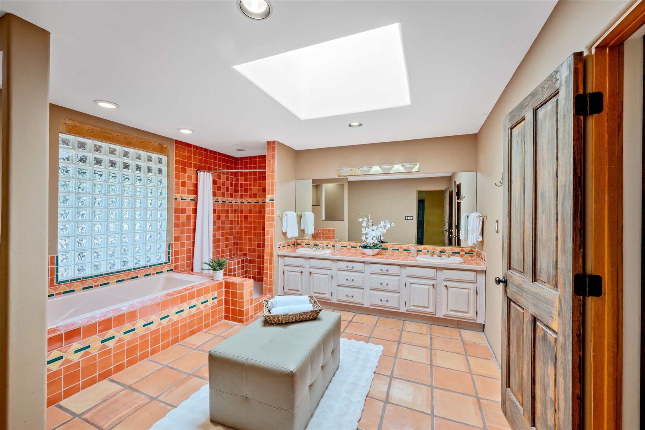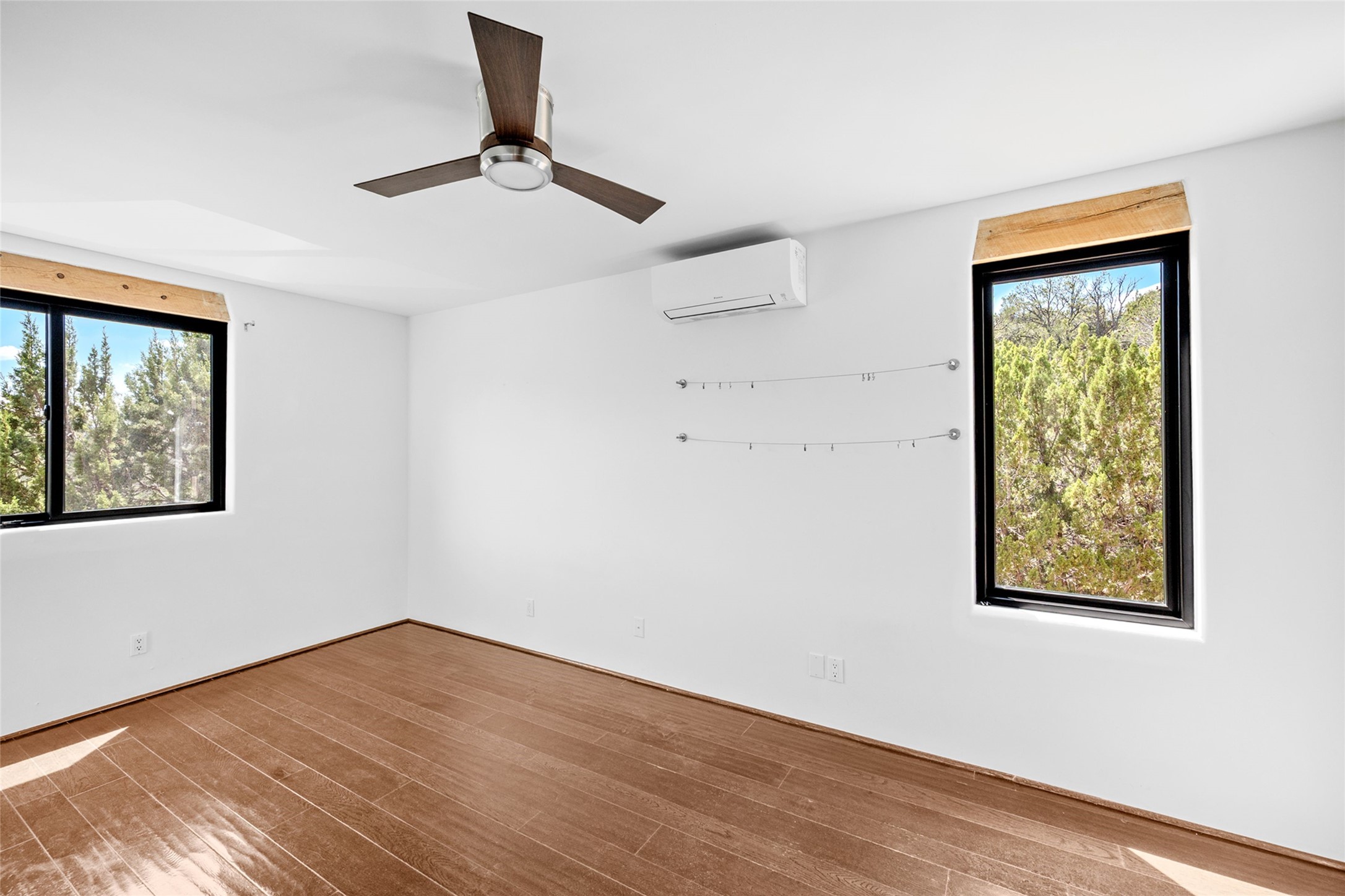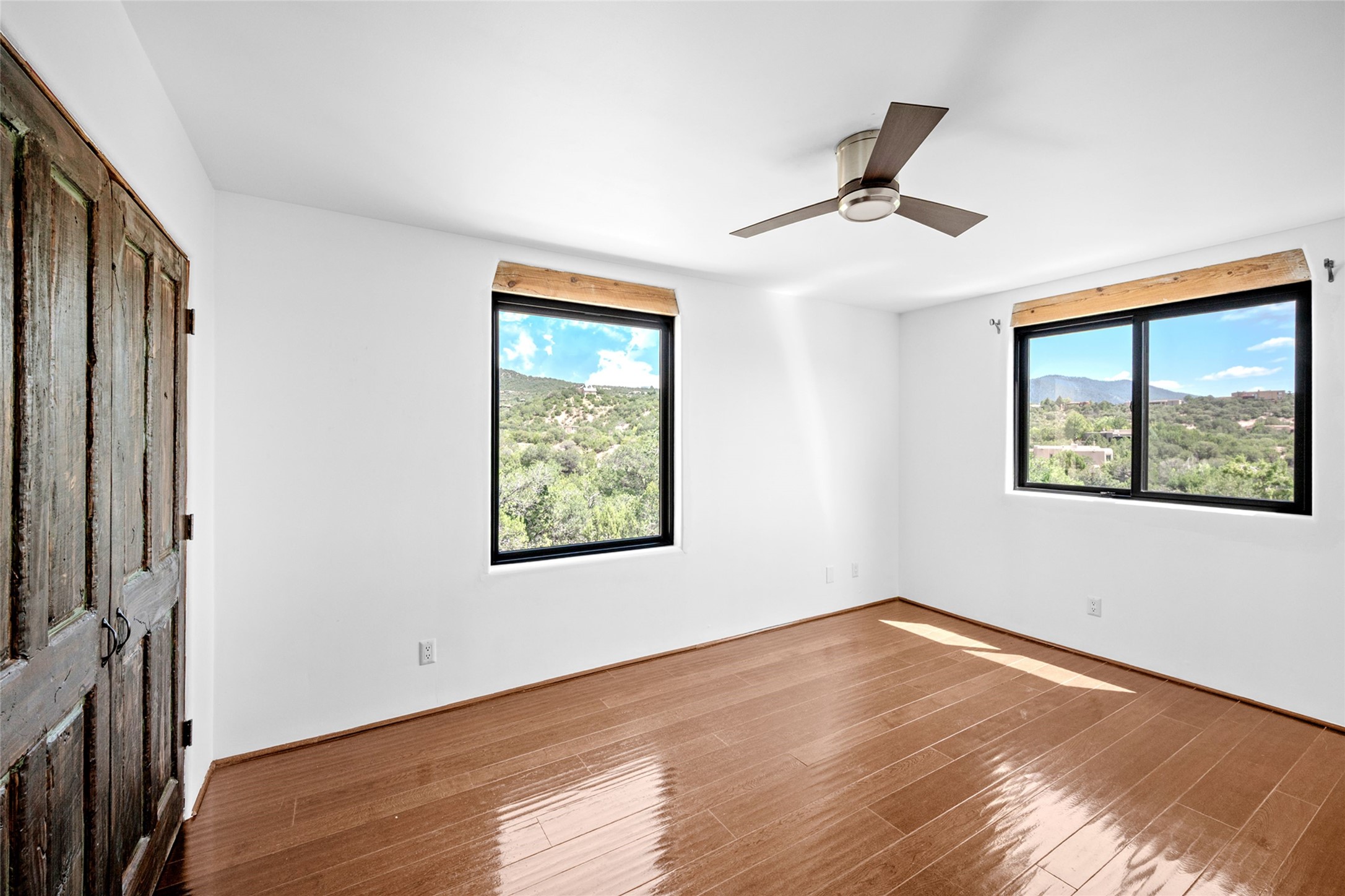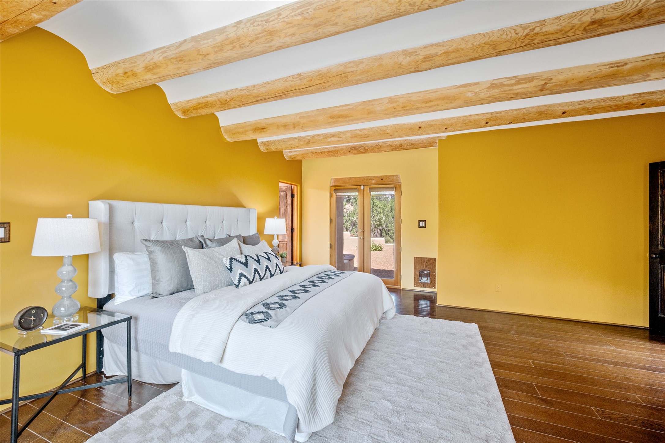 In the heart of the highly desirable Santa Fe Northside, this 4-bedroom, 2-bathroom bi-level home blends modern upgrades with timeless Santa Fe charm. Soaring ceilings, an open floor plan, and expansive picture windows flood the home with natural light and frame the surrounding landscape, seamlessly bringing the outdoors in.The kitchen features elegant glass-paned cabinetry, dual copper-toned lazy susans, and abundant storage--both functional and beautiful. The spacious primary suite includes a cozy wood-burning fireplace, a generous en-suite bath with walk-in closet, and direct access to a screened porch and private patio.Recent updates--new Anderson windows and efficient mini-splits ensure year-round comfort. The flexible bi-level layout and two-car garage add everyday convenience. Despite its serene setting, this home is just minutes from town--only a four-minute drive to the Plaza.Combining comfort, efficiency, and natural beauty, this inviting property is the perfect retreat in one of Santa Fe's most coveted locations.