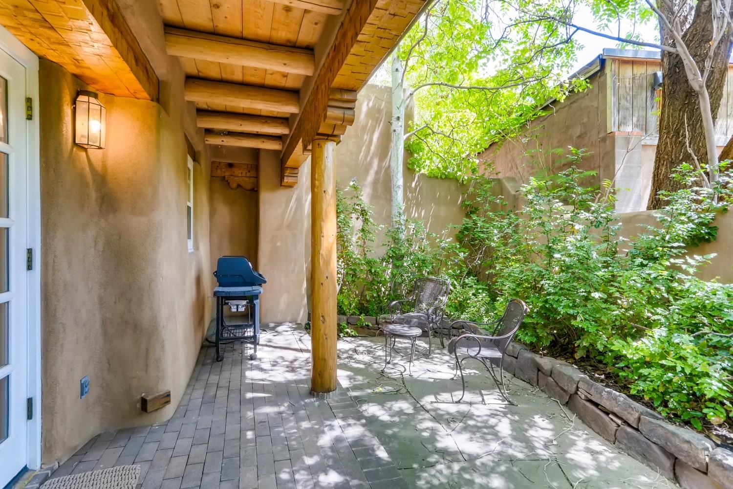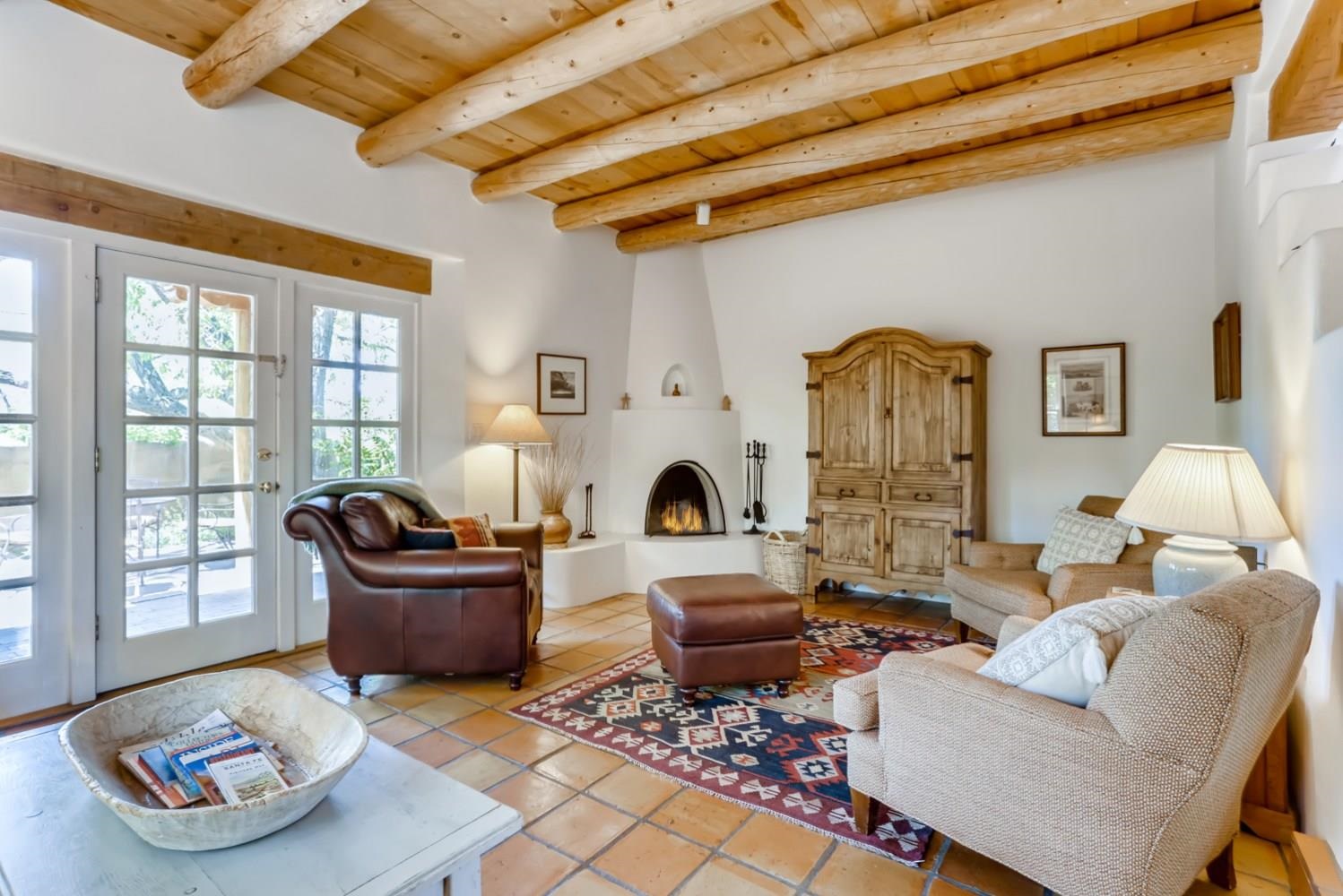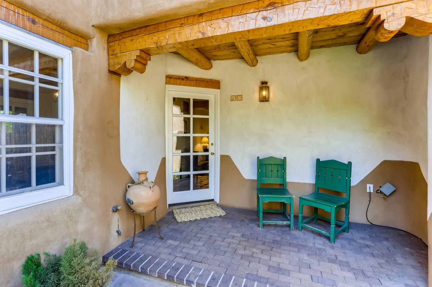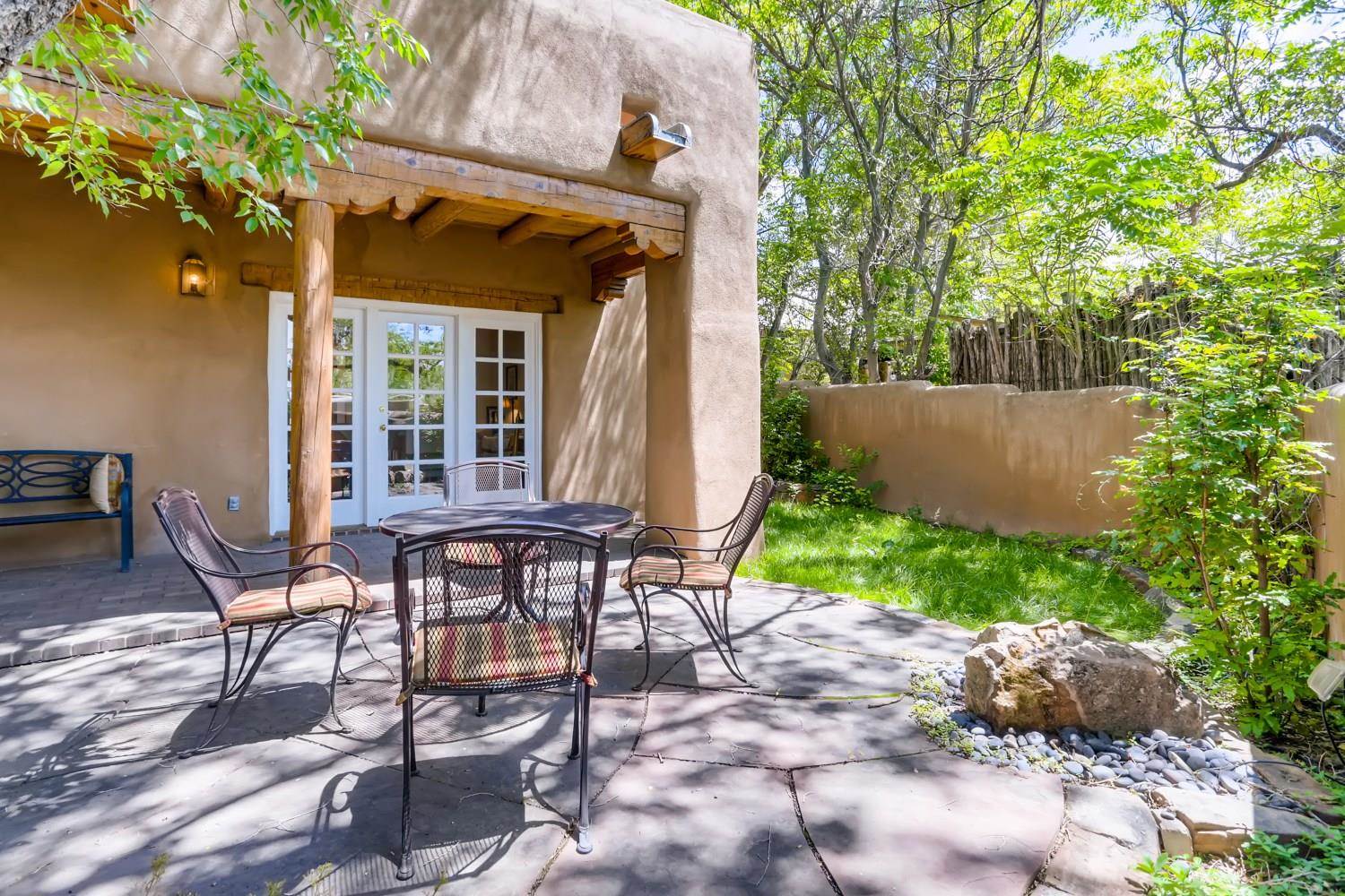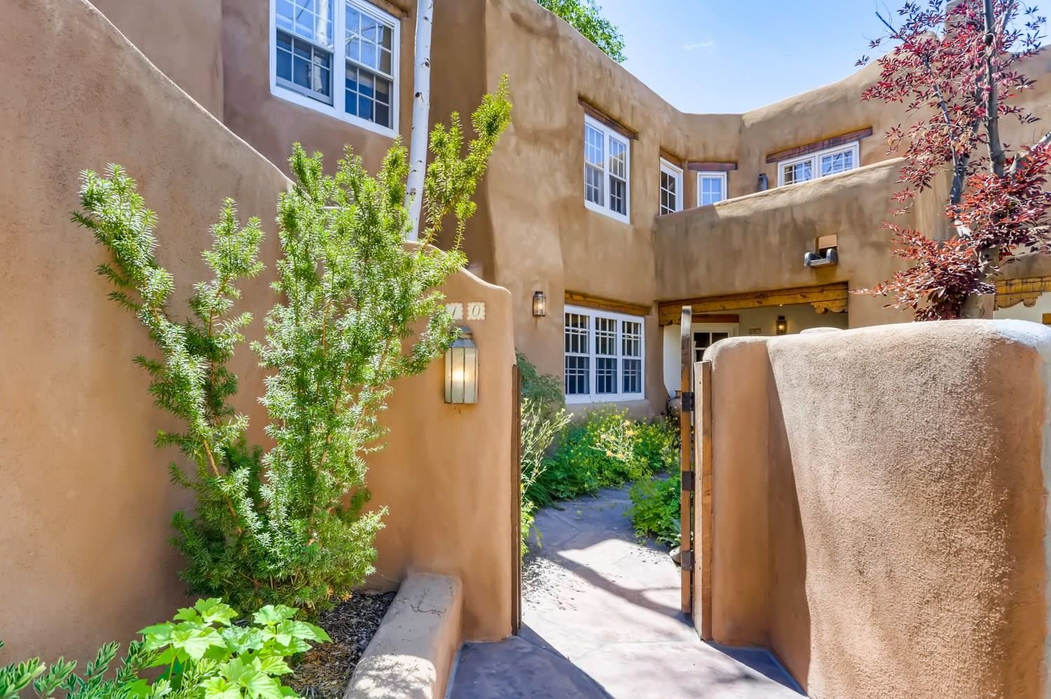 Enter Unit 10 at Campanilla Compound through a gated, landscaped entry garden. Inside find all the features that have long defined gracious Santa Fe homes: Viga ceilings throughout, kiva fireplaces in both bedrooms and in the living room, Saltillo tile floors, Talavera in the kitchen and all three baths. French doors open up to a private and spacious back yard. And located in a quiet community just blocks from the Plaza! Intensely managed, including an established and successful rental program. Ownership is a quarter share. The best features in a vacation home at one-fourth of the cost!