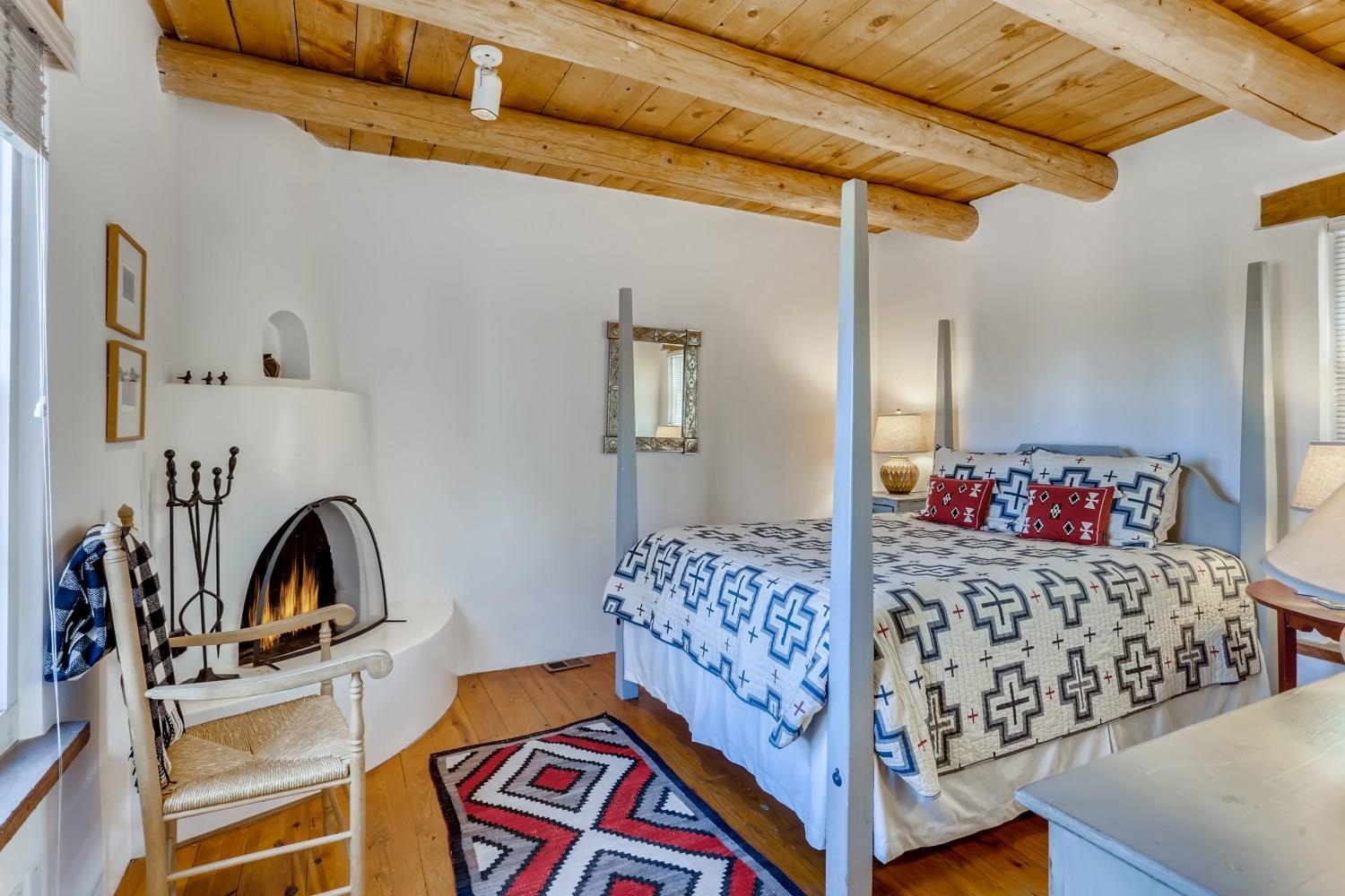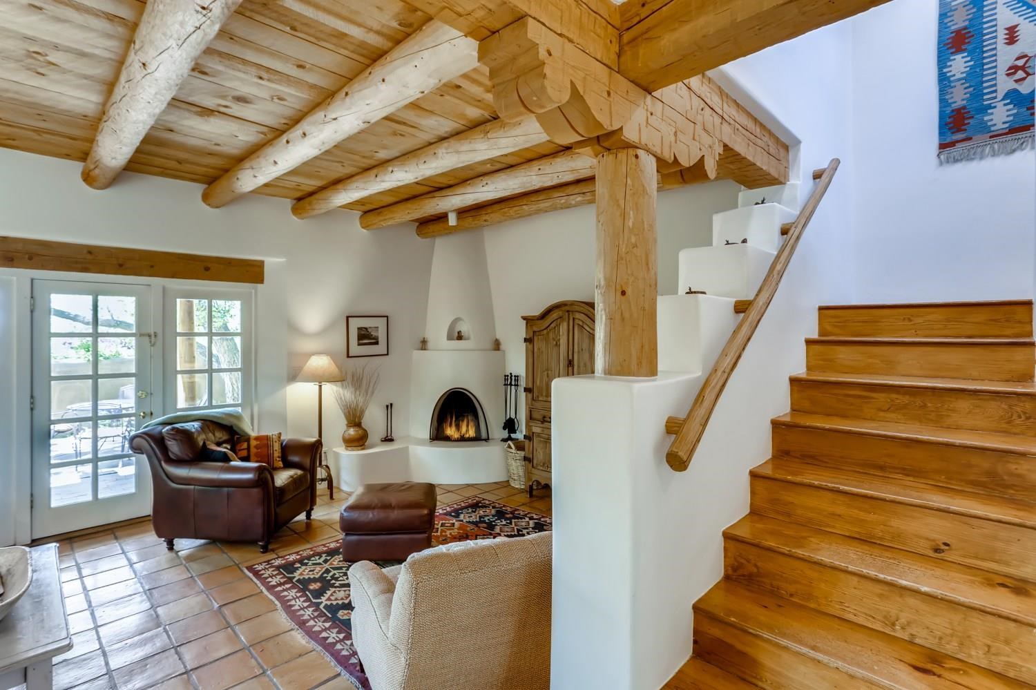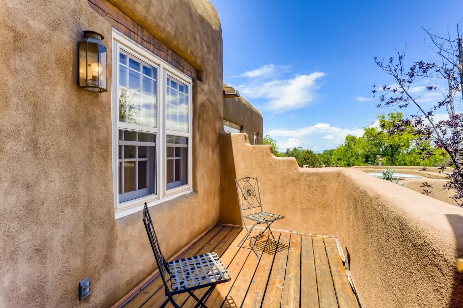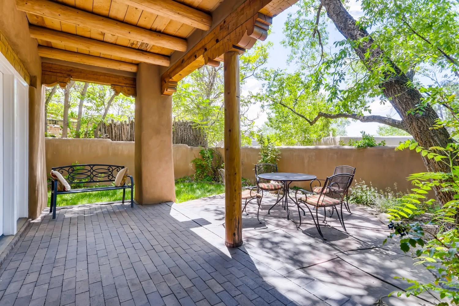 Enter Unit 10 at Campanilla Compound through a gated, landscaped entry garden. Inside find all the features that have long defined gracious Santa Fe homes: Viga ceilings throughout, kiva fireplaces in both bedrooms and in the living room, Saltillo tile floors, Talavera in the kitchen and all three baths. French doors open up to a private and spacious back yard. And located in a quiet community just blocks from the Plaza! Intensely managed, including an established and successful rental program. Ownership is a quarter share. The best features in a vacation home at one-fourth of the cost!