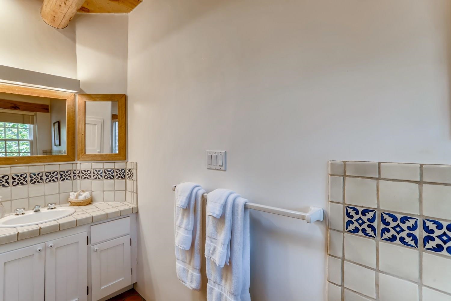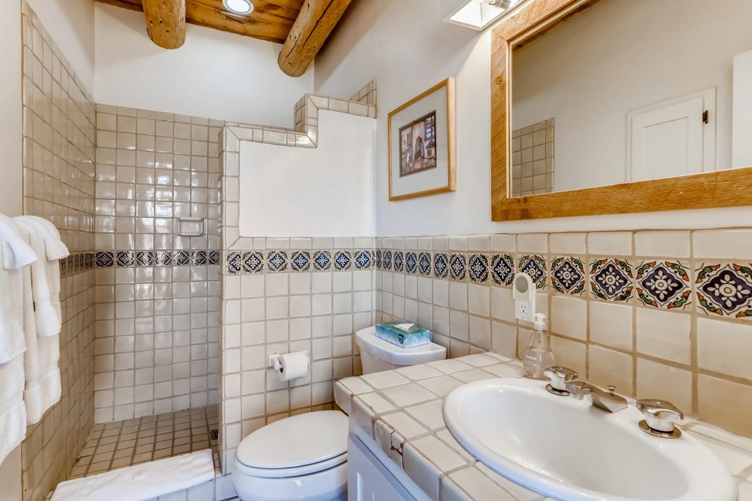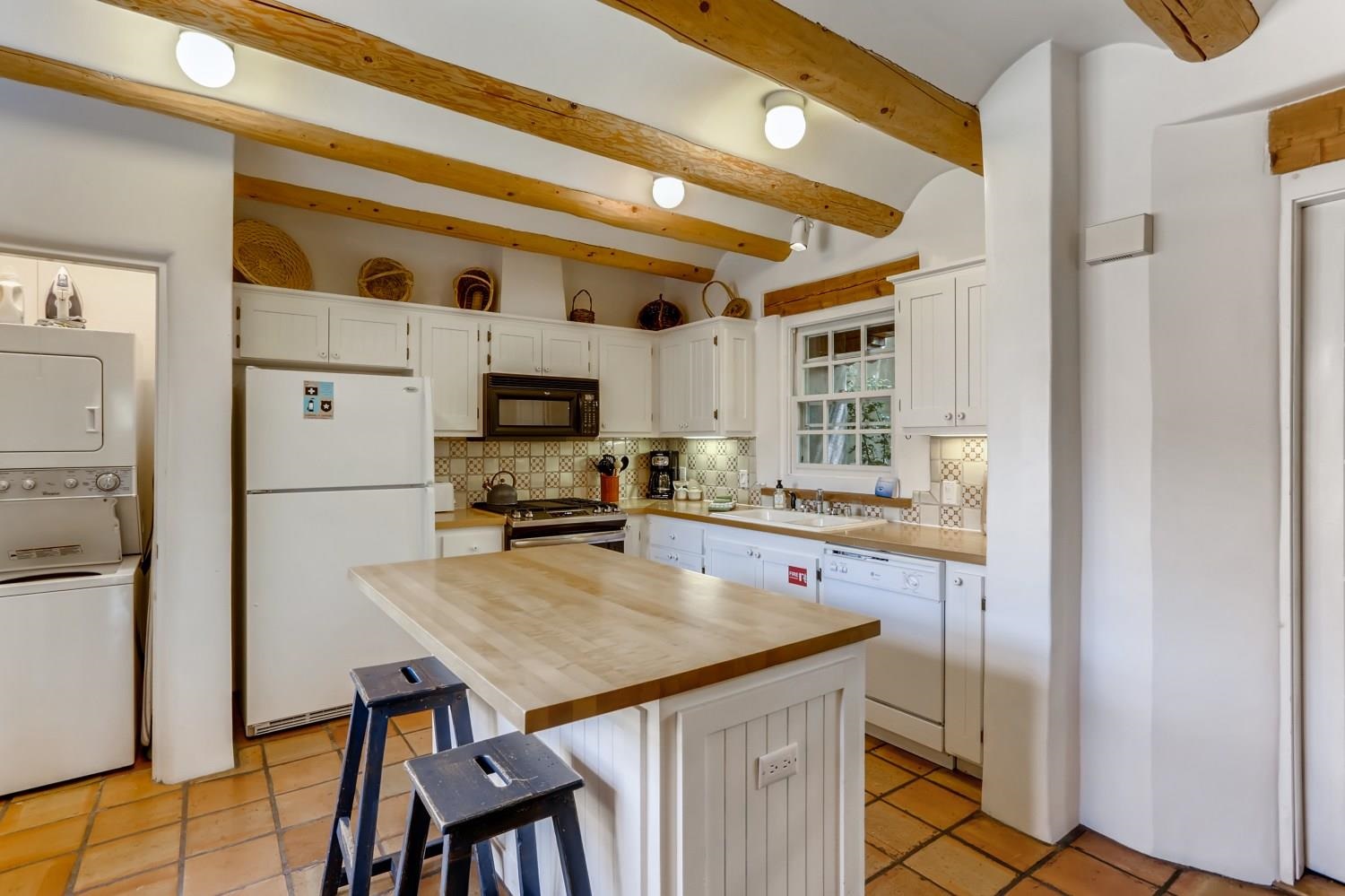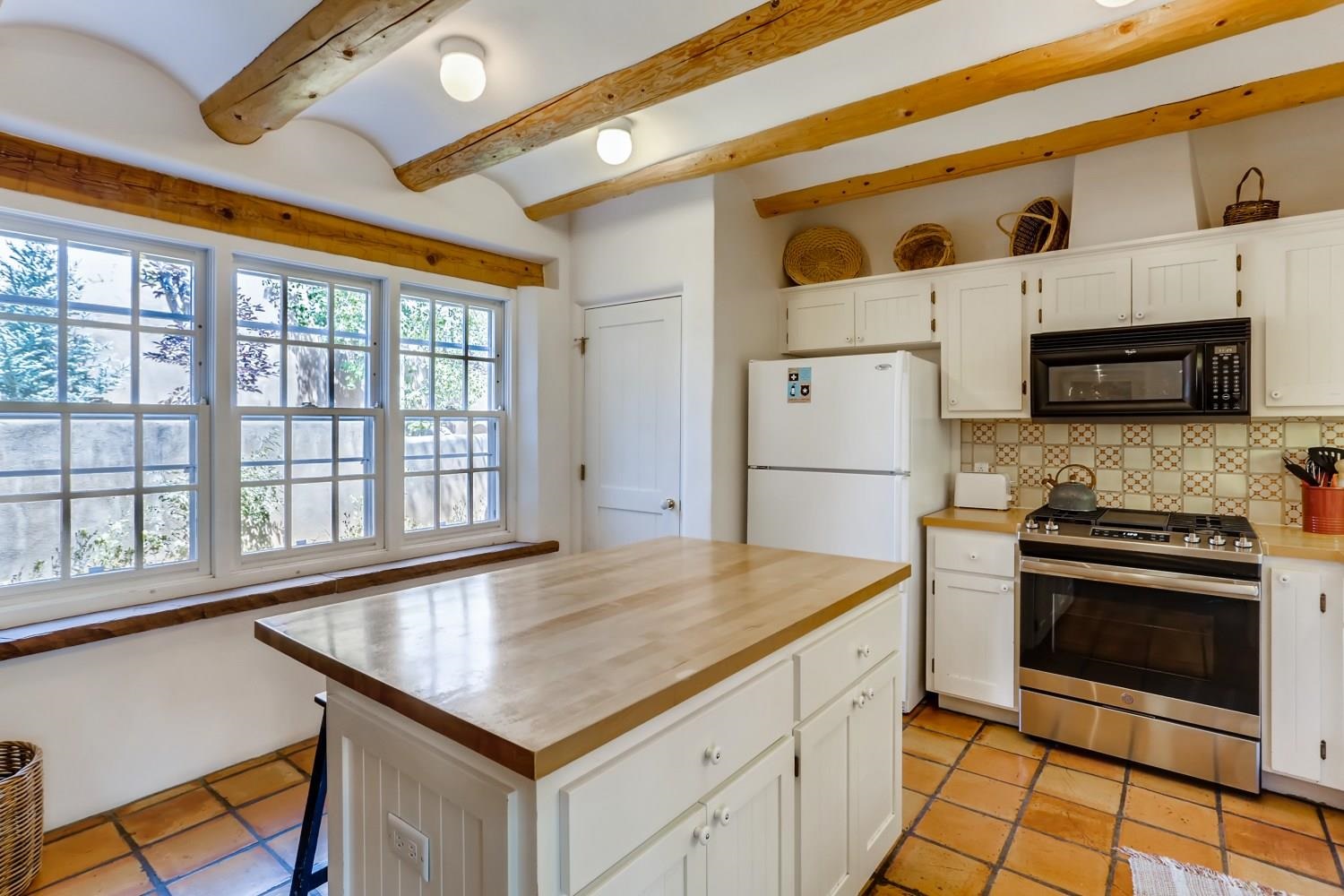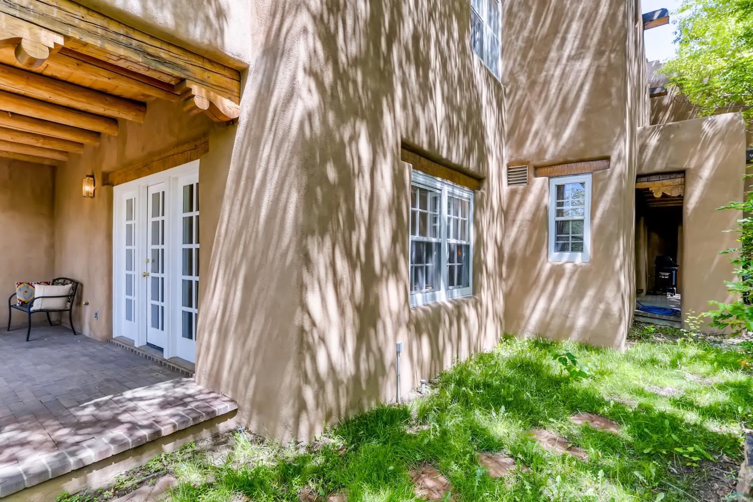 Enter Unit 10 at Campanilla Compound through a gated, landscaped entry garden. Inside find all the features that have long defined gracious Santa Fe homes: Viga ceilings throughout, kiva fireplaces in both bedrooms and in the living room, Saltillo tile floors, Talavera in the kitchen and all three baths. French doors open up to a private and spacious back yard. And located in a quiet community just blocks from the Plaza! Intensely managed, including an established and successful rental program. Ownership is a quarter share. The best features in a vacation home at one-fourth of the cost!