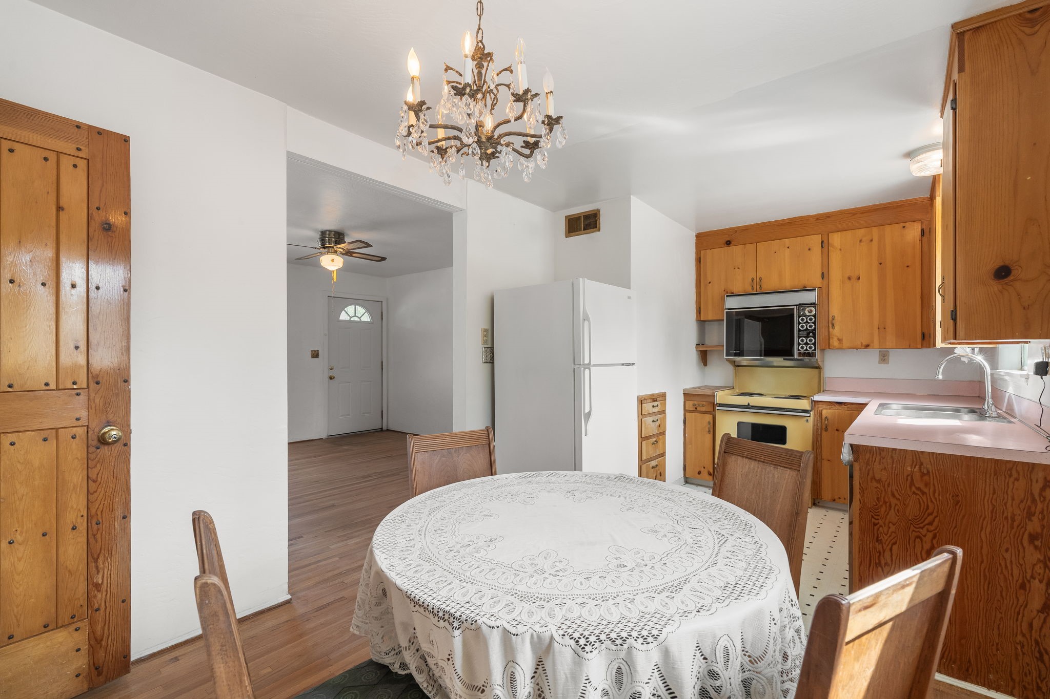 Welcome to 140 Rio Seco Street, a well-loved Stamm home nestled in the highly desirable Casa Solana neighborhood. This 3-bedroom, 1-bathroom residence offers 1,066 square feet of living space plus an attached one-car garage in near original condition (with upgrades). This home is being sold as-is, full of potential and inviting the next owner to make it their own.Inside, you'll find many original details including beautiful hardwood floors that have been preserved under carpet for years. Classic Stamm built-in closets and an abundance of natural light also add to the charm of this home. The thoughtful layout includes a bright living area with large picture window, generous storage spaces in the laundry room and garage, and the comfort of forced air heating and cooling. Recent improvements include a brand-new roof (2024) with a 10-year warranty, providing peace of mind for years to come. The home is in very livable condition--move right in and update at your own pace!Outdoors, let the mature apple tree and grape vine jump start your dream garden! The large enclosed front and back yards offer plenty of room for gardening, play, or entertaining under the Santa Fe skies. With its prime location close to trails, shopping, and downtown Santa Fe, this Casa Solana gem is ready to welcome its next chapter.