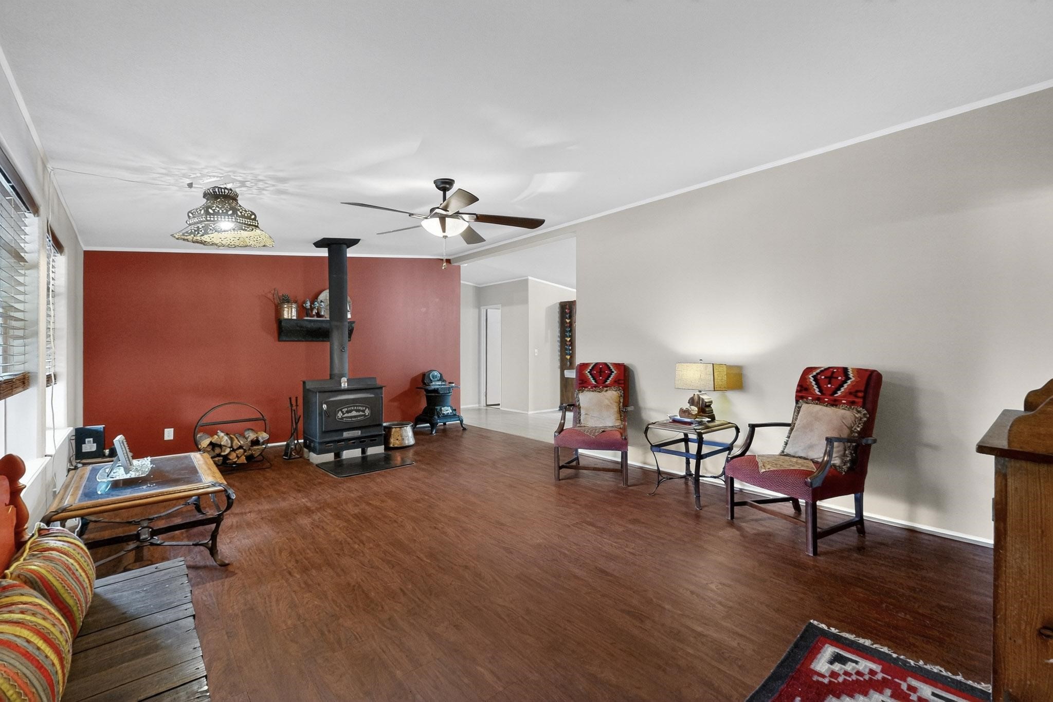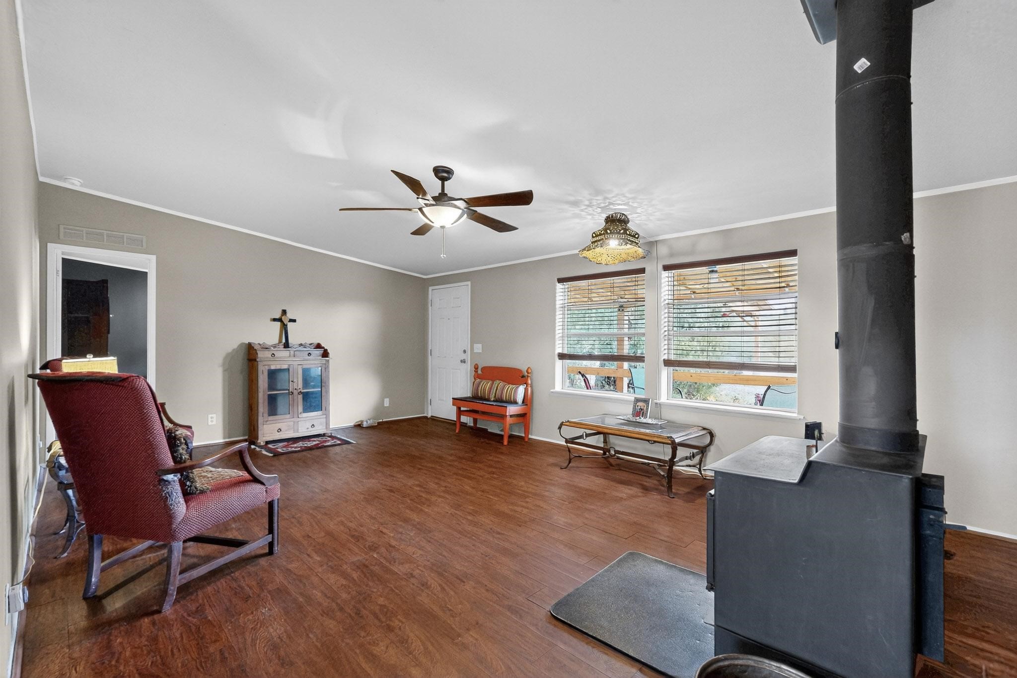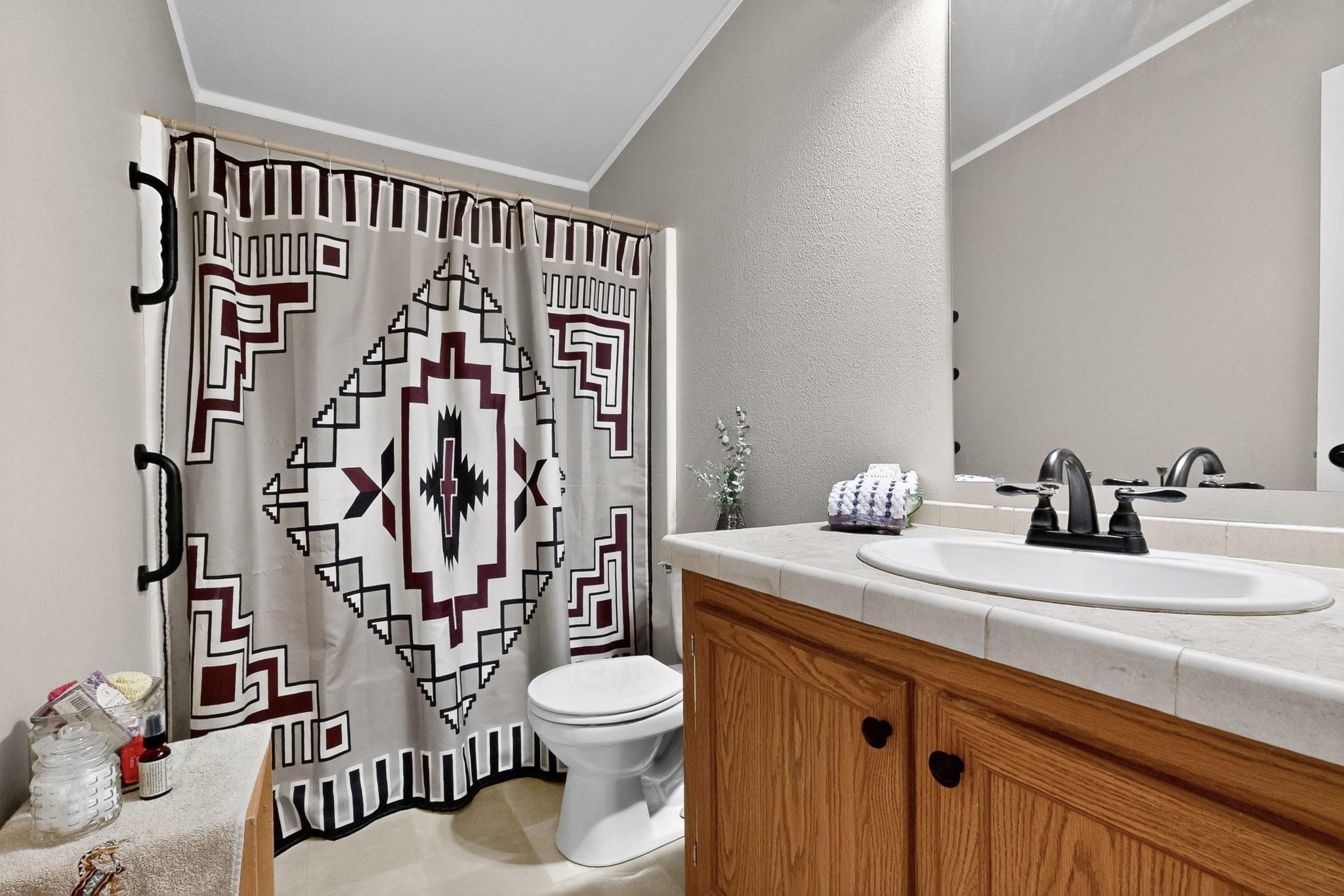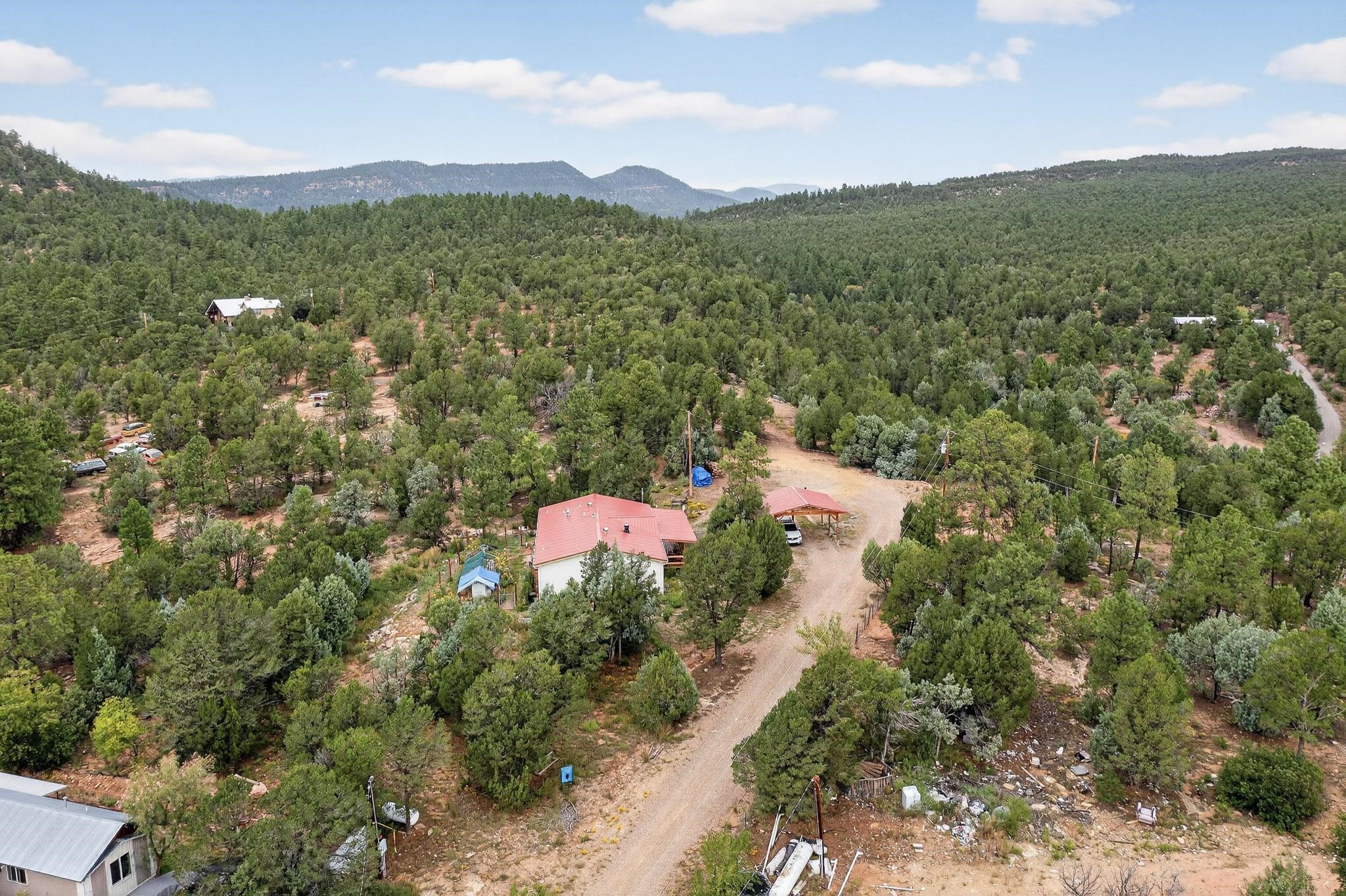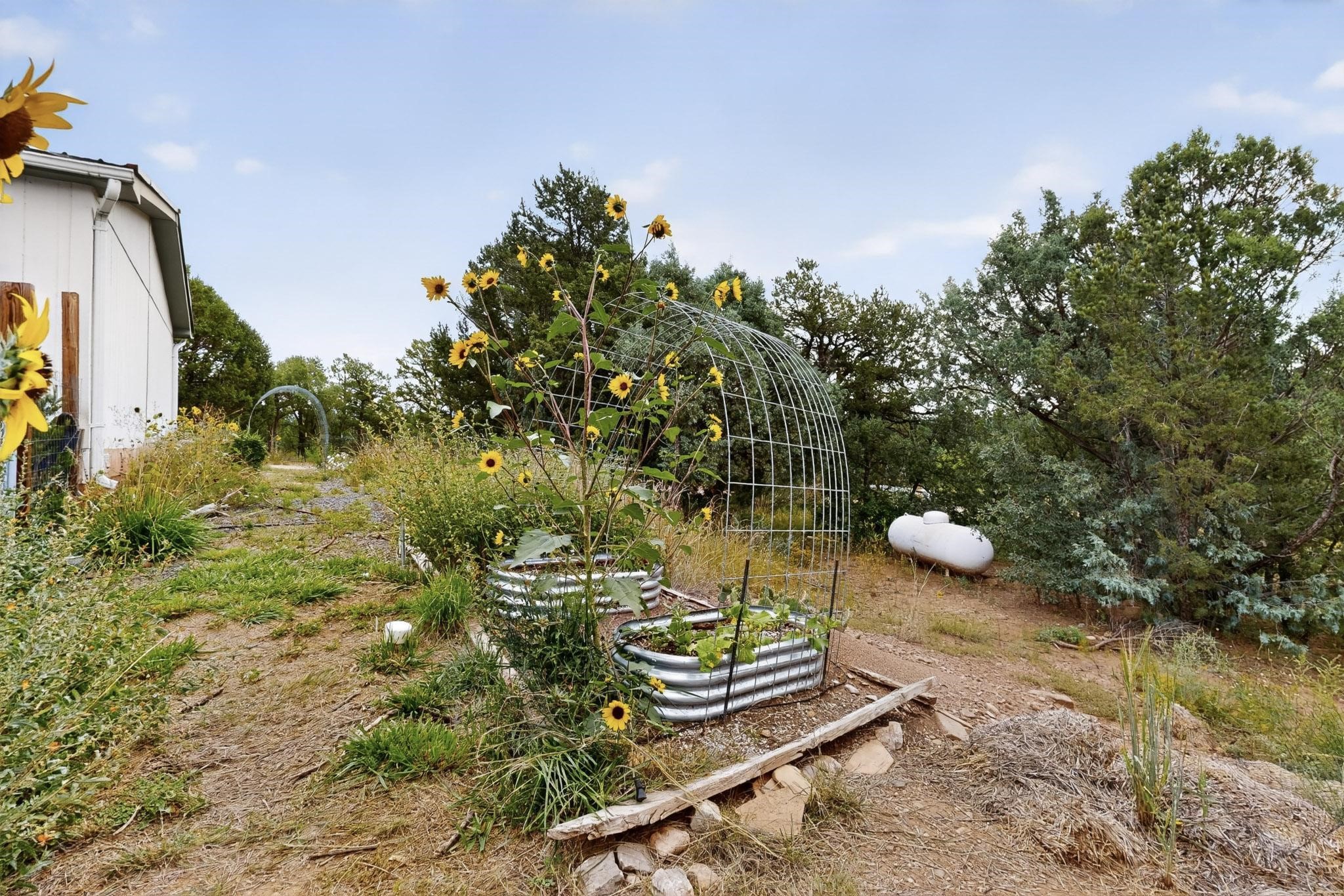 TWO for the PRICE of ONE, 11 and 15 Corte Vargas includes 3 Bedroom, 2 Bath 2007 doublewide on a permanent foundation on 1.026 +/- acres and adjoining vacant lot 5.371 +/- acres with 1/4 ownership in a shared well, several building sites and much potential for additional structures. Located in the Glorieta area off NM Hwy 50, 22 minutes to Santa Fe this listing has much to offer buyers. The home is accessed from a covered porch, has living room with wood burning stove, cook's kitchen, split bedroom floor plan, forced air heating as well as air conditioning, ample closets, washer and dryer. The area around the home is nicely landscaped with perennial flowers, walkways, covered chicken coop, 2 car carport and designated sitting and viewing areas. The adjoining separately deeded lot comes with the potential for water from the shared well (4 hook-ups only). It has several potential building sites, a multitude of healthy Pinon, Ponderosa Pine, oak and Juniper trees, dramatic out croppings, varied terrain, views to the north and almost at the end of the acreage a seasonal creek. The north boundary adjoins lands claimed by the Jemez Pueblo and is a vast open space. Located in Santa Fe County the property is served by Eldorado Community School and Santa Fe High School. For the best of country living please consider 11 & 15 Corte Vargas.