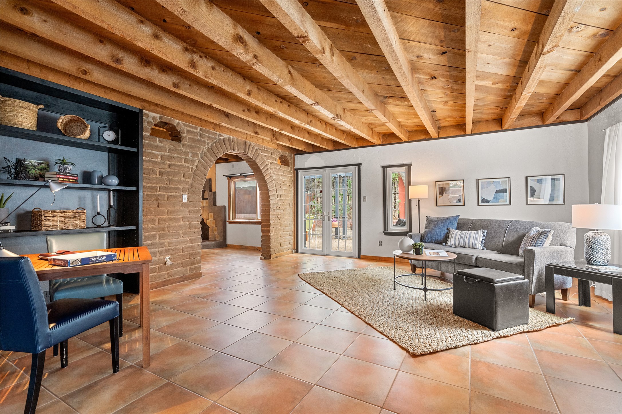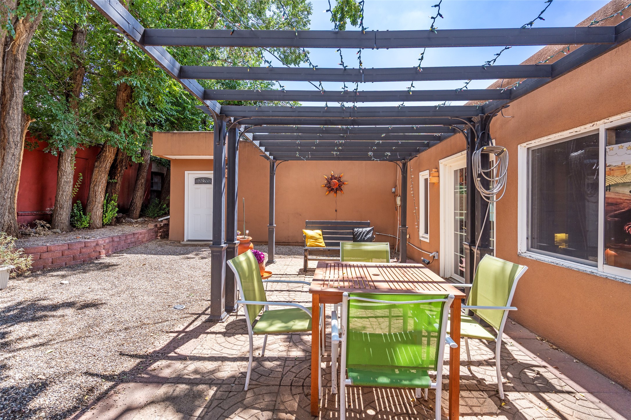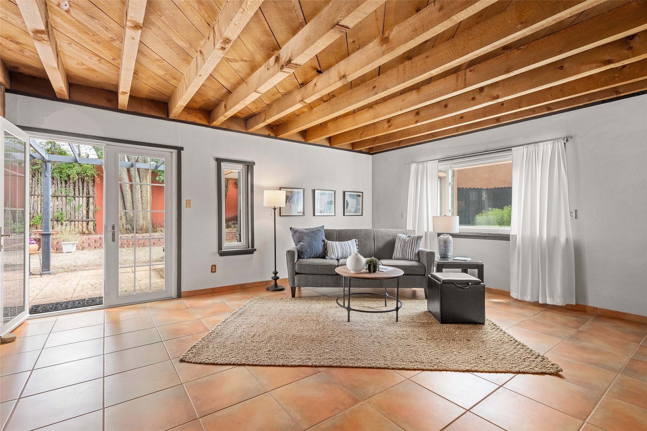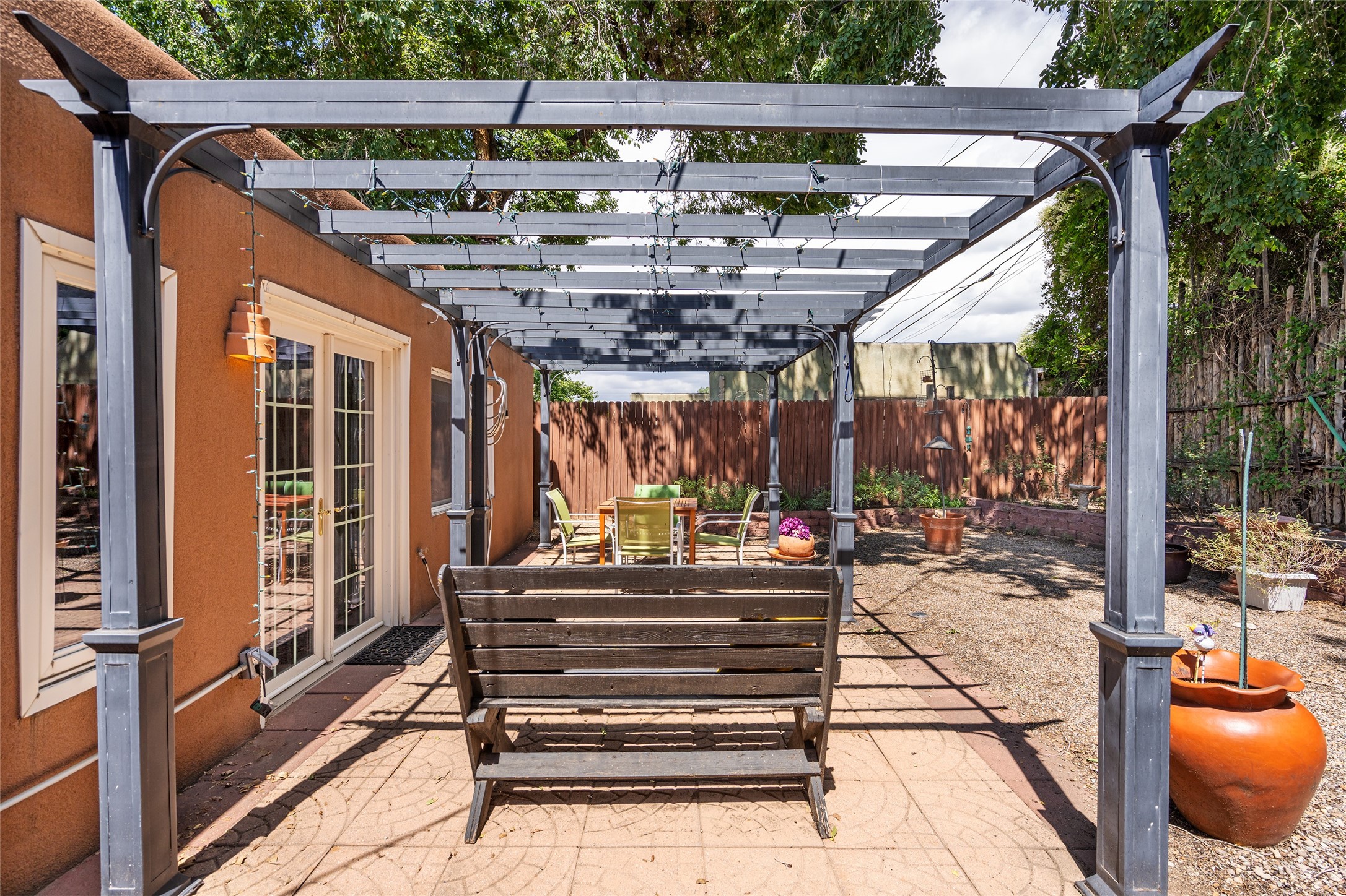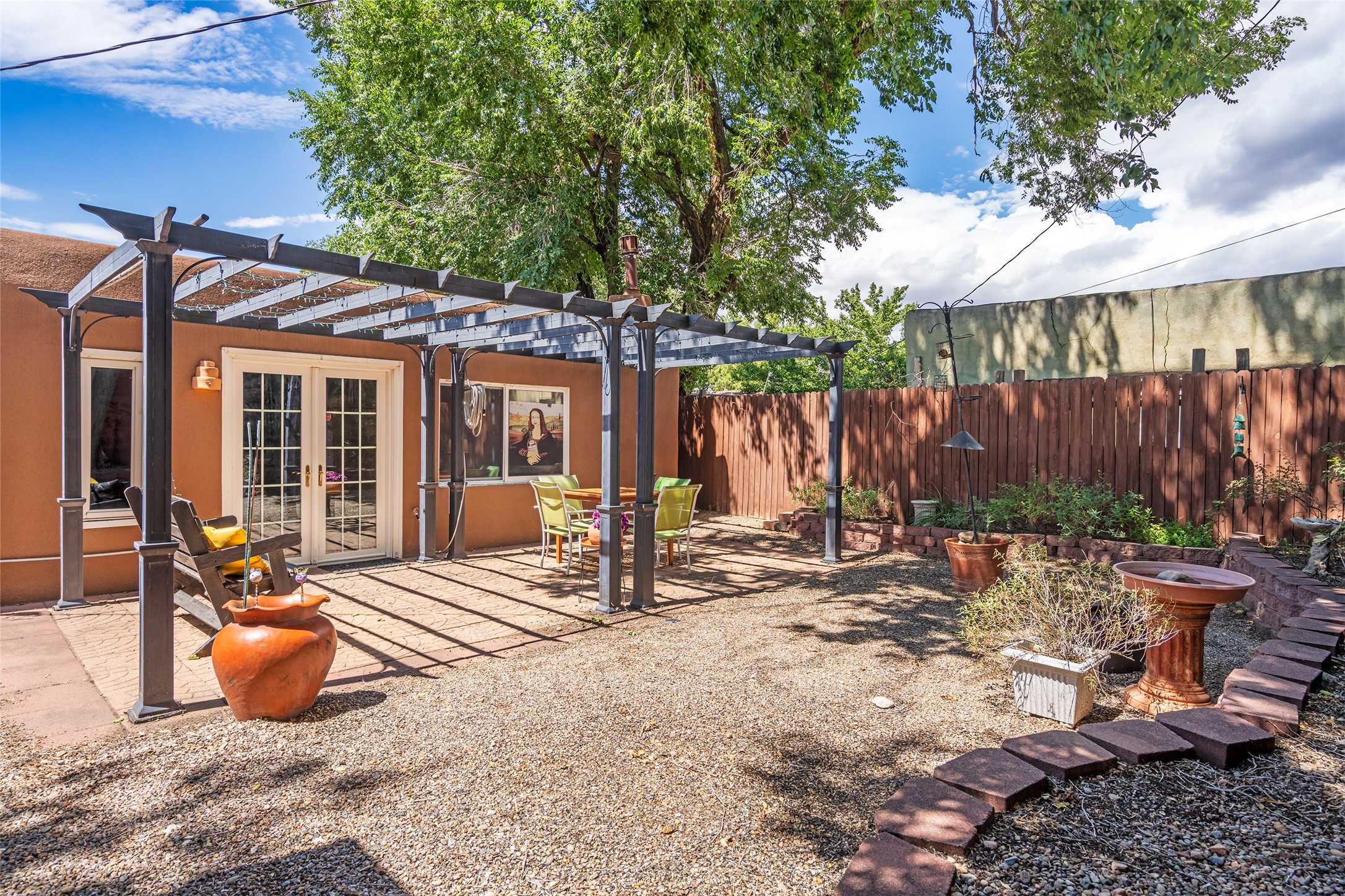 Nestled in a quiet pocket of Santa Fe, this 2 bedroom, 1 bath home offers an airy open floor plan that welcomes natural light and effortless flow between living, den/office, dining, and kitchen spaces--perfect for both relaxing and entertaining.A private courtyard greets you at the entry, offering a tranquil spot for morning coffee or evening gatherings with a pear tree. The enclosed backyard extends the living space outdoors, ideal for gardening, birdwatching, pets, or simply enjoying. Located near the River Trail, this home offers easy access to walking and biking paths while remaining close to all the cultural and culinary treasures of downtown Santa Fe.The home is being sold as-is, and is ready for you to make it your own. Warm, inviting, and thoughtfully designed, this home balances serenity with convenience--ready to be your private Santa Fe retreat.