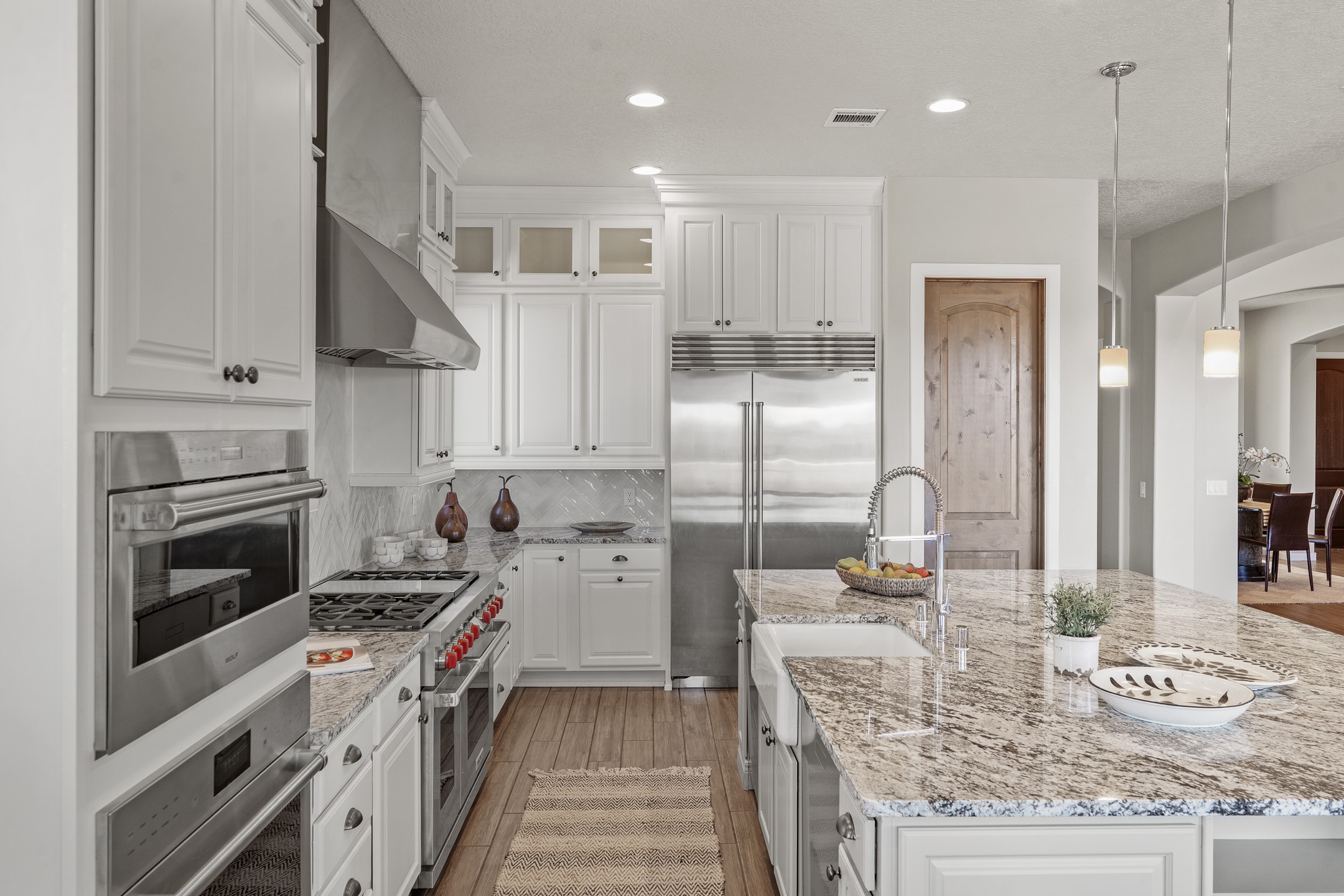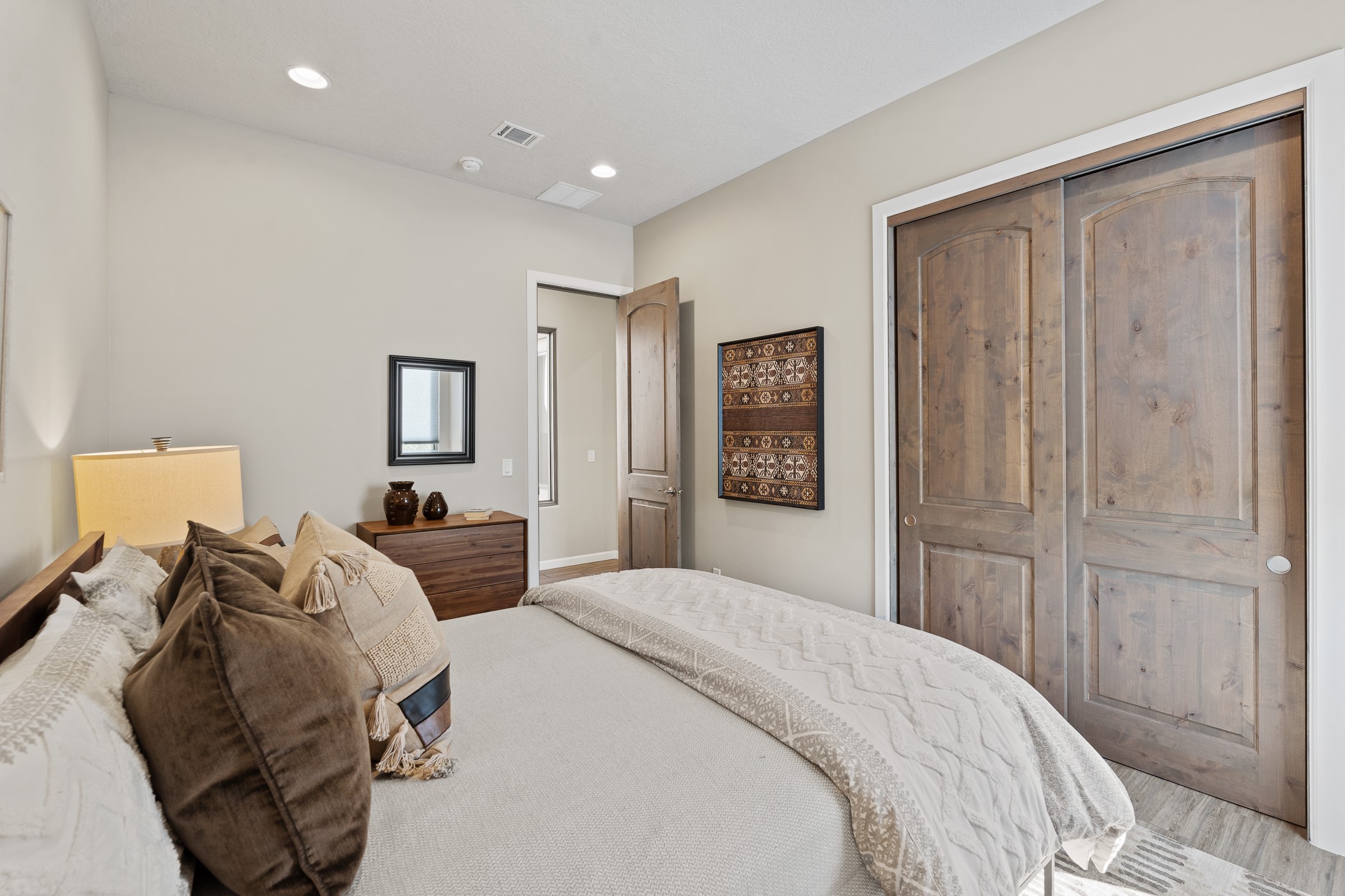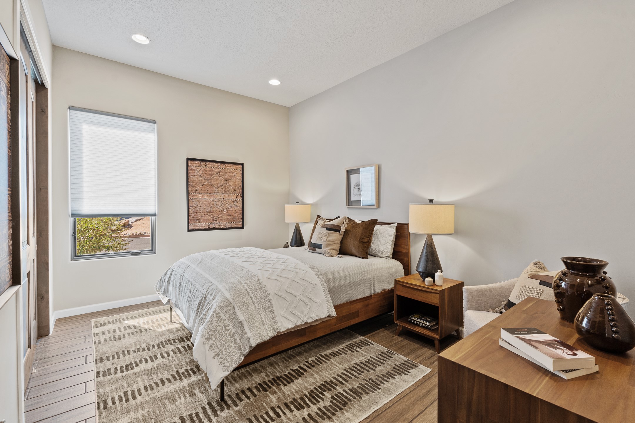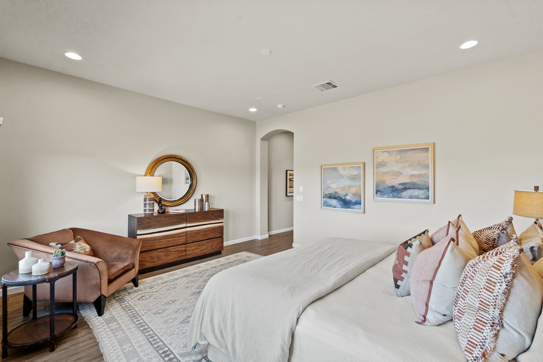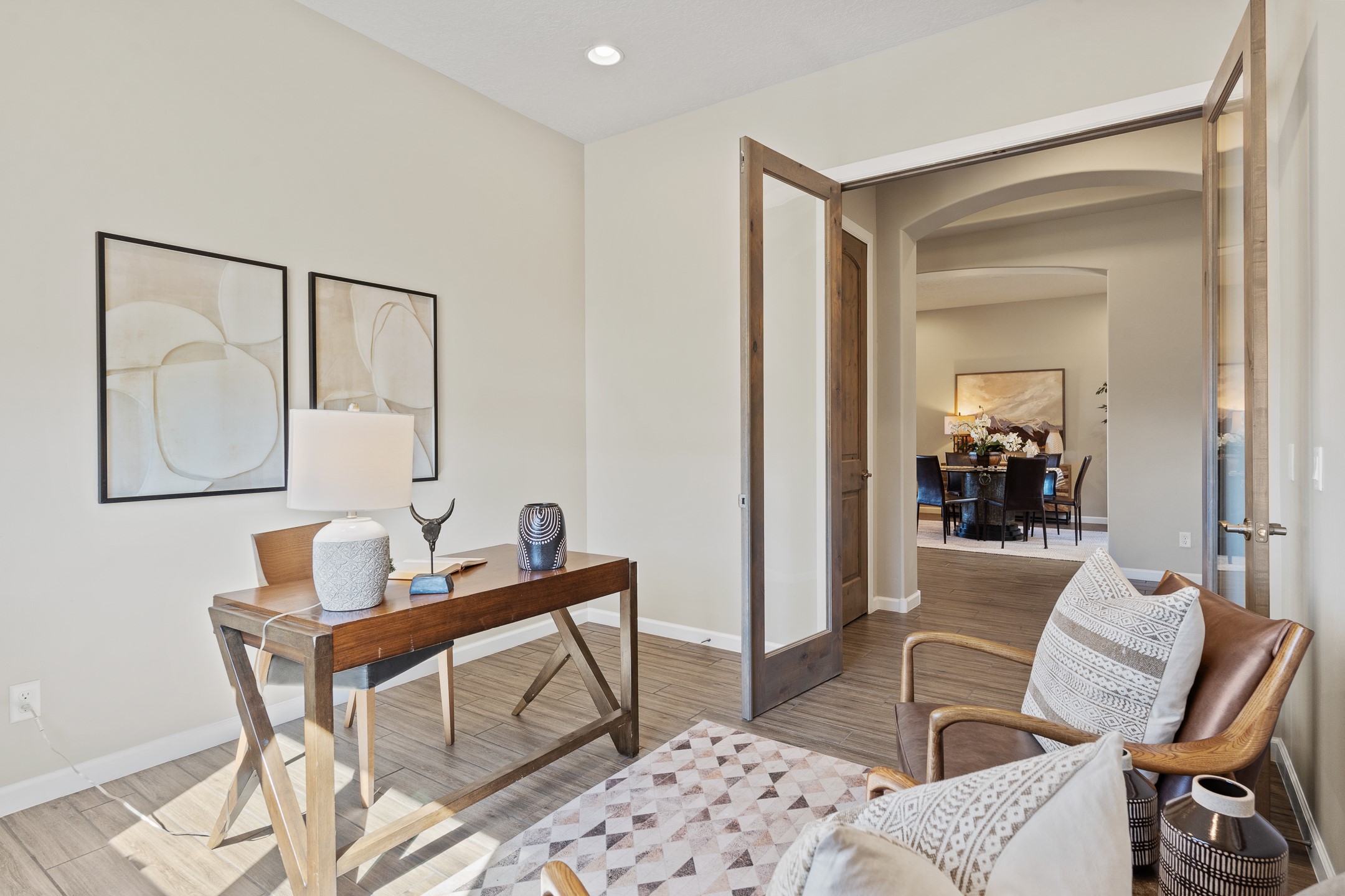 Exceptional value on this move in ready Las Campanas Contemporary Pueblo RetreatWhere contemporary design meets timeless Santa Fe elegance, this 3,715-square-foot single-level residence offers the perfect balance of sophistication, privacy, and sweeping mountain views. Completed in 2023, this home features upgraded modern finishes and is nicely sited on a corner lot -- backing to open space to the west.Light-filled and beautifully proportioned, the open-concept layout flows effortlessly between the living, dining, and outdoor spaces. The great room features beamed ceilings, a sleek gas fireplace, and panoramic views of the Jemez Mountains--capturing Santa Fe's legendary sunsets in every season.At the heart of the home, the chef's kitchen is both striking and functional, equipped with upgraded Wolf, Sub-Zero, and Asko appliances - including a six-burner double oven range, built-in convection oven and microwave, and dual dishwashers. Granite countertops, crisp white cabinetry, and a generous island create a gathering space as stylish as it is practical.The primary suite is a private sanctuary with breathtaking mountain views and a spa-like bath featuring dual vanities, a dedicated makeup area, and luxurious finishes. A separate guest suite with its own living area offers comfort and independence for visitors, while a dedicated office adds flexibility for work or creative pursuits.Outdoors, beautifully landscaped patios extend the living space--perfect for dining al fresco, entertaining, or simply enjoying the quiet beauty of the high desert. An oversized two-car garage offers abundant space for vehicles and storage.Located just minutes from The Club at Las Campanas, where fine dining, golf, fitness, and spa amenities await (membership optional), this residence embodies modern Santa Fe luxury--panoramic views, refined design, and tranquil living in one of the city's most prestigious communities.
