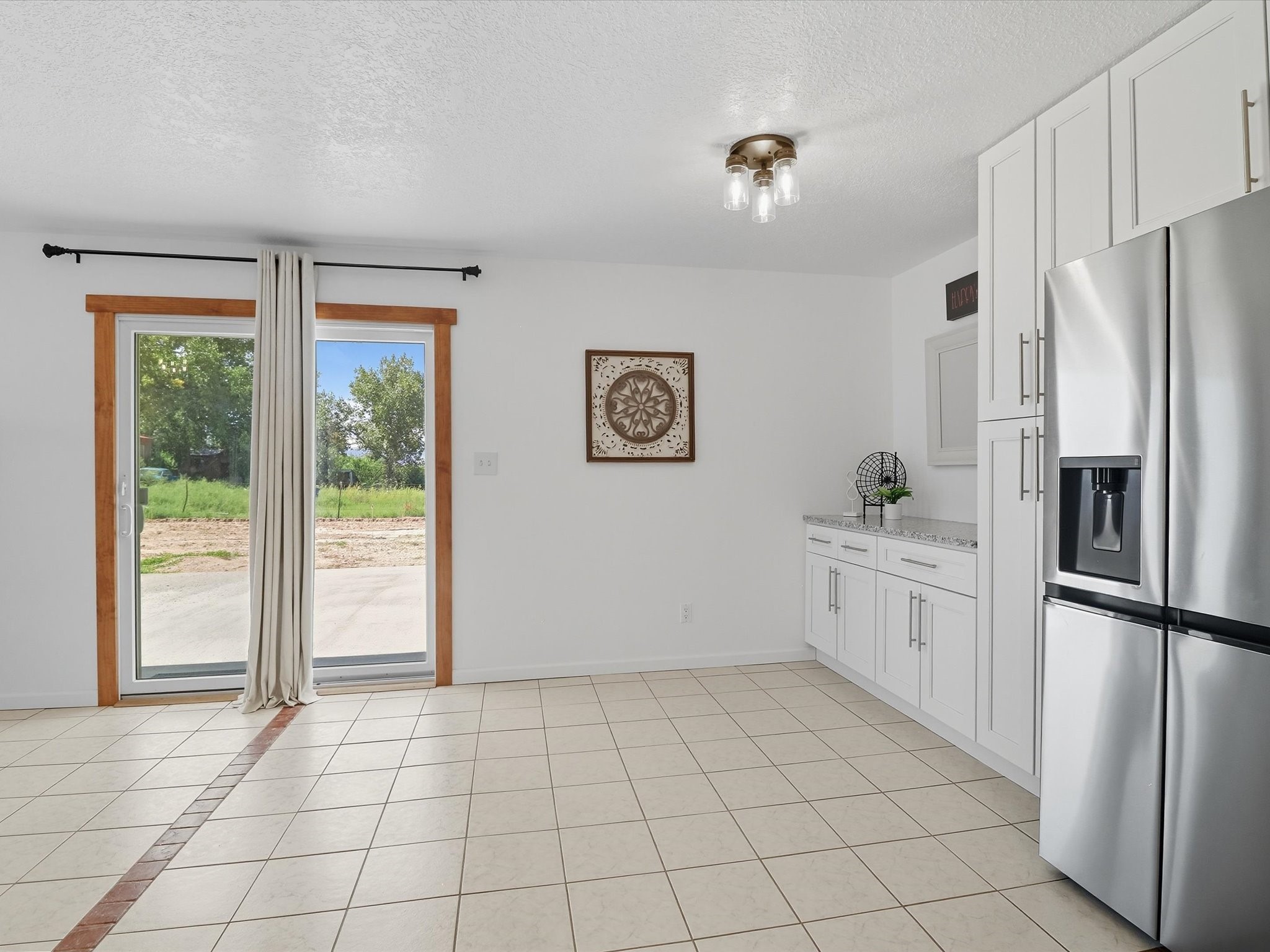 INCREDIBLE FIND - 0.75 acre property w/quality dream home and separate 1,206 sq ft workshop building w/3 garage doors (up to 6 car tandem). Found just 20 minutes from either Santa Fe plaza or Los Alamos National Labs in the coveted & fertile Pojoaque valley complete w/irrigation water rights. Special features of the home incl: new roof (installation 9/2025), newly painted interior & exterior, energy-saving Pella thermal windows, in-floor radiant heat for cozy winter days, 2 low-maintenance gas diamond plaster kiva fireplaces, tile or new high-quality engineered wood flooring throughout (no carpet!), updated baths with a Dream Style Shower, and a total kitchen remodel w/new cabinetry | stainless steel appliances | granite slab countertops. *Also available on 1.5 acres (including adjacent .75 acre lot) for September 2025 appraised value of $845,000.*