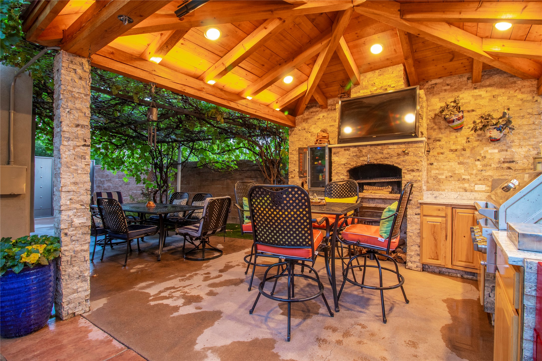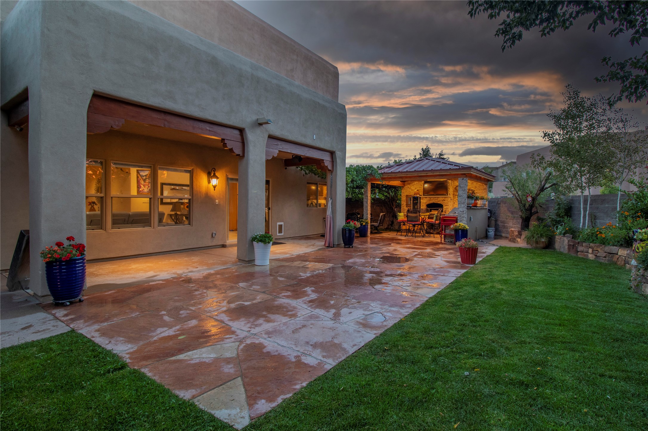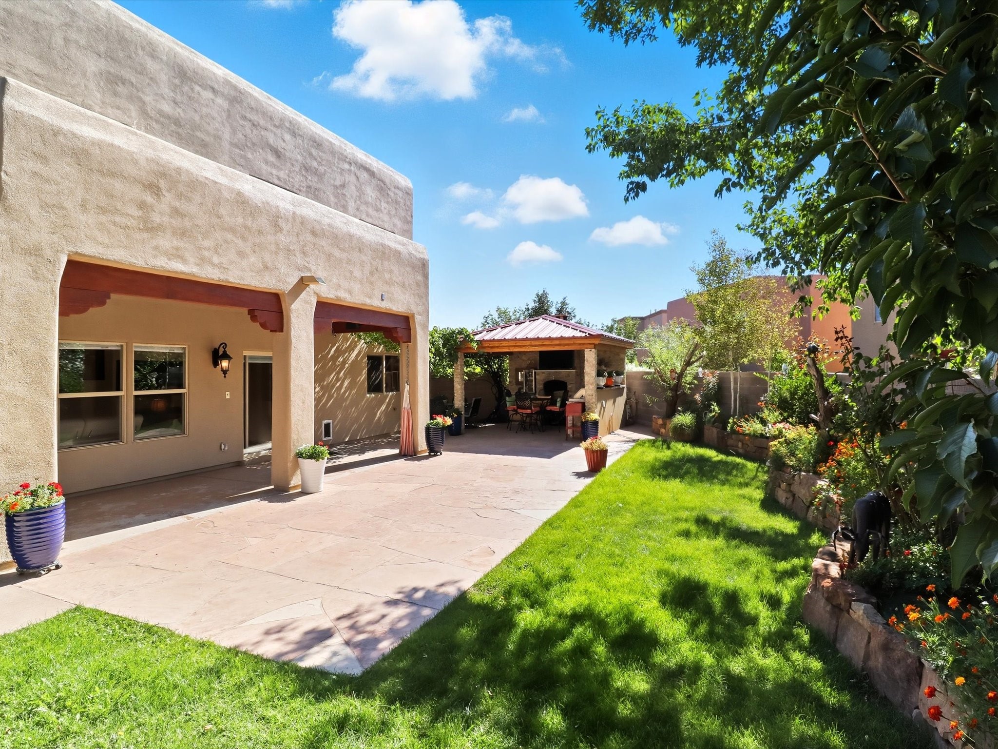 Nestled on a quiet street, this beautiful two-story home offers the perfect blend of comfort, functionality, and charm--ideal for a starting family or a growing one. Step inside to an inviting open floor plan that seamlessly connects the main living spaces. The main level features a dedicated office, perfect for remote work or study, and a warm, welcoming living area with a traditional Kiva fireplace to keep you cozy during winter nights.The kitchen is thoughtfully designed with a breakfast counter, stainless steel appliances, and plenty of space for everyday meals and gatherings. From here, step out to the beautifully landscaped backyard, complete with a covered portal, ample seating for guests, an outdoor hot tub, Gas Fire table and a charming gazebo with heating elements, outdoor speakers and ambient lighting --perfect for BBQ nights or morning tea with family and friends. Upstairs, you'll find four spacious bedrooms, including the primary suite, a private retreat with an attached bathroom featuring a his-and-her sink, an enclosed shower, and a walk-in closet. A private balcony extends from the suite, offering the perfect spot to enjoy your morning coffee while soaking in the fresh air.Blending modern convenience with inviting outdoor spaces, this home is truly designed for both relaxation and entertaining.