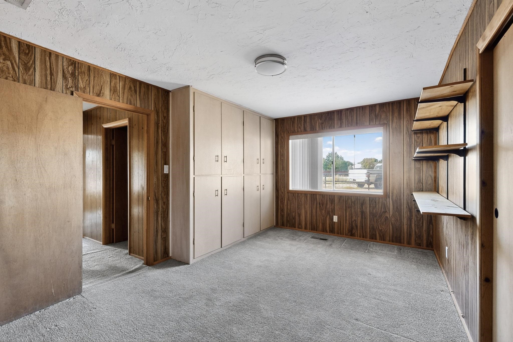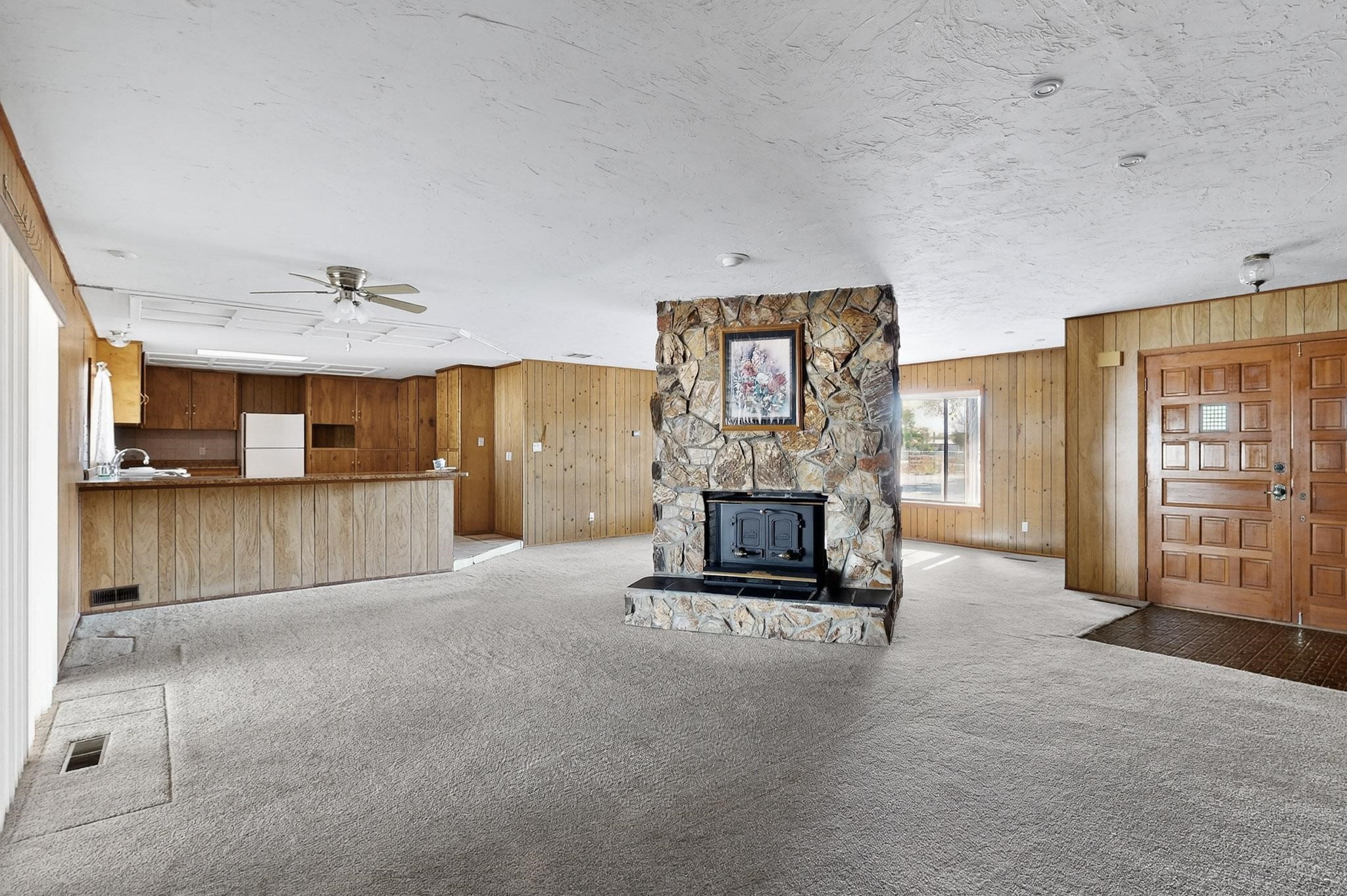 Spacious Los Lunas home with unique features! The open living and dining room is anchored by a double-sided fireplace, creating a warm focal point. The kitchen is generously sized with an island and plenty of room to personalize. Step outside to a covered patio with ceiling fans, perfect for relaxing or entertaining. A separate studio in the backyard adds flexibility for hobbies, work, or guests. This home offers great space and character, ready for your vision and updates. Land comes with a manufactured home next door to the North.