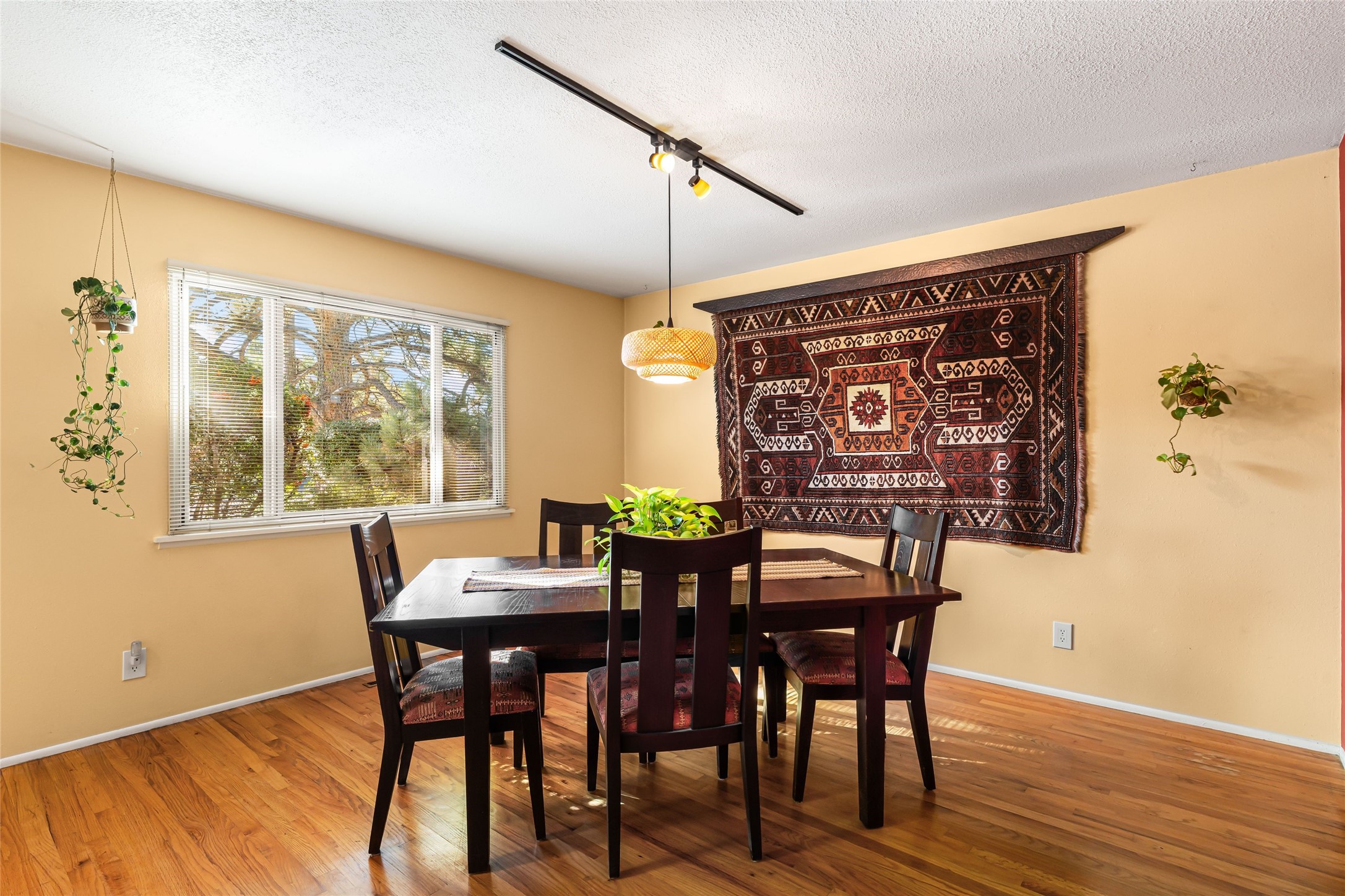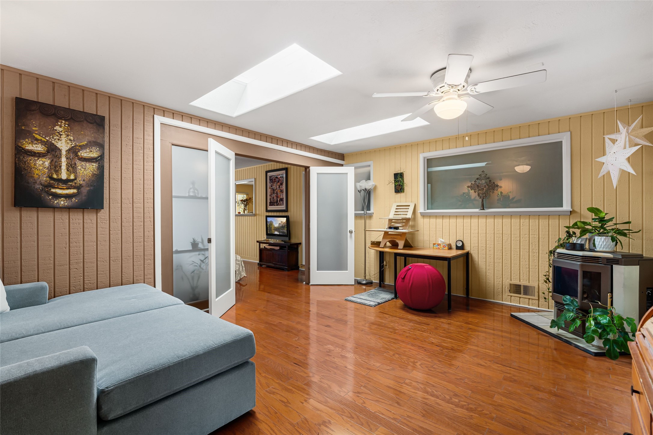 Beautifully cared for Stamm home blending mid-century charm with thoughtful updates. This inviting 3-bedroom, 2-bath residence features original wood cabinetry and oak floors, skylights throughout, and a spacious great room with French doors leading to a private backyard. The primary suite includes a Japanese warm-water bidet and an updated bath. An insulated studio with power is ideal for art or office use. Recent improvements include a new roof, HVAC with UV filtration, a kitchen remodel with a gas range, updated baths, and fresh stucco and paint. Mature evergreens, drip-irrigated landscaping, and a quiet central location near Herb Martinez Park and the Arroyo Chamiso trails make this a truly special property.