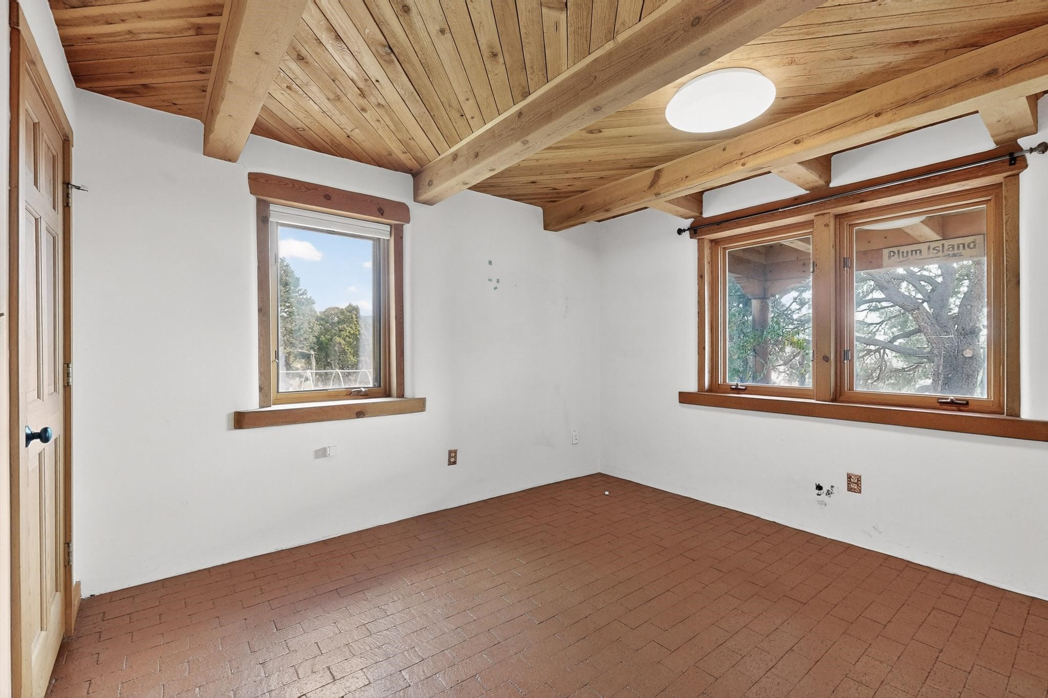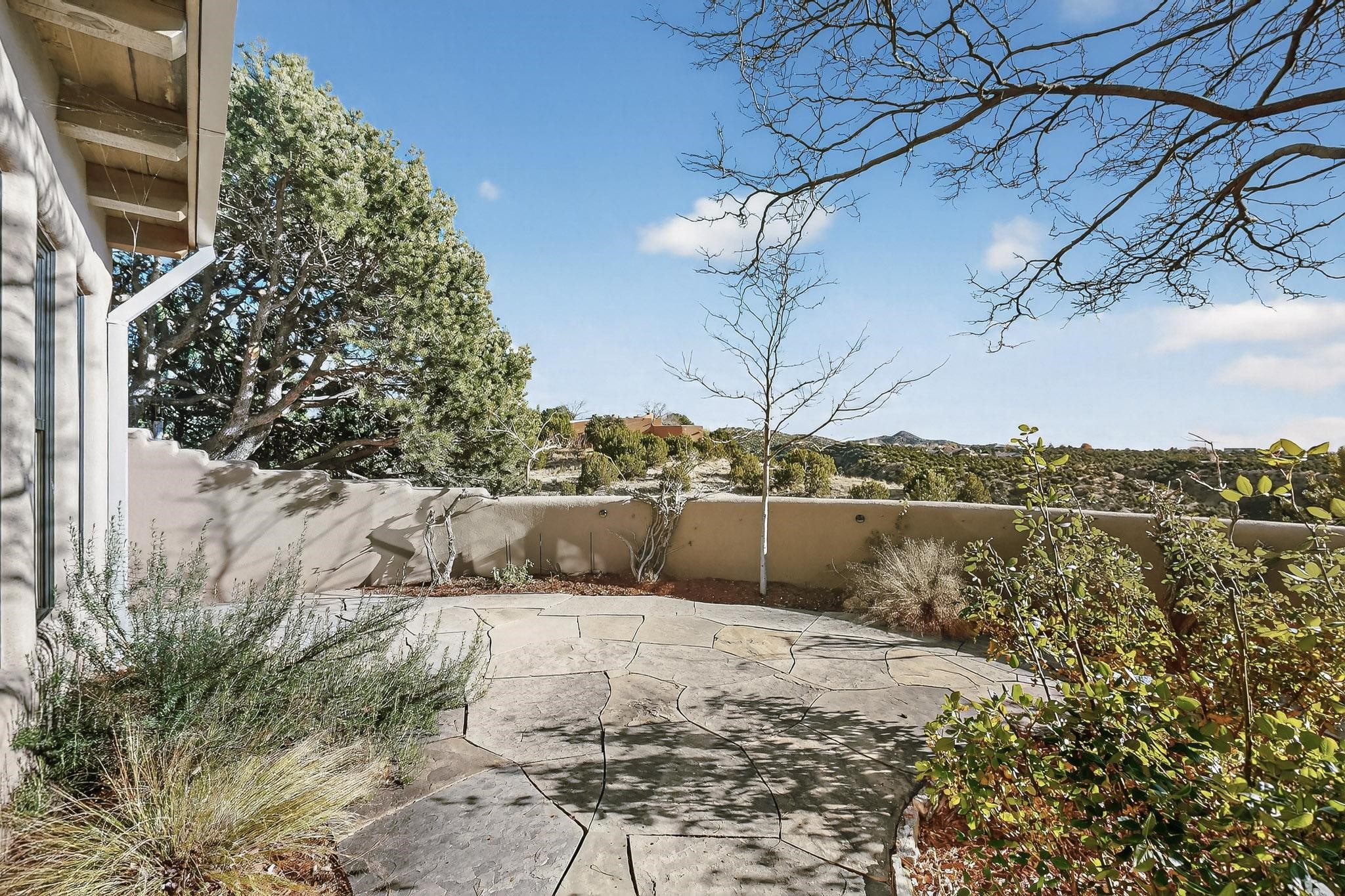 The 24 Old Agua Fria adobe compound is a rare property given its unique location on the north rim of the Arroyo Hondo , a tributary of the Santa Fe River, with its inspiring and commanding canyon views to the south and west, its access to nearby public and private trails, its plentiful garden pathways, stone walls, and diverse trees and plants. Of note, the property has a remarkable solar footprint both on ground and rooftop that champions its sustainable profile in locked step with PNM. And finally, the nearby proximity of the indigenous Arroyo Hondo Pueblo (Ca1300 CE) that grew into a 1000 room thriving community, speaks with immediacy to our local Archeological heritage and its stewardship today under the Archeological Conservancy. See WWW.ArroyoHondo.Org in Associated Docs for the compelling Santa Fe storyline that emerged in the 20th Century.The adobe Main House was bult in 1990 and the Casita in 2000. The Main has 3 bedroom, 2 bathrooms and the Casita includes a 1 bedroom with adjacent Living Room, a small kitchen and 1 bathroom. A large adobe garage abuts to the north for car parking (EV connections), storage and creative uses. The property has a private well, the land parcel with its serene, sunny vistas shares 7.94 relatively undeveloped private acres with close access to downtown Sant Fe at 10 minutes drive away. Please come visit this extraordinary residence, experience its embrace of soft canyon winds, long sunrise and sunset views with hilltop promontory privacy that's hard to find today!