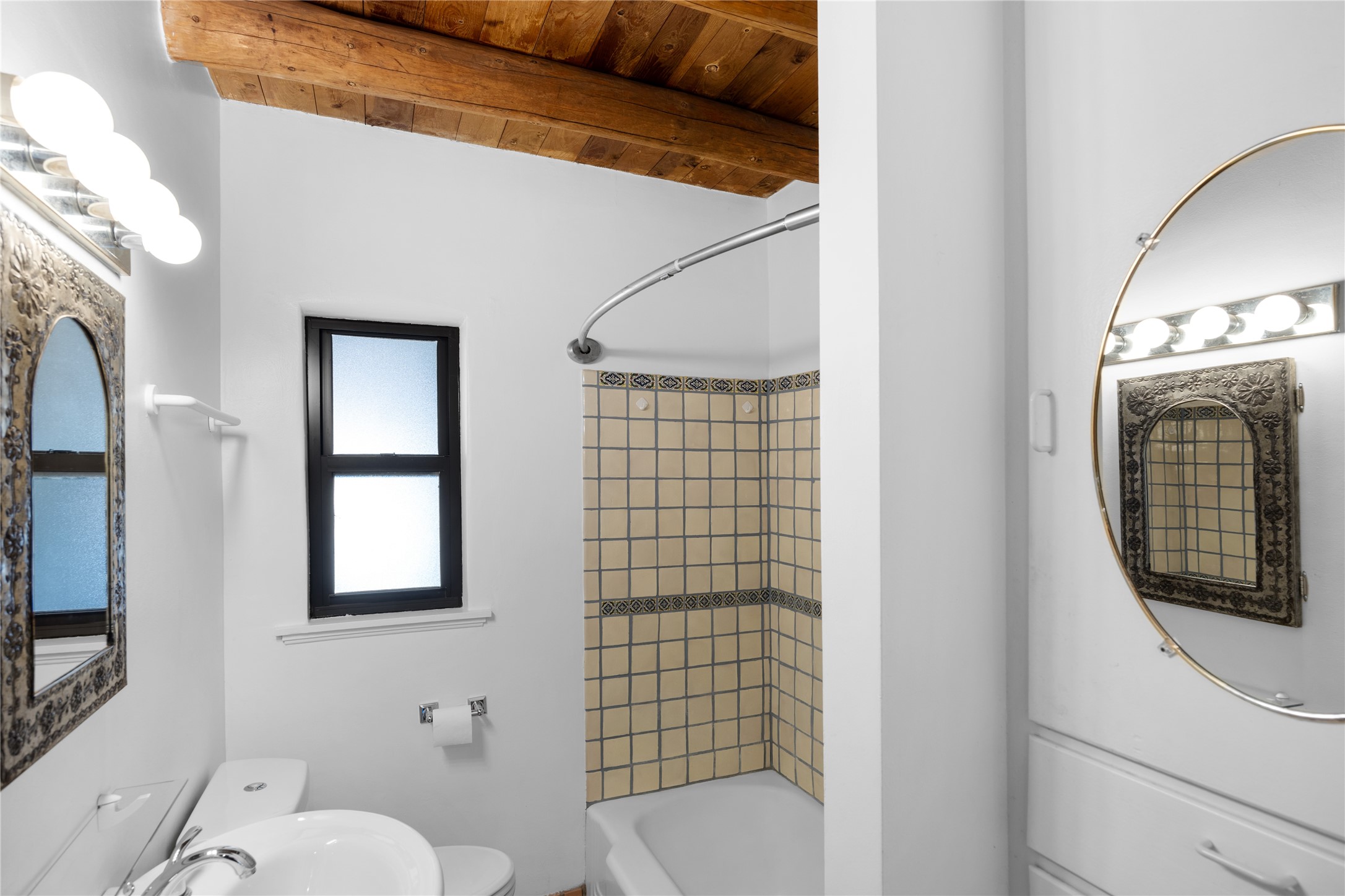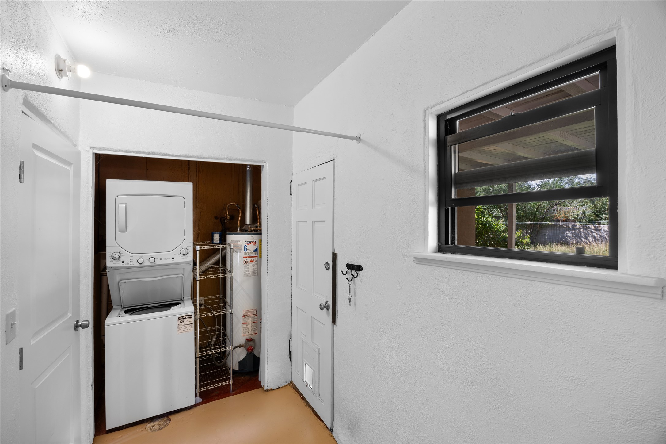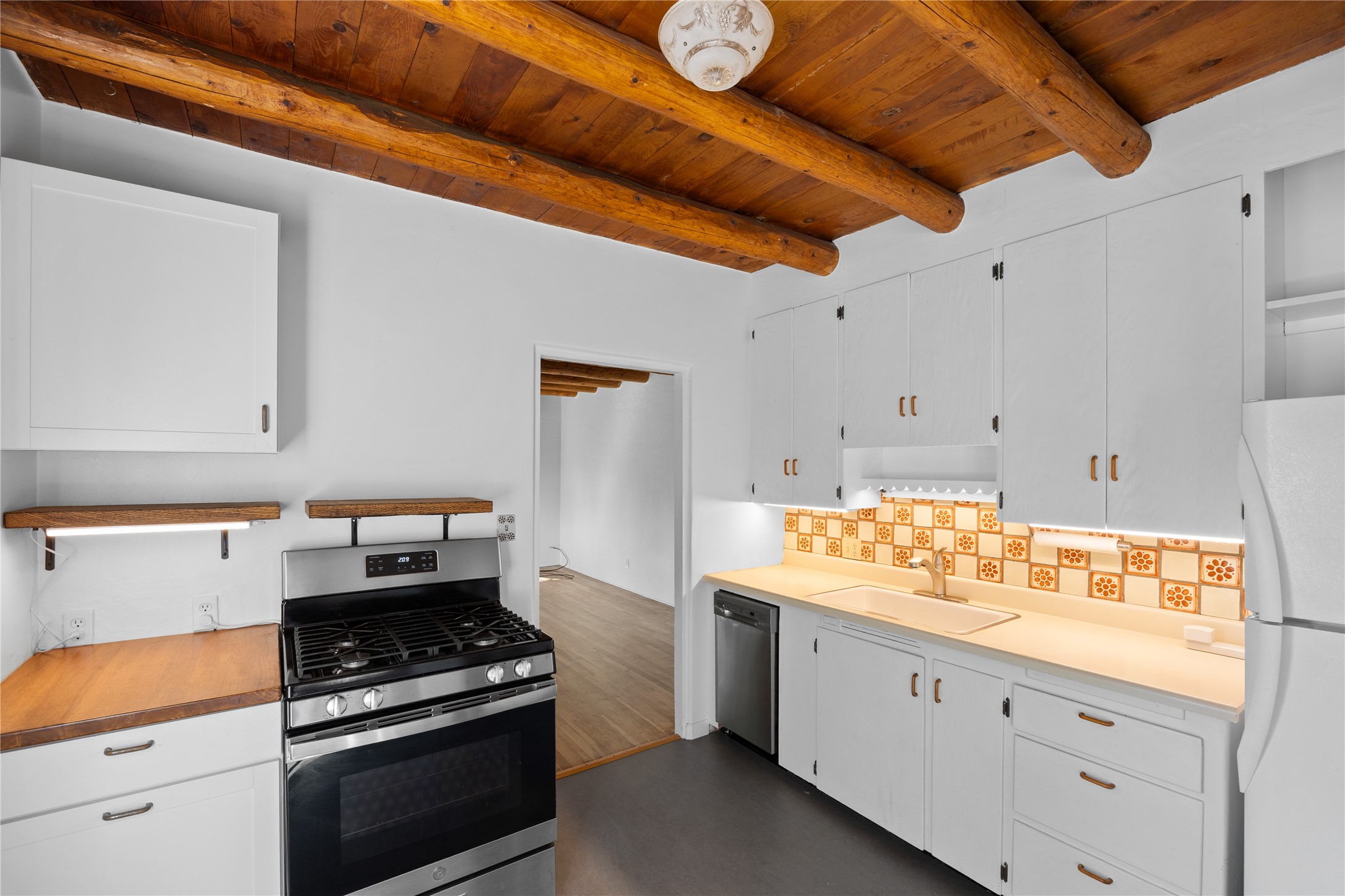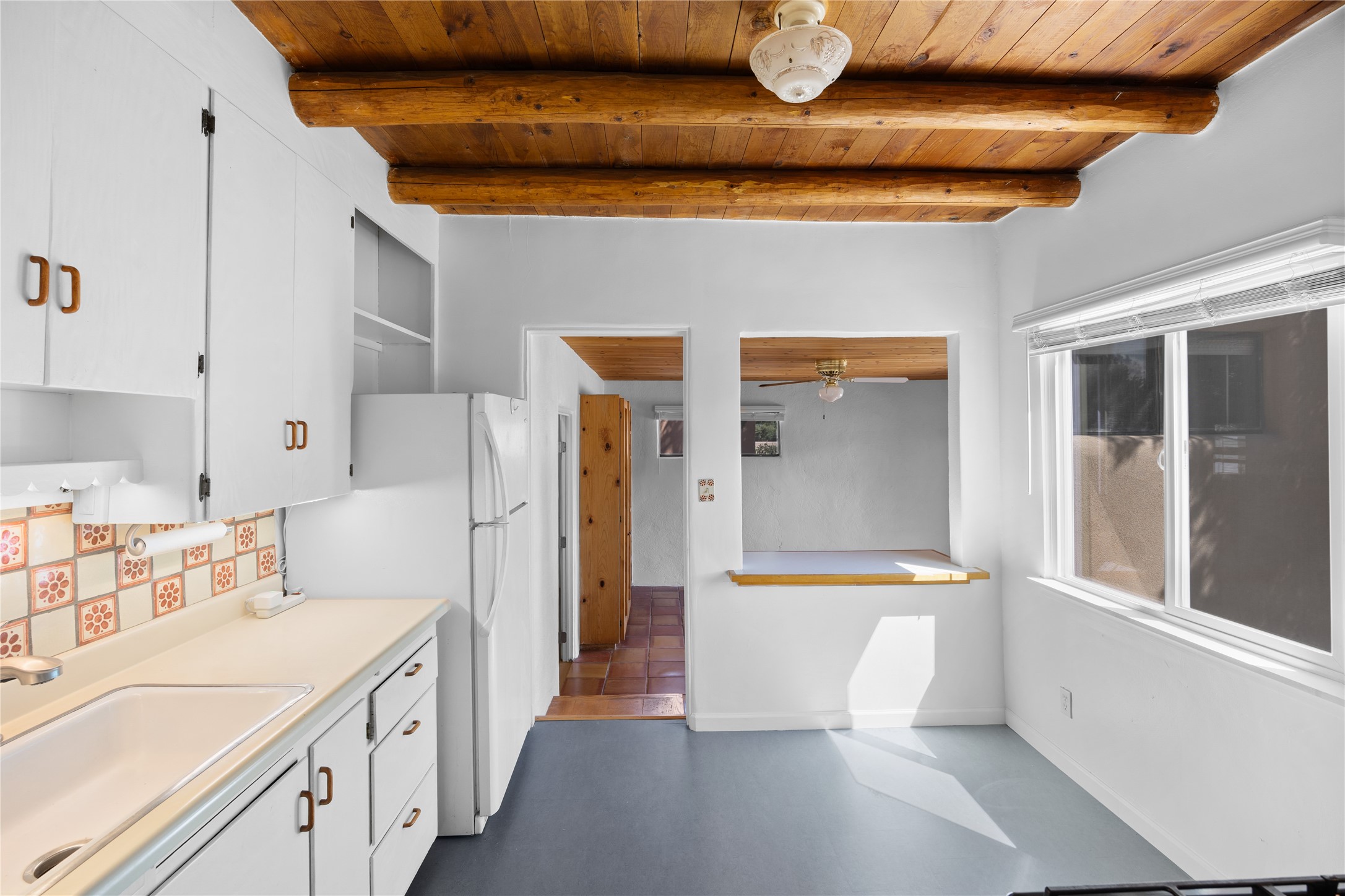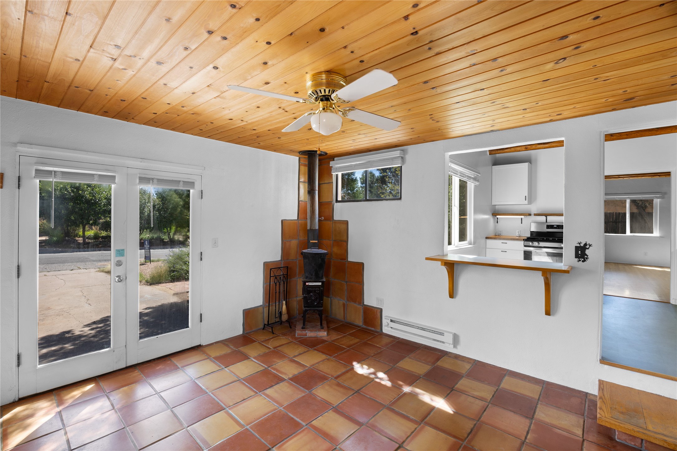 Quintessential well-built Allen Stamm home, beautifully sited in coveted Casa Alegre. Be entranced by its lovely front yard's landscaping, with a sweet flagstone path leading to the classic Stamm front door. The interior won't disappoint, with its solid design including vigas, hardwood floors and a corner kiva fireplace. Its converted garage features a French door entryway, and exudes warmth and comfort with its Saltillo tile flooring, woodburning stove and built in wooden shelving. The home has been consistently upgraded & includes a newer roof, stucco, plumbing, electrical, windows & blinds. Its original floor furnace has been replaced by more efficient heating options. A spacious portal graces the large meadowy back yard which includes a clothes line (!!), & offers space for additional structures. Easy access to Frenchy's, Ashbaugh frisbee & dog park, & the Acequia biking/walking path to the Railyard & Santa Fe River Trail to downtown & the Plaza, plus restaurants & shopping. Come see this move-in-ready special gem ASAP!!