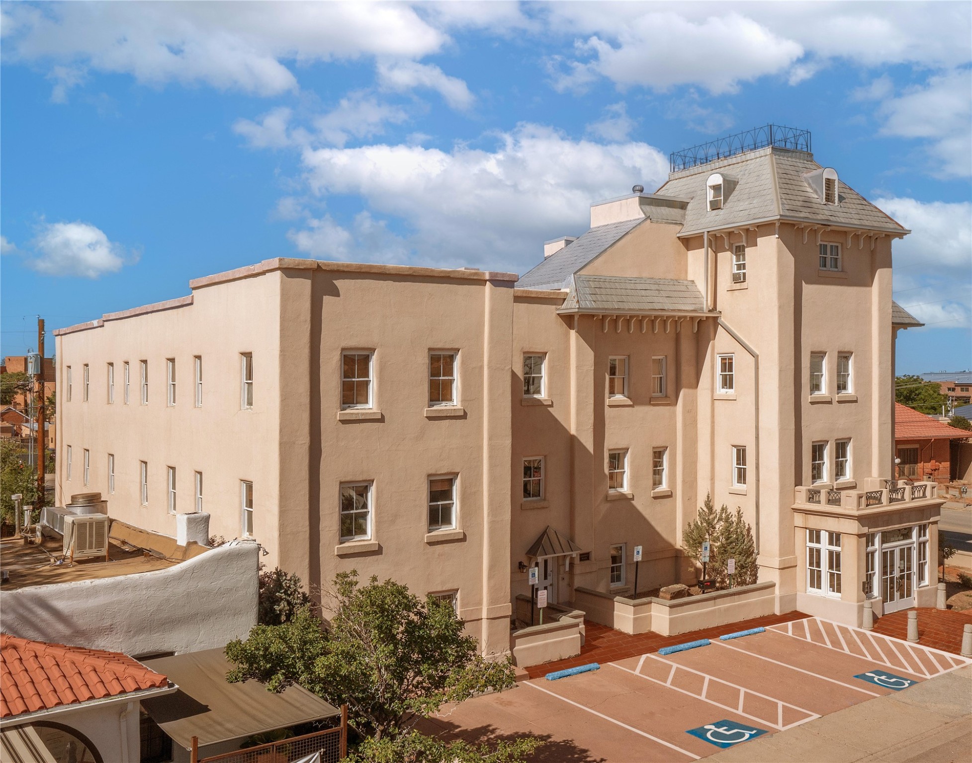 Original University of New Mexico built in the late 1800s this property is full of history! This is the first time that this has been a multi-tenant building in the heart of the downtown Santa Fe Railyard and located just across the street from the brand new Vladem Contemporary Museum! This building consists of 4 stories with a recently renovated common rooftop deck available to all tenants. Set up as traditional office this building also consists of a private parking lot, common lobby area with an elevator, and exquisite views of the Sangre de Cristos and downtown Santa Fe! Other current tenants include Fidelity National Title, Hunter Custom Homes, Santa Fe Advisors, Health Front, and ACG Engineering! Suite 302 was recently renovated and freshly painted and is ready for its next tenant! views of the Railyard and parking spaces come with this lease!