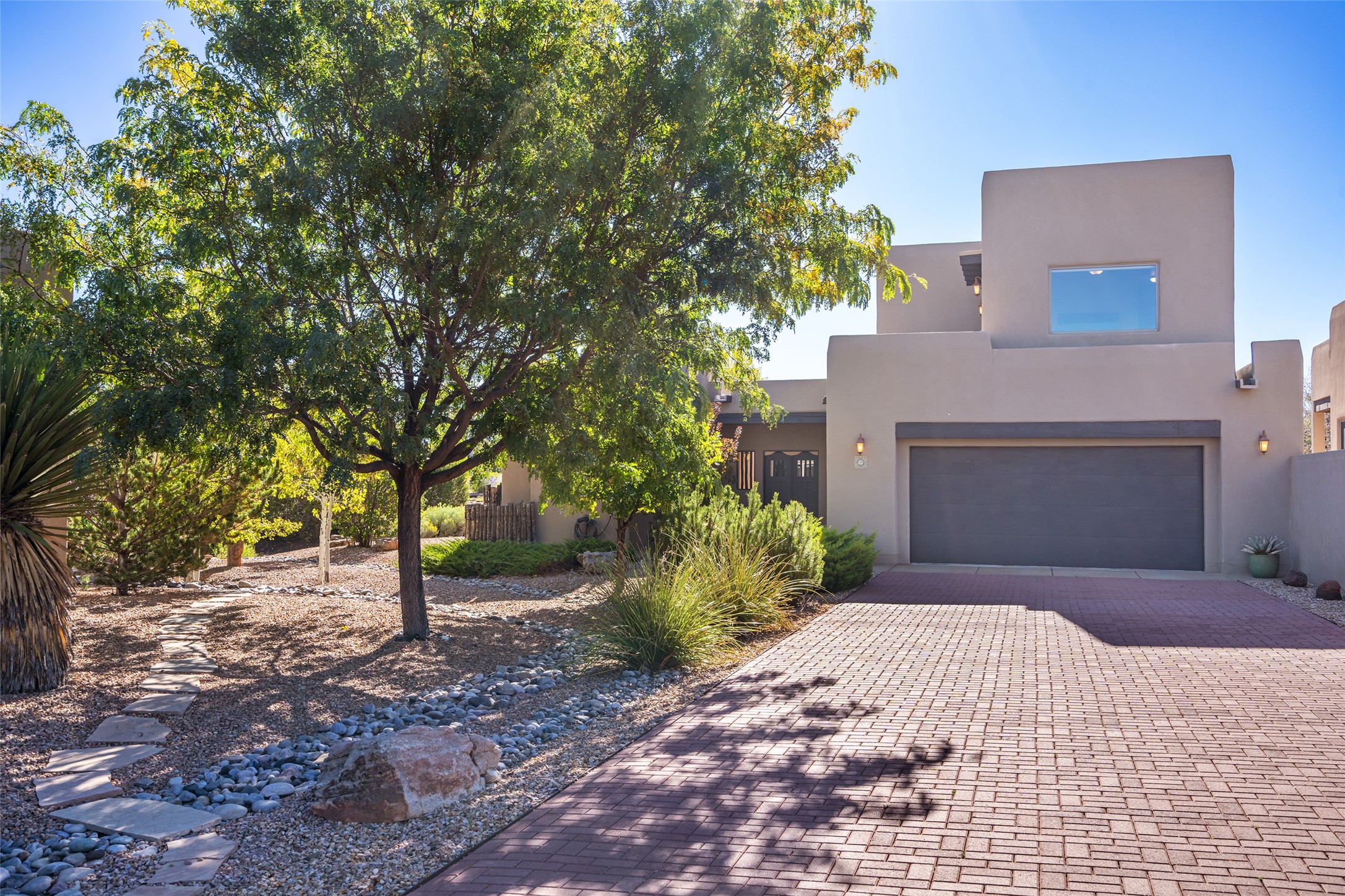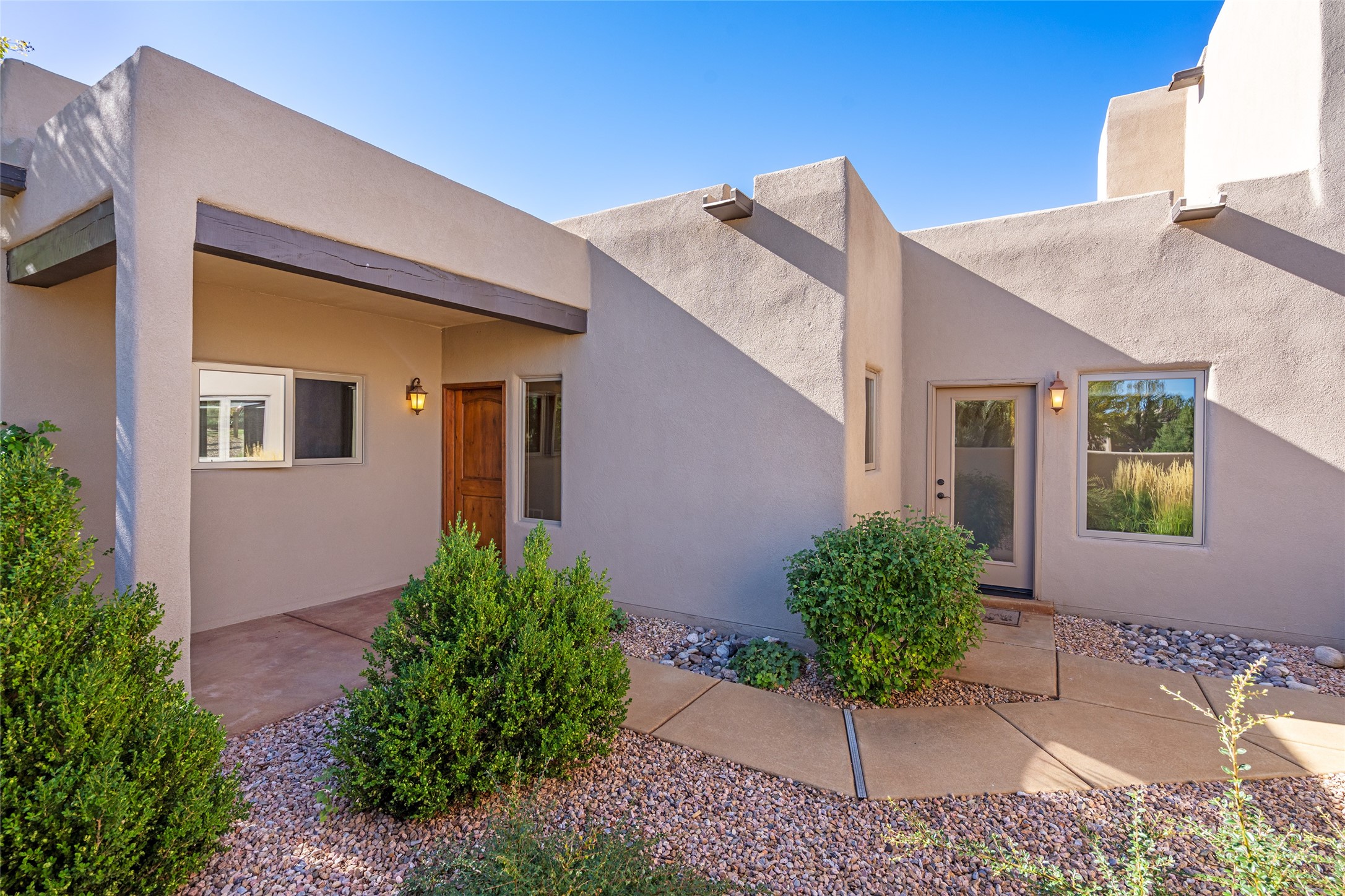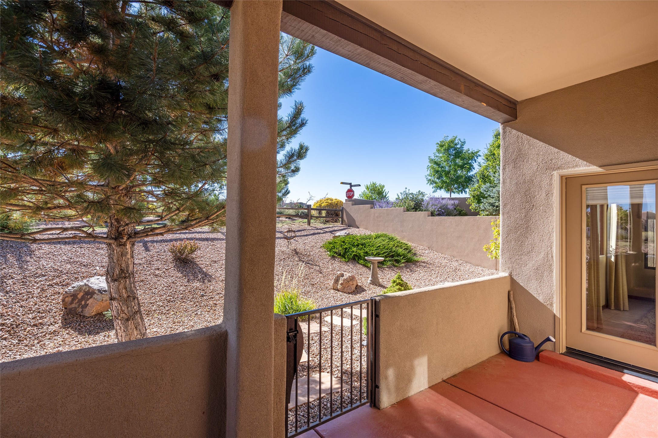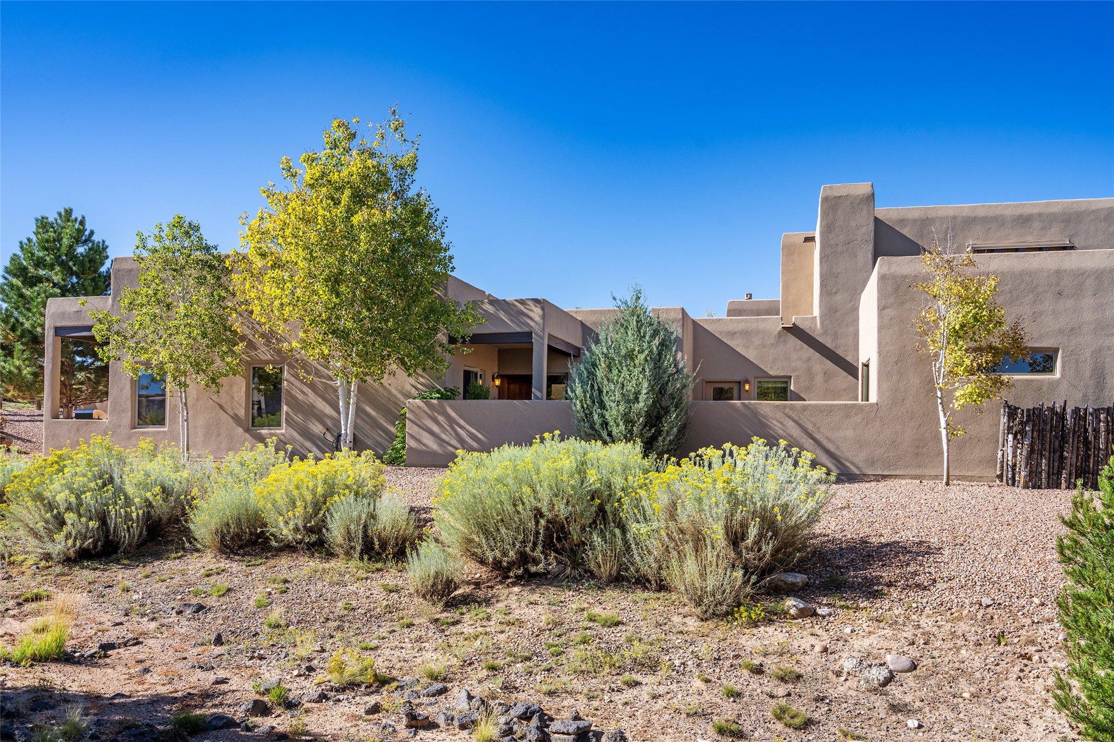EASY ELEGANCE IN LAS CAMPANAS. Built in 2014 by Rachel Matthews, this 4-bedroom, 4-bath residence with detached guest casita feels practically new; a rare find in the Los Santeros Villas, offering both the ease of lock-and-leave lifestyle and the comfort of a primary residence. The main home spans approximately 2,106 sqft, complemented by a 274 sqft casita, each space designed with privacy, flexibility, and everyday living in mind. The primary suite and one guest room are located on the main level, while a versatile upstairs bedroom or office opens to an observation deck - perfect for morning coffee with Sangre de Cristo Mountain views or stargazing under Las Campanas' protected night skies. The detached casita, complete with its own bedroom and bath, provides ideal accommodations for visitors or a private studio retreat. Warm interiors feature two gas Kiva fireplaces, abundant natural light, and central heating and cooling for year-round comfort. A gated courtyard with low-maintenance landscaping creates a welcoming entry, while a two-car garage and HOA security patrols add peace of mind. This sparkling single-owner home has been carefully maintained and offers timeless Santa Fe style with the flexibility to serve as either a secure getaway or a full-time residence in one of Santa Fe's most desirable communities.