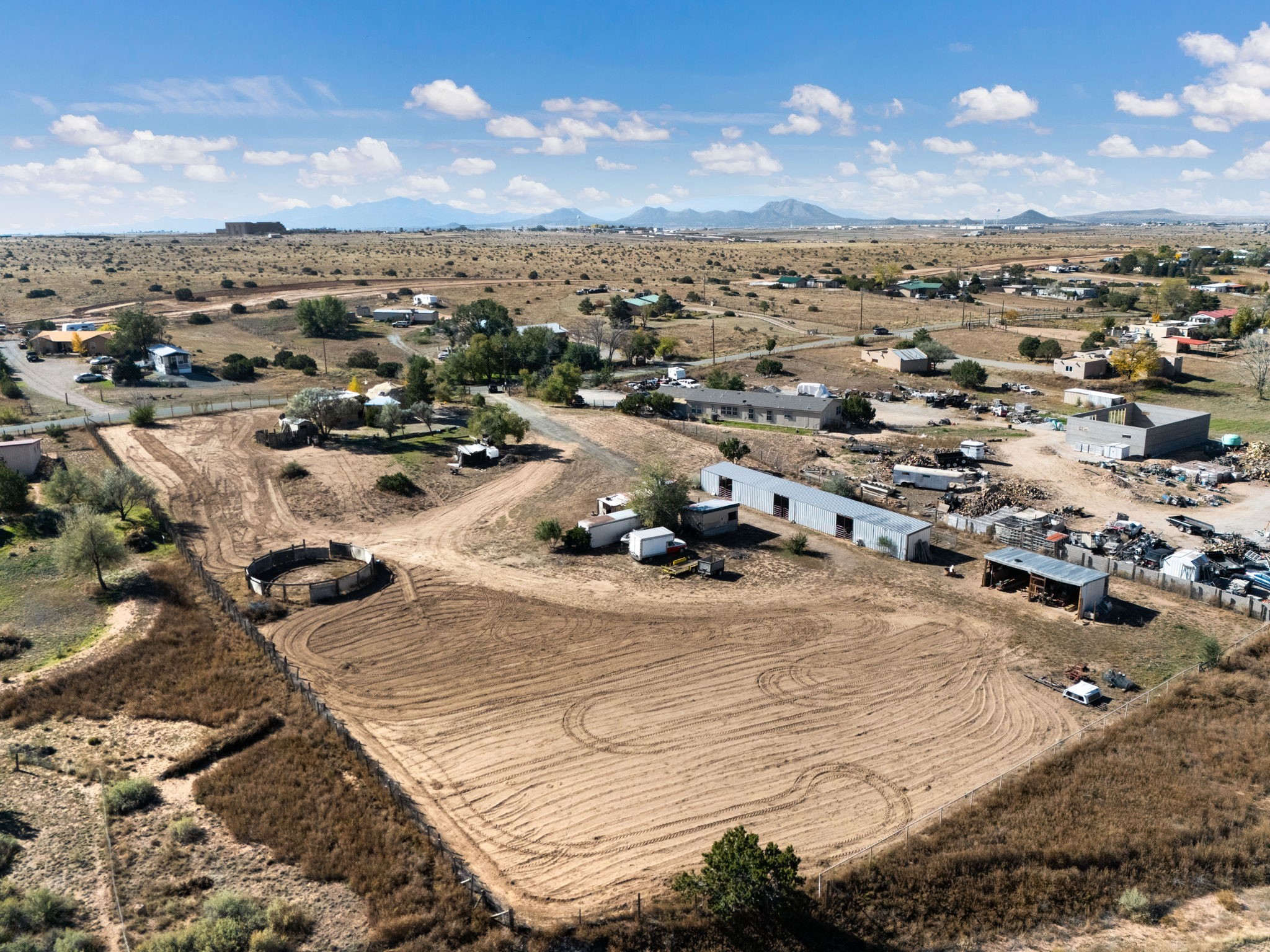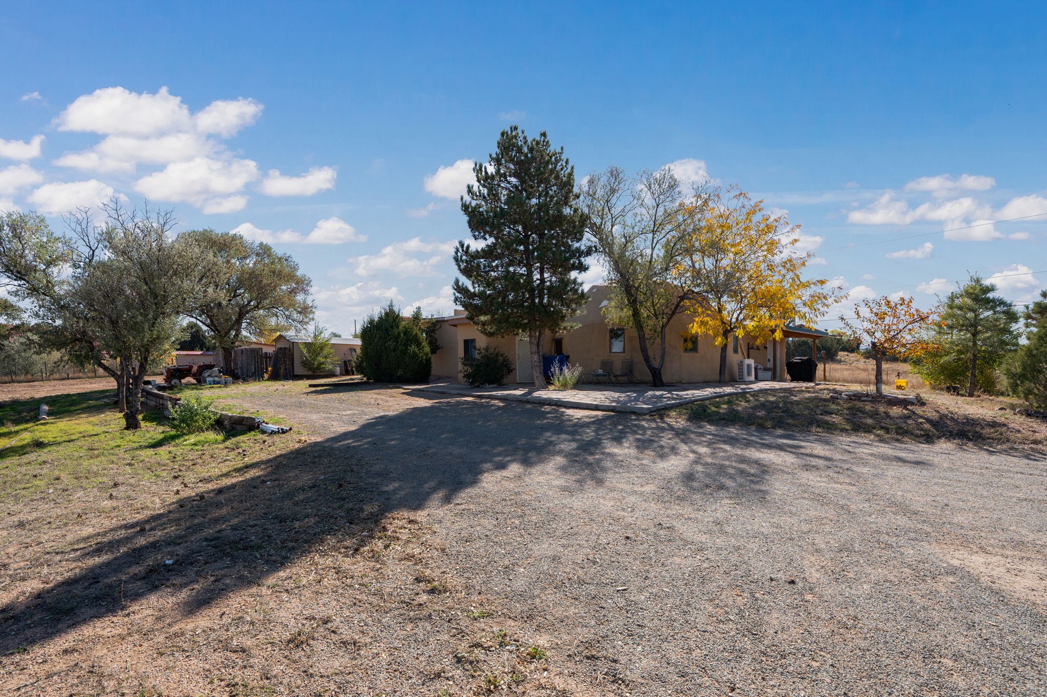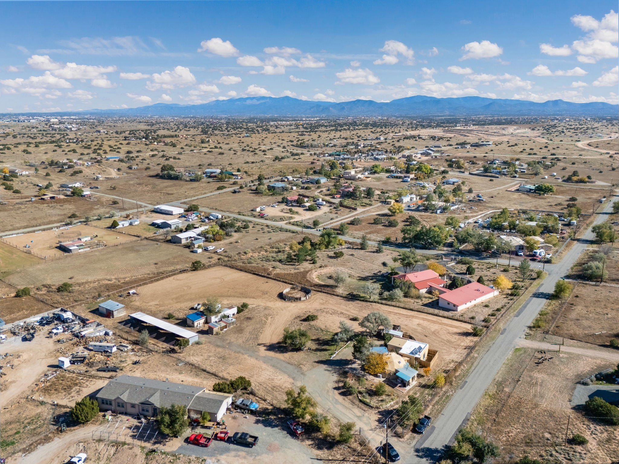 Welcome to your own slice of the Southwest -- a 1,664-square-foot largely adobe home built around a one-of-a-kind geodesic dome, full of character and heart. Set on 2.5 peaceful acres with sweeping Sangre de Cristo mountain views, this property offers the best of rural living, combining comfort, sustainability, and the beauty of the high desert.Step inside and feel the warmth of handcrafted adobe walls, the wooden geodesic dome, exposed vigas, and natural wood and Saltillo tile floors. The primary bedroom features a corner kiva fireplace, creating the perfect cozy retreat on cool evenings. The spacious kitchen is well equipped with stainless steel appliances and plenty of room for gathering, cooking, and sharing meals made from your own garden bounty.The home stays comfortable year-round with a mini-split, woodstove, and solar hot water, while a greywater irrigation system helps nourish your land.Outside, you'll find everything you need for a working mini-ranch or hobby farm -- stables for eight horses with water and electricity, an arena, and ample storage for tack, tools, and feed. The private well ensures reliable water, and there's space to expand your gardens or add more animal pens. Currently, the homestead is happily shared with turkeys, chickens, and mini goats, all thriving under the wide New Mexico sky.This property isn't just a home -- it's a lifestyle. A peaceful haven where you can slow down, breathe deep, and live in rhythm with the land.