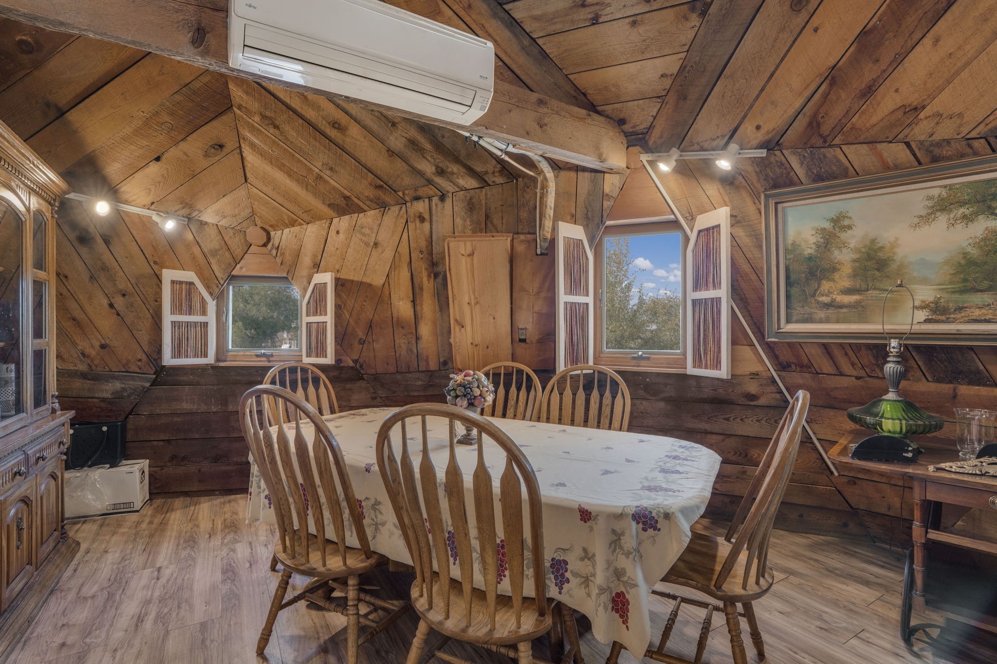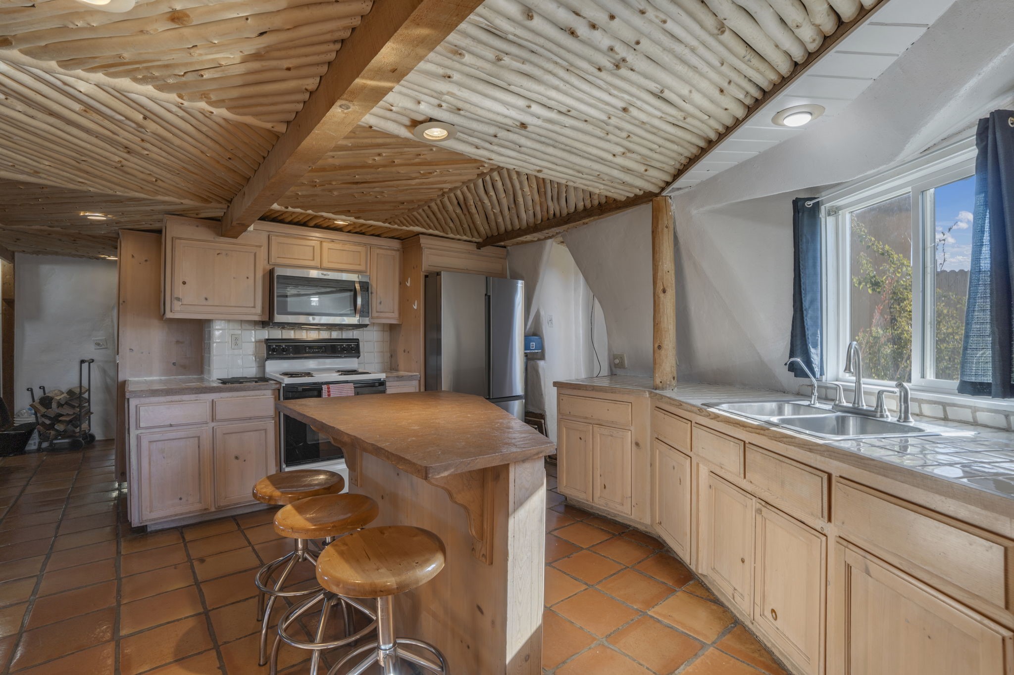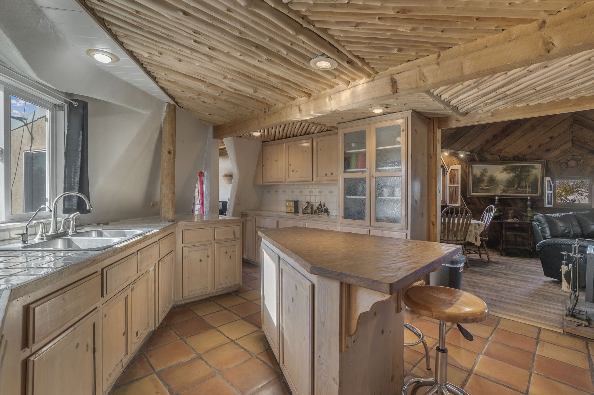 Welcome to your own slice of the Southwest -- a 1,664-square-foot largely adobe home built around a one-of-a-kind geodesic dome, full of character and heart. Set on 2.5 peaceful acres with sweeping Sangre de Cristo mountain views, this property offers the best of rural living, combining comfort, sustainability, and the beauty of the high desert.Step inside and feel the warmth of handcrafted adobe walls, the wooden geodesic dome, exposed vigas, and natural wood and Saltillo tile floors. The primary bedroom features a corner kiva fireplace, creating the perfect cozy retreat on cool evenings. The spacious kitchen is well equipped with stainless steel appliances and plenty of room for gathering, cooking, and sharing meals made from your own garden bounty.The home stays comfortable year-round with a mini-split, woodstove, and solar hot water, while a greywater irrigation system helps nourish your land.Outside, you'll find everything you need for a working mini-ranch or hobby farm -- stables for eight horses with water and electricity, an arena, and ample storage for tack, tools, and feed. The private well ensures reliable water, and there's space to expand your gardens or add more animal pens. Currently, the homestead is happily shared with turkeys, chickens, and mini goats, all thriving under the wide New Mexico sky.This property isn't just a home -- it's a lifestyle. A peaceful haven where you can slow down, breathe deep, and live in rhythm with the land.