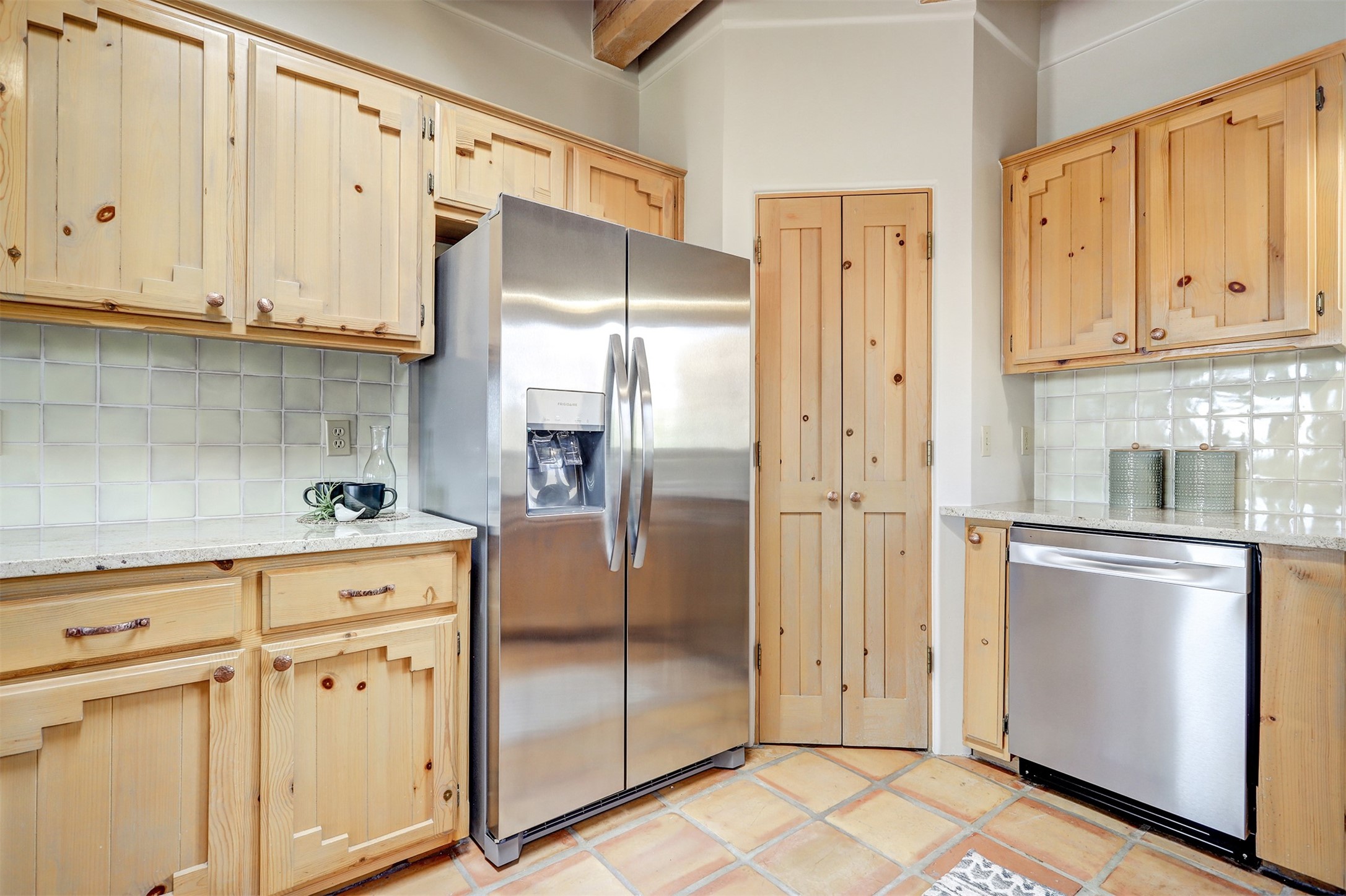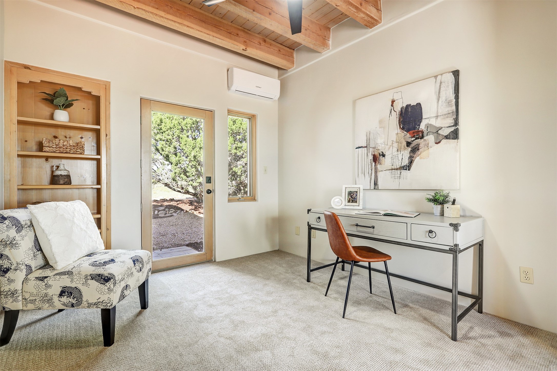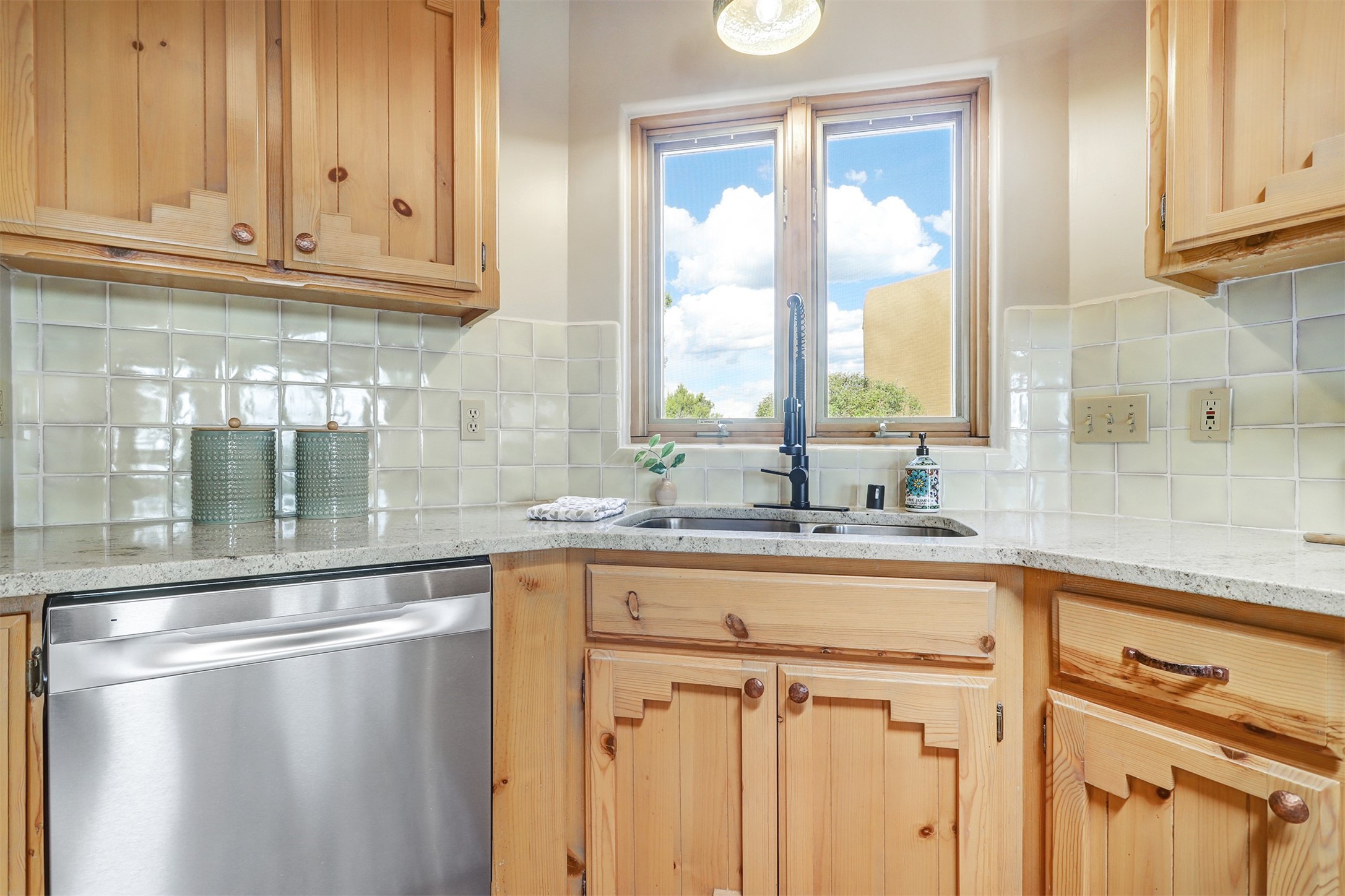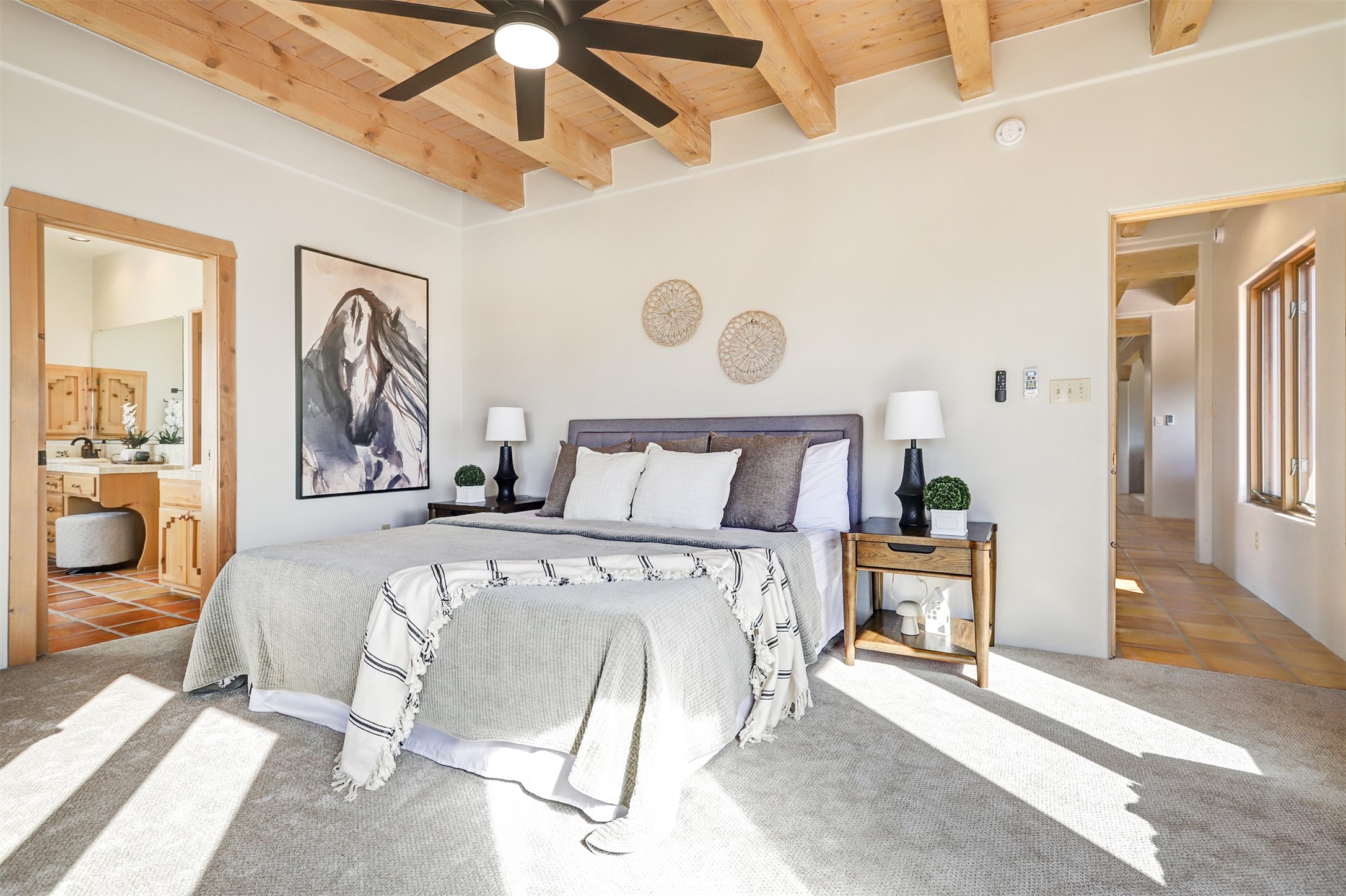Step into this enchanting single-story home in Eldorado, where timeless Santa Fe character meets thoughtful modern upgrades. From the moment you enter, rich Saltillo tile and a stunning kiva fireplace set the tone, creating warmth and authenticity throughout. Vibrant colors, beautiful light fixtures, wood ceilings, beams, and corbels fill the home with unmistakable Santa Fe charm. The kitchen is truly the heart of the home -- beautifully refreshed with new countertops, a handmade backsplash, and new stainless steel appliances that make cooking a joy. The space itself glows with natural light and character. Additional upgrades include a new TPO roof, fresh stucco, new hot water heater, mini-split system, fresh interior and exterior paint, and plush carpeting in the bedrooms. Every update was made with care, ensuring you can move right in and enjoy. Beyond the home, Eldorado offers a vibrant lifestyle with a wealth of amenities. The Community Center features a swimming pool, tennis and pickleball courts, basketball courts, a playground, and a dog park. Residents enjoy access to hiking and biking paths, a disc golf course, and the Community Preserve. The area hosts a variety of events, including yoga, Tai Chi, and hiking groups, fostering a strong sense of community. Santa Fe's world-class dining, galleries, and festivals are just a short drive away. Beautifully updated and thoughtfully designed, this Eldorado gem is ready to welcome you home.