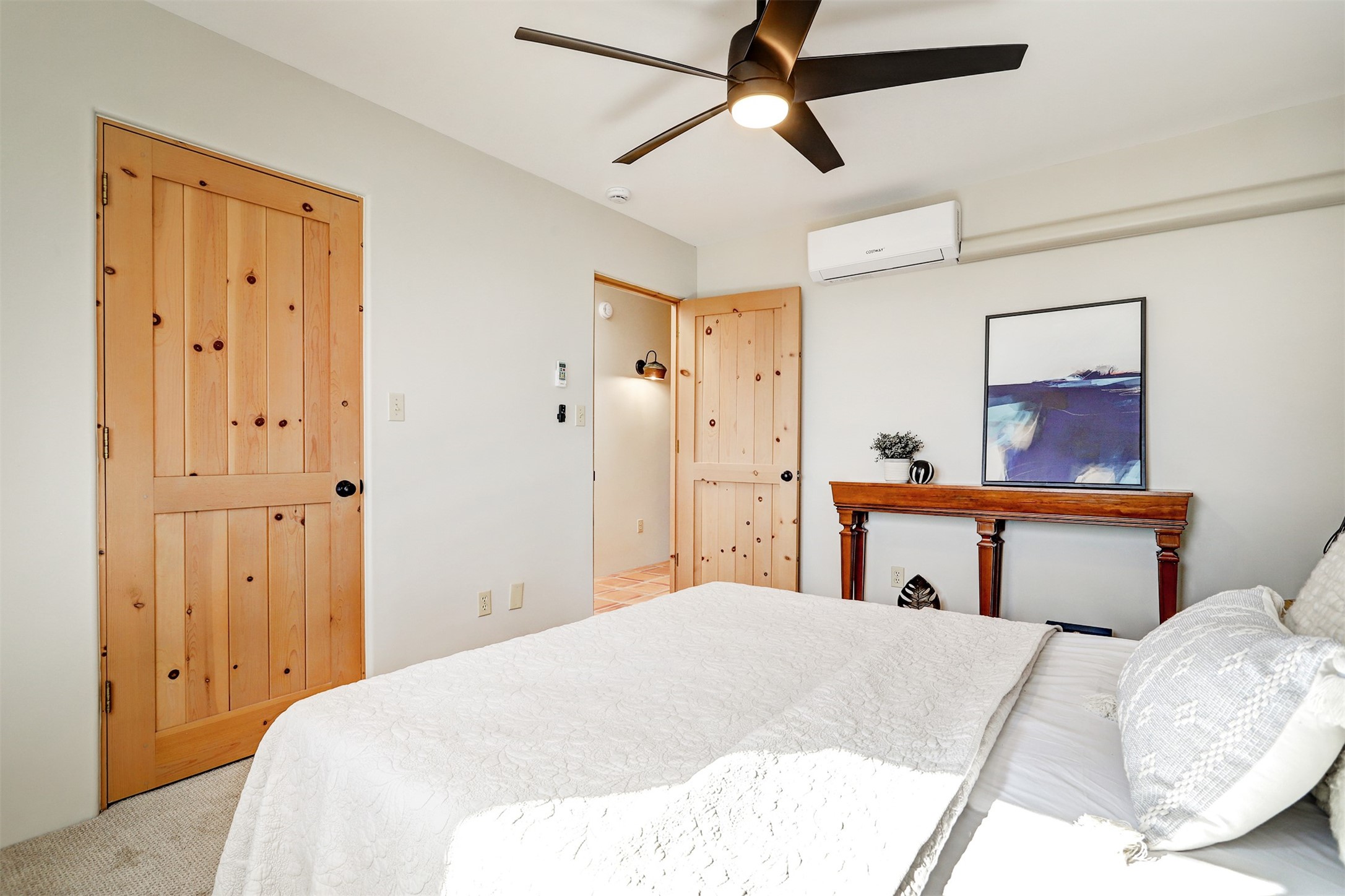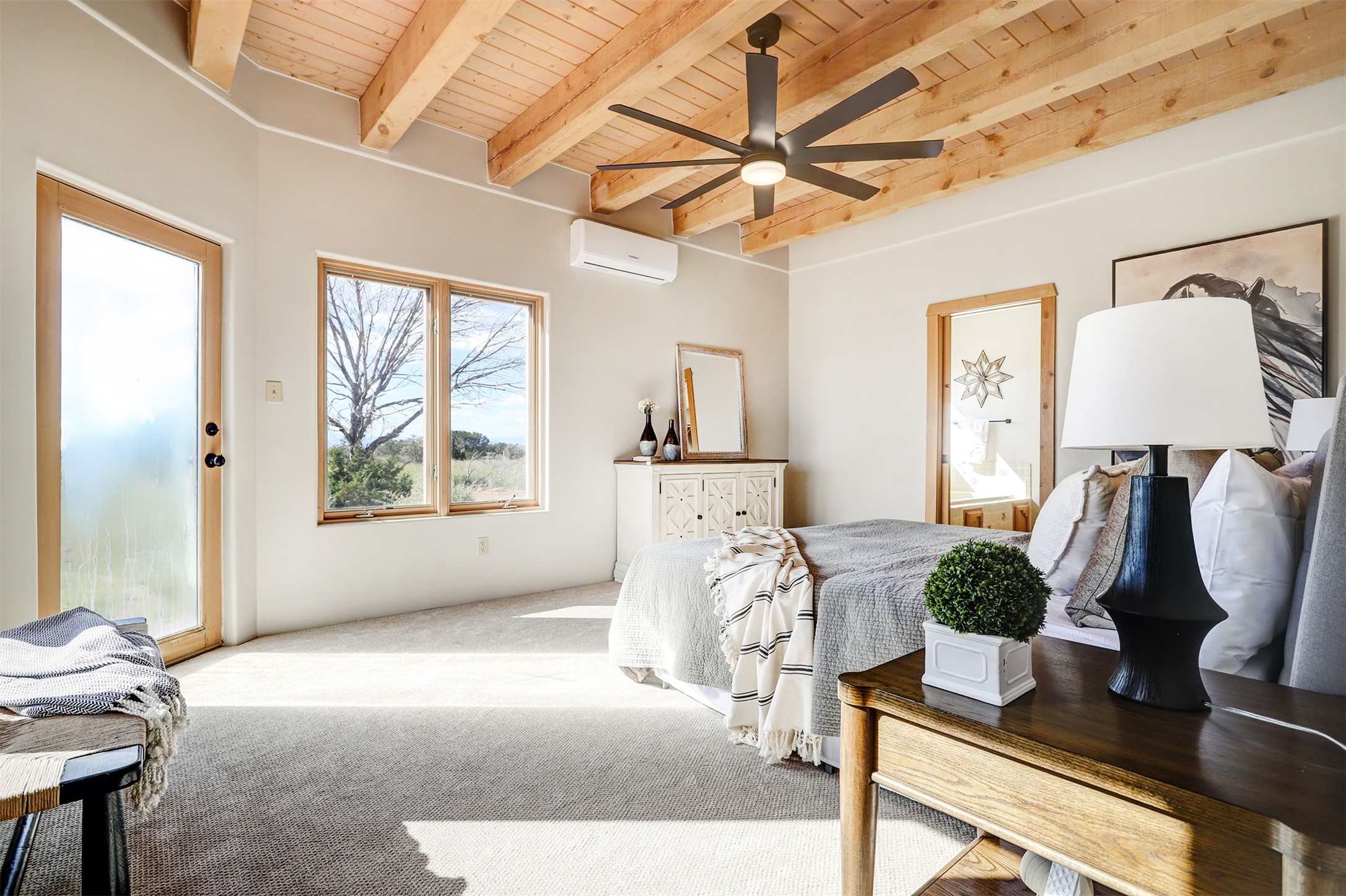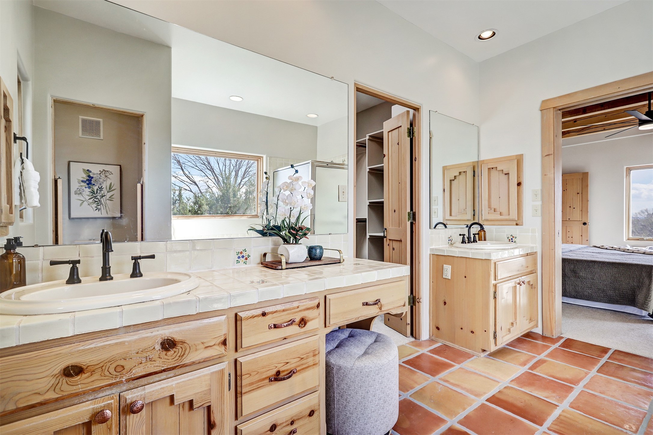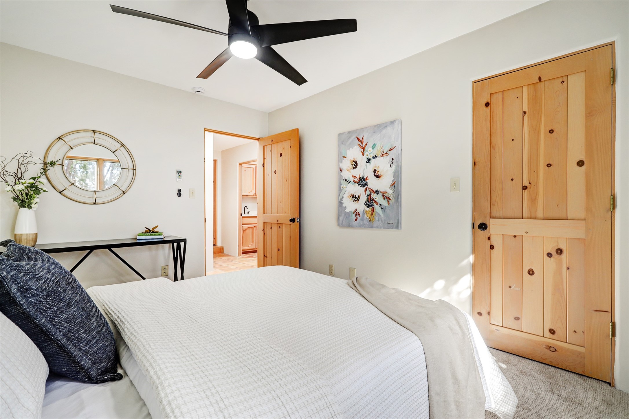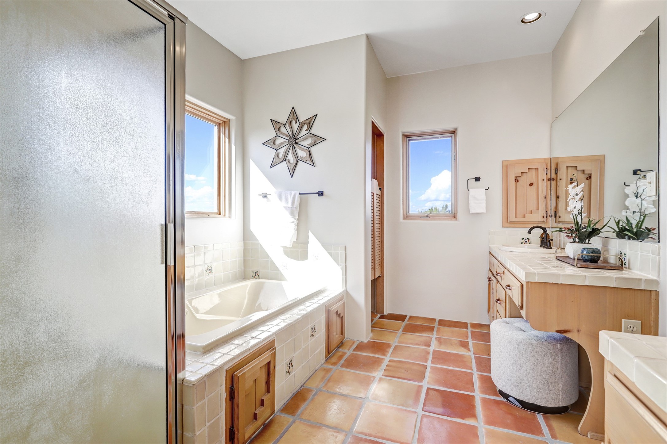 Step into this enchanting single-story home in Eldorado, where timeless Santa Fe character meets thoughtful modern upgrades. From the moment you enter, rich Saltillo tile and a stunning kiva fireplace set the tone, creating warmth and authenticity throughout. Vibrant colors, beautiful light fixtures, wood ceilings, beams, and corbels fill the home with unmistakable Santa Fe charm. The kitchen is truly the heart of the home -- beautifully refreshed with new countertops, a handmade backsplash, and new stainless steel appliances that make cooking a joy. The space itself glows with natural light and character. Additional upgrades include a new TPO roof, fresh stucco, new hot water heater, mini-split system, fresh interior and exterior paint, and plush carpeting in the bedrooms. Every update was made with care, ensuring you can move right in and enjoy. Beyond the home, Eldorado offers a vibrant lifestyle with a wealth of amenities. The Community Center features a swimming pool, tennis and pickleball courts, basketball courts, a playground, and a dog park. Residents enjoy access to hiking and biking paths, a disc golf course, and the Community Preserve. The area hosts a variety of events, including yoga, Tai Chi, and hiking groups, fostering a strong sense of community. Santa Fe's world-class dining, galleries, and festivals are just a short drive away. Beautifully updated and thoughtfully designed, this Eldorado gem is ready to welcome you home.