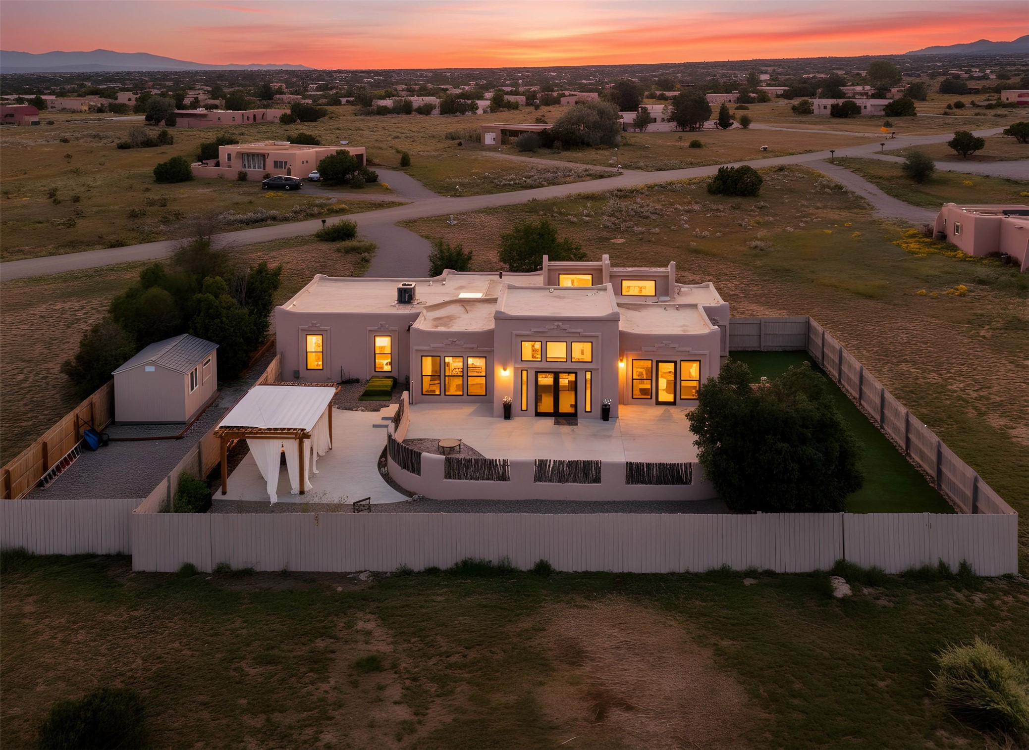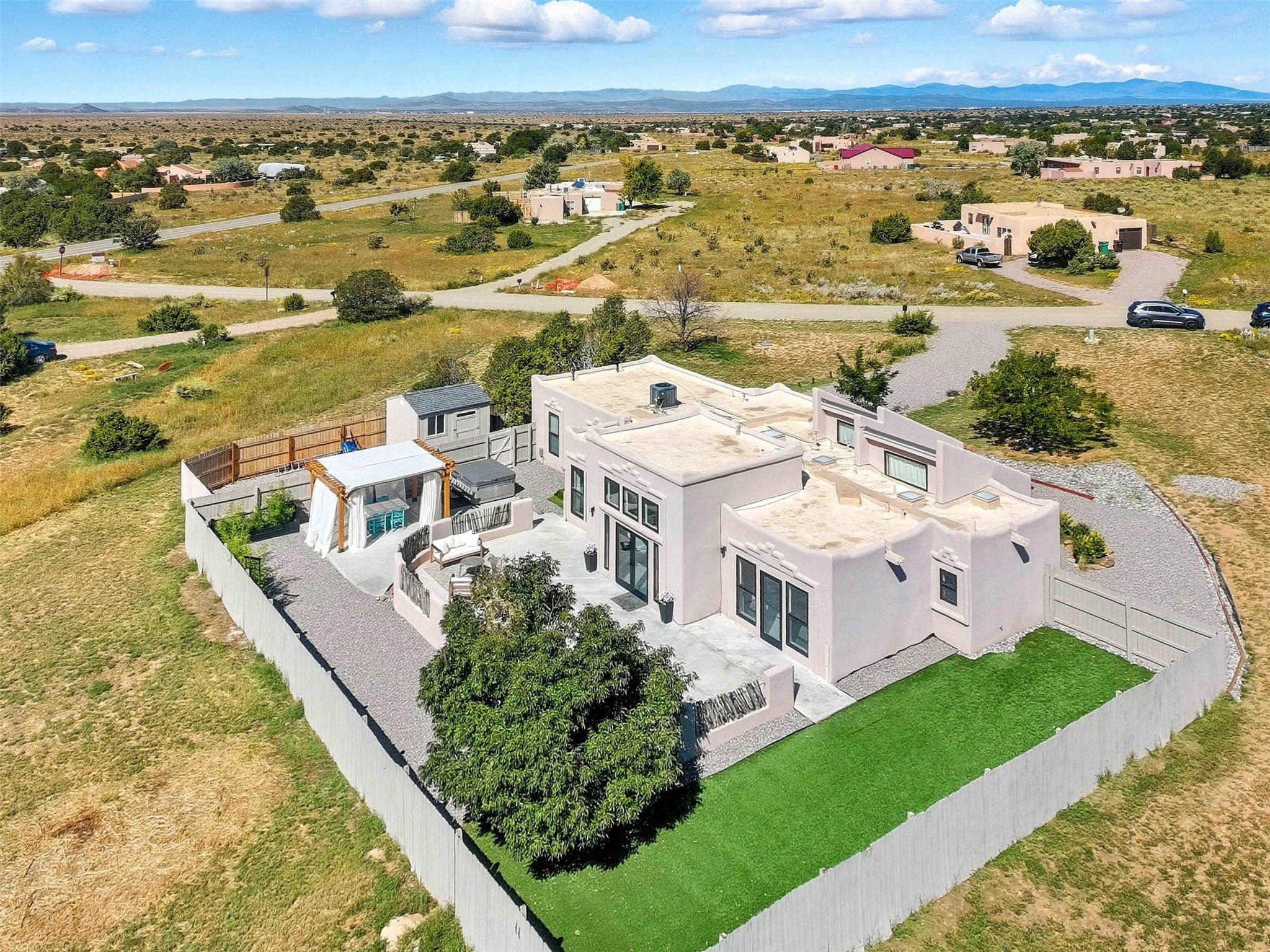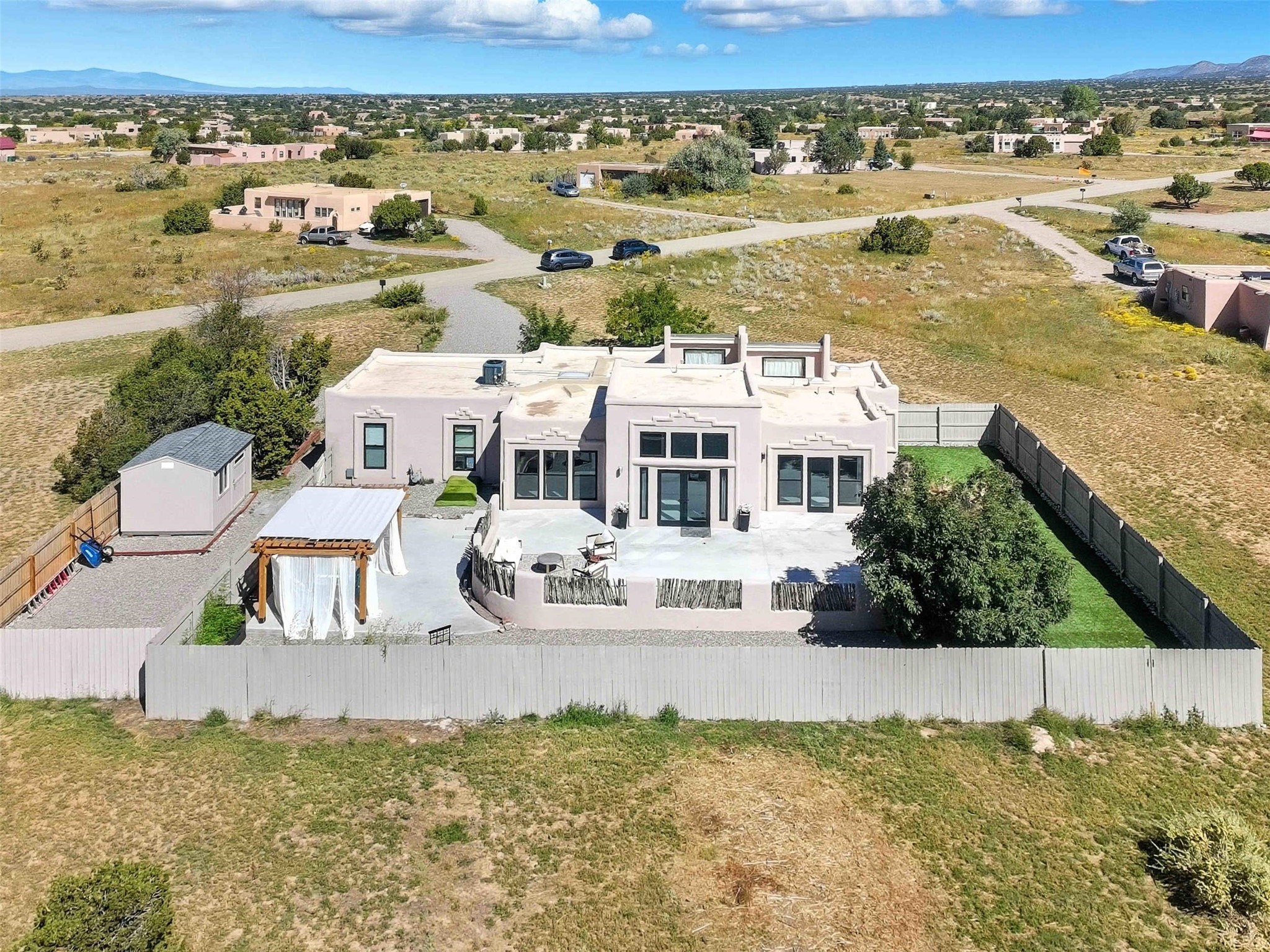 Huge price reduction! Welcome to a beautifully remodeled Eldorado home--truly move-in ready! Every detail has been thoughtfully updated to provide comfort, style, and ease of living. Recent improvements include new stucco, a durable TPO roof, energy-efficient windows, a modern HVAC system, updated electrical, and newer appliances.Set on 1.4 acres, this property offers both space and privacy. Inside, you'll find light-filled, inviting spaces perfect for everyday living and entertaining. Outdoors, enjoy al fresco dining beneath the Santa Fe skies, a fenced yard with a lush grass area ideal for pets or relaxation, and a storage shed for convenience.This Eldorado gem combines modern upgrades with the charm of Santa Fe living. Don't miss your chance--this home won't last long! Photos in this listing may have been enhanced. Buyers to verify all information.