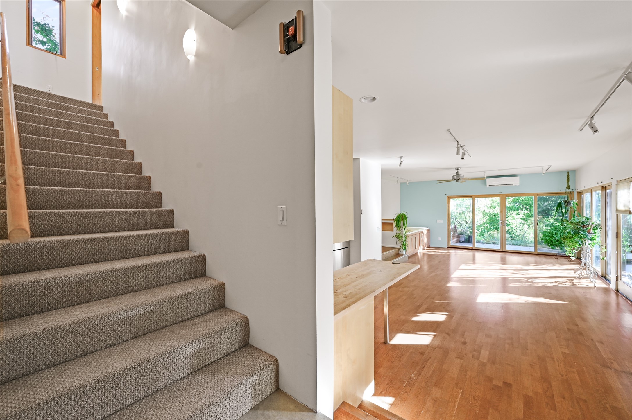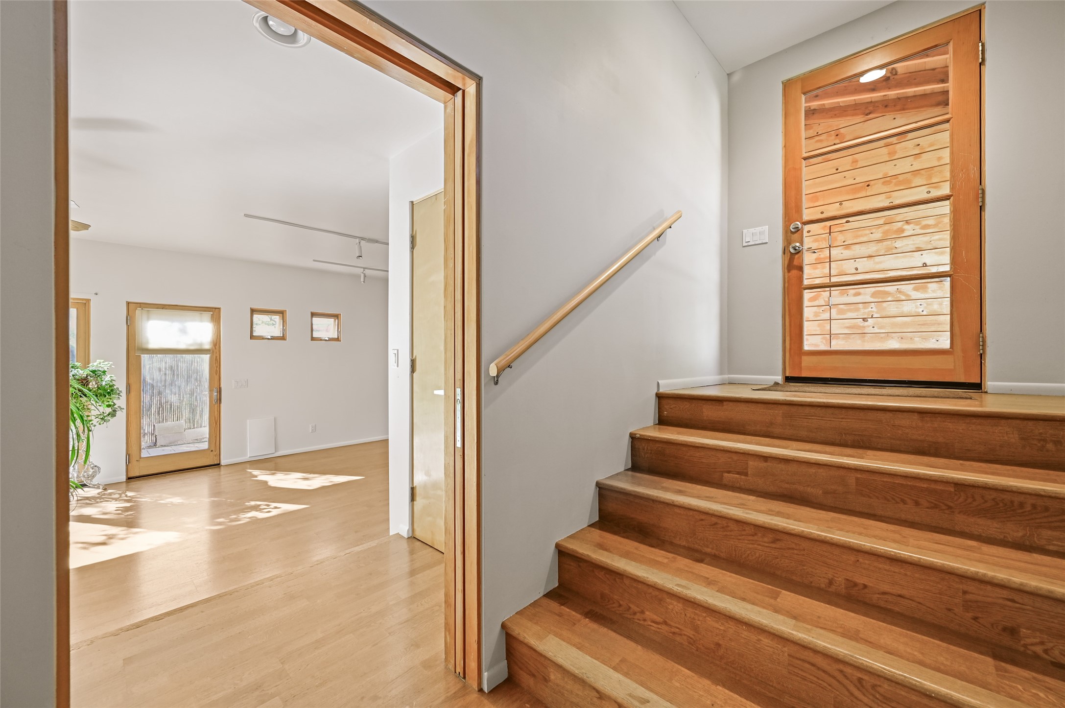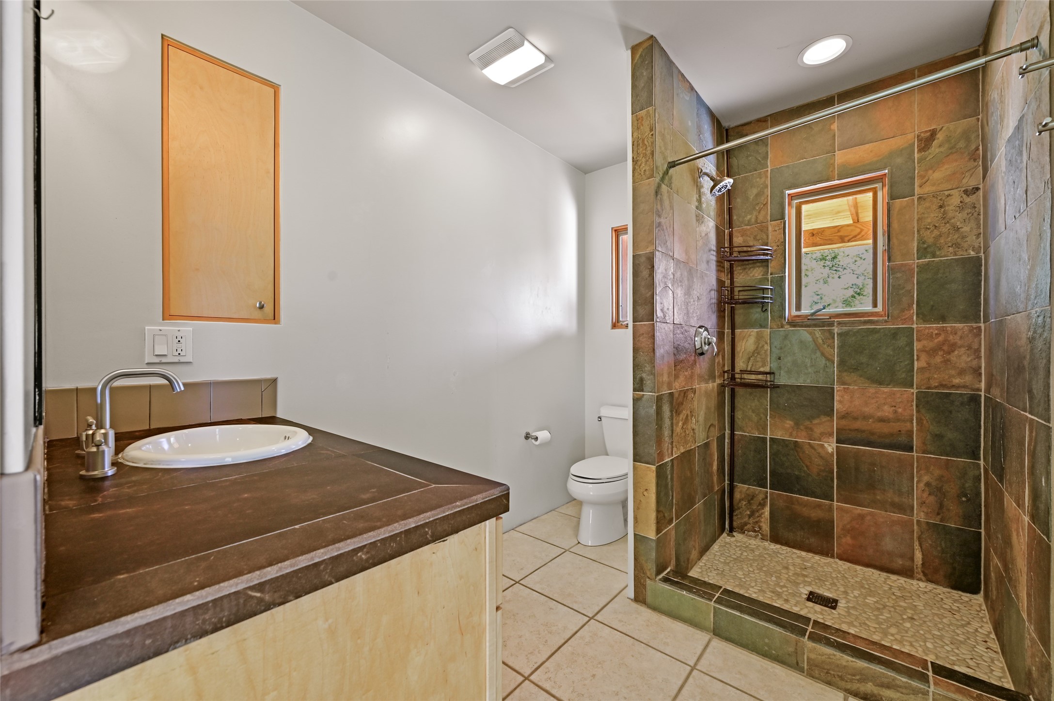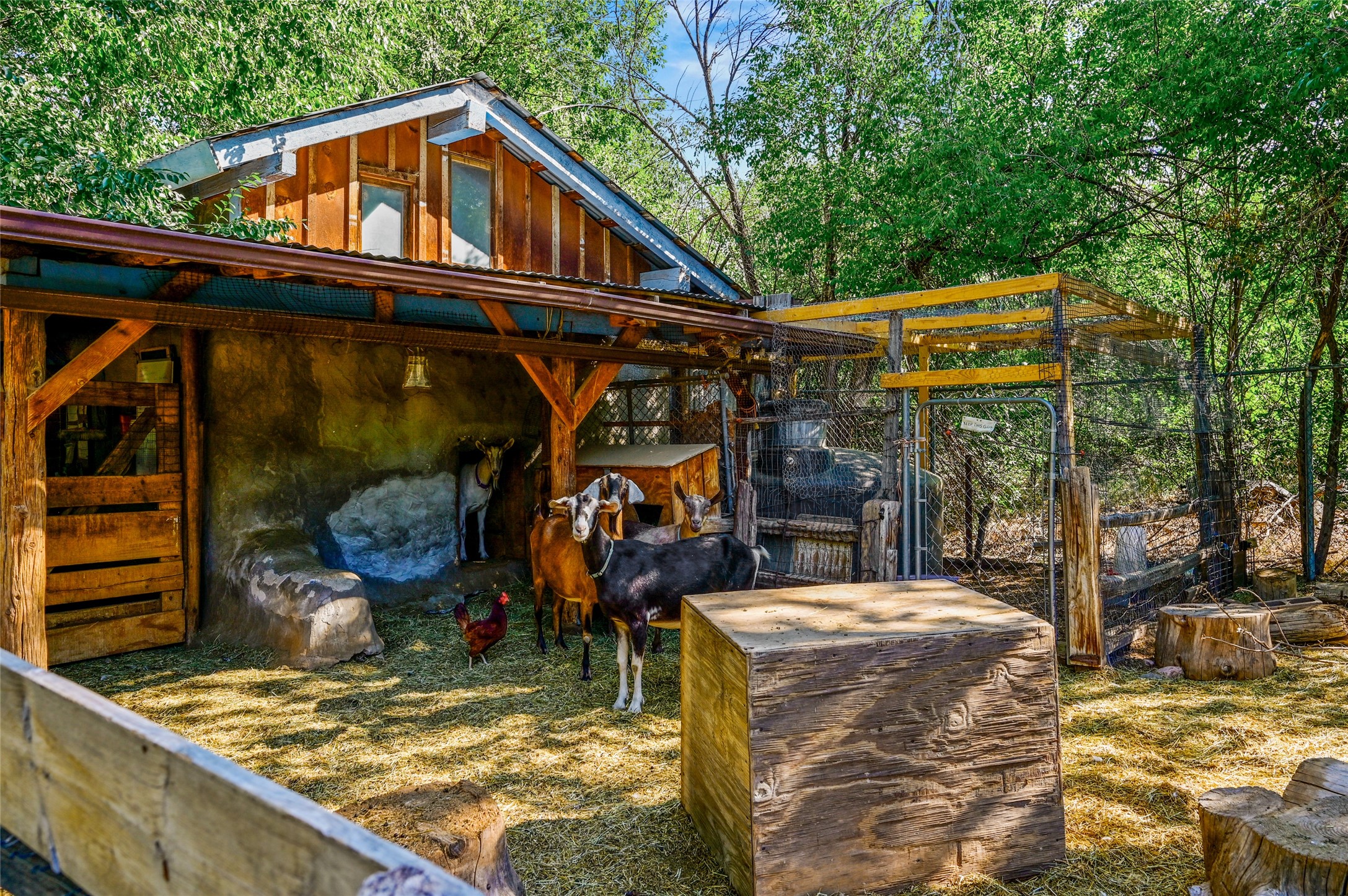 Nestled in the serene Tres Placitas del Rio Co-housing, an intimate enclave of only 11 homes on 2.5 acres. This 3 bedroom, 3 bath residence offers a rare blend of ecological living and artistic inspiration. Set along the Western banks of the Santa Fe River, this unique community is designed for those who cherish nature, creativity and connection.The home itself provides comfortable light filled spaces with a warm, inviting character. Ideal for families, gardeners or artists seeking both privacy and a sense of belonging. Solar panels on the roof provide energy efficiency, while a spacious basement awaits your creativity, perfect for a studio, workshop or additional living space. Beyond the private residence, residents share access to beautifully landscaped common areas featuring terraces, walking paths, an outdoor dining pavilion, an organic garden, fruit trees and a charming barn with goats and chickens.More than a home, this is a sustainable sanctuary where community and nature harmonize. Just minutes from all the cultural and culinary delights of downtown Santa Fe.