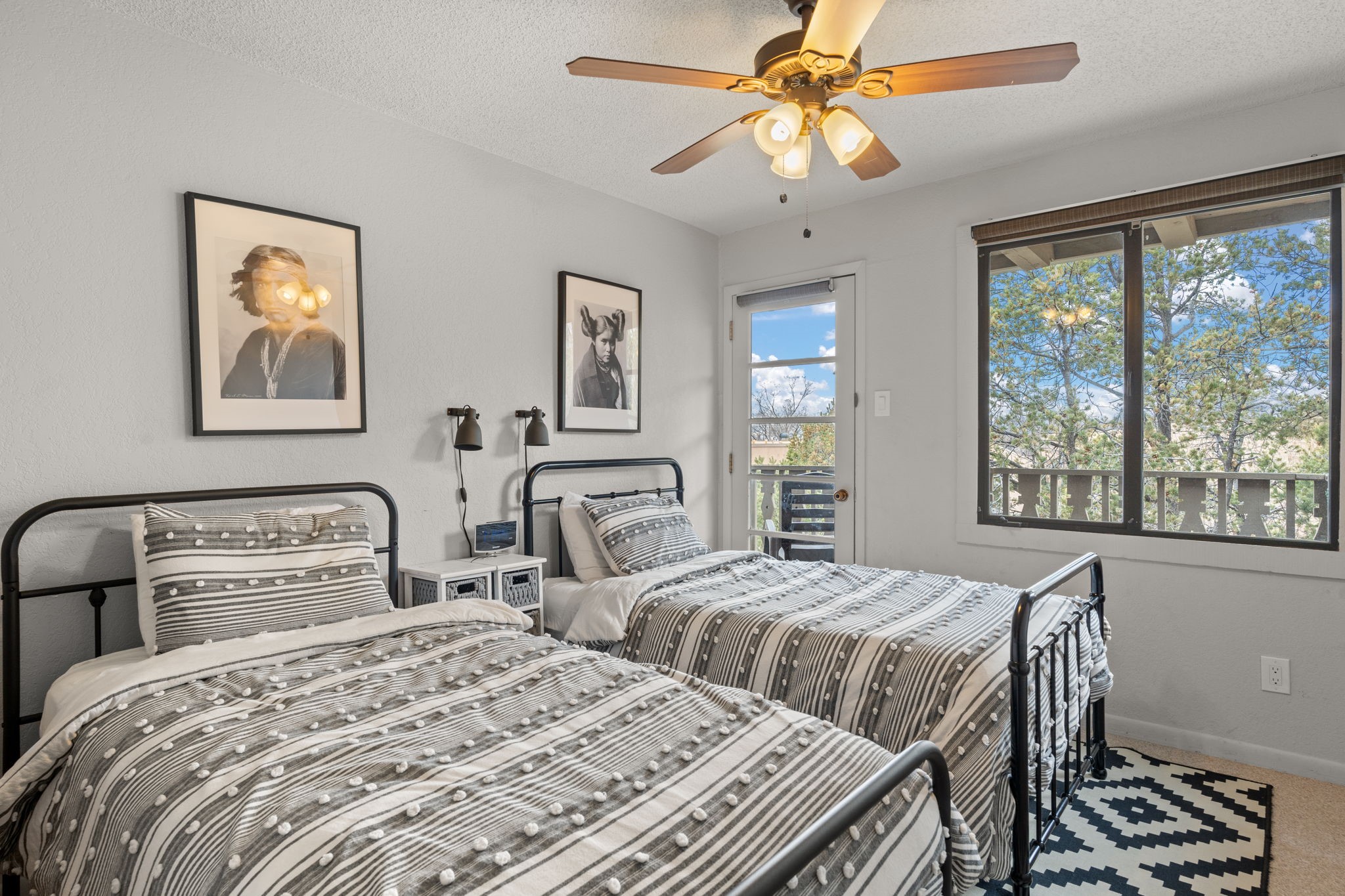 Just minutes from the Historic Santa Fe Plaza, this beautifully maintained 2-bedroom, 2-bath Fort Marcy condo offers the perfect blend of comfort, convenience, and investment potential. The residence features a contemporary feel with an updated kitchen and bathrooms, abundant natural light from extra windows, and wonderful views of the grassy gazebo in a forest-like setting where deer are often seen.Access is simple, with parking close by and just a couple steps to the front door. A cozy kiva fireplace adds authentic Santa Fe charm.This turn-key property is being sold fully furnished--including appliances, housewares, electronics, linens, and dcor--making it move-in ready for a full-time residence, part-time retreat, or short-term rental. The condo is already enrolled in a nightly rental program, and the existing VRBO and Airbnb listings can transfer to the buyer if desired, making it an effortless investment opportunity.Recent community updates include a brand-new 20-year roof, adding confidence for years to come. Fort Marcy amenities include an indoor pool, hot tub, clubhouse, landscaped grounds, and on-site management. HOA dues cover exterior building and roof maintenance, water/sewer/refuse, cable, internet, snow removal, and groundskeeping.This property checks all the boxes: location, views, convenience, updates, and income potential. Don't miss this exceptional opportunity to own one of the best units at Fort Marcy!