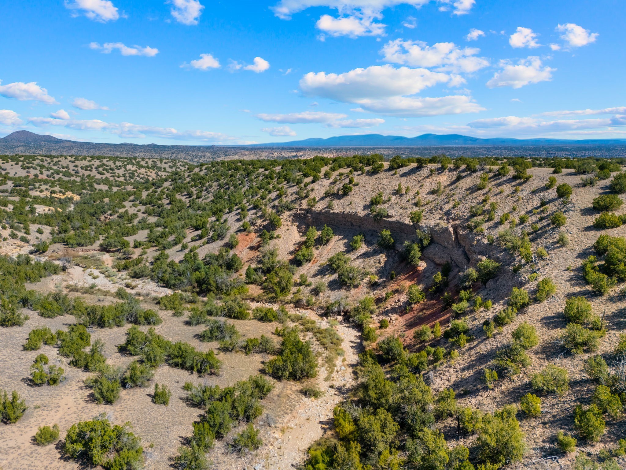 82.7 stunning acres offer unmatched quiet and privacy at the north end of the gorgeous Grenfell Ranch. The lot is comprised of pristine grassland and gentle hills, atop the mesa for stunning 360-degree views of the Cerrillos Hills, Ortiz and Jemez mountains and surrounding valleys. Additionally, the parcel includes the gorgeous west canyon, offering serene hiking and horseback riding along the arroyo. Legal easement access from Rancho De Shama Road runs to the south end of the parcel and potential build site.