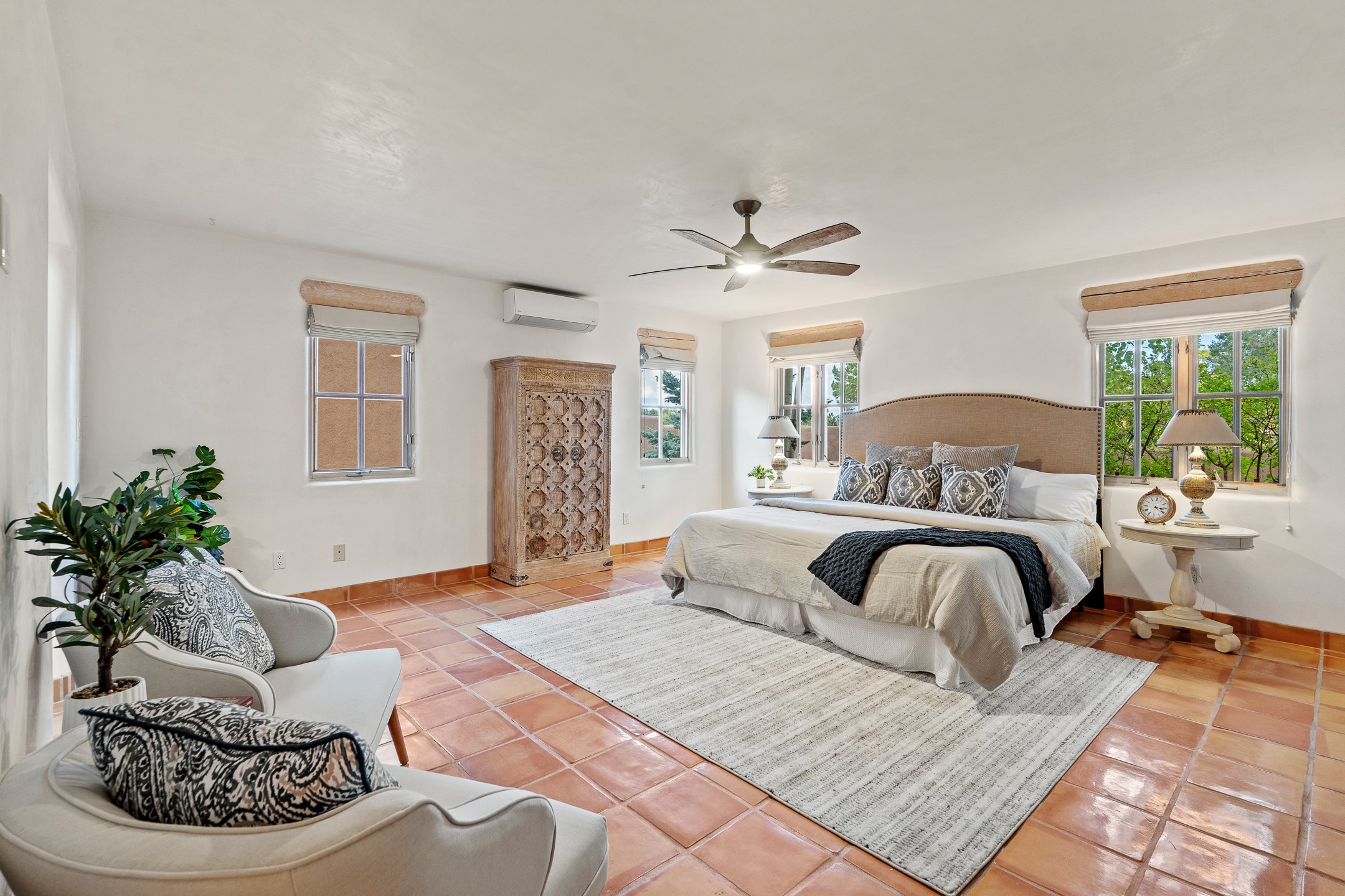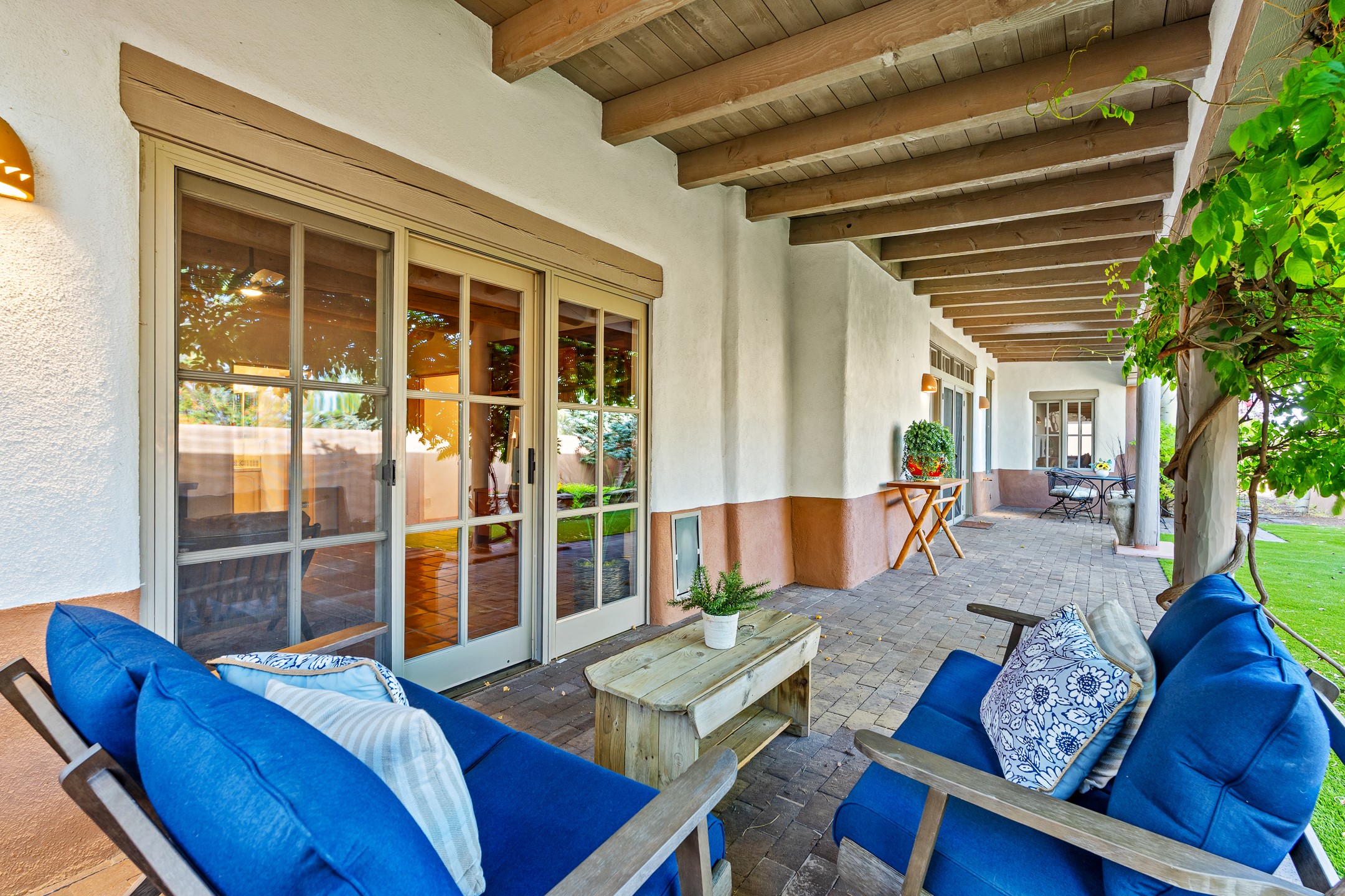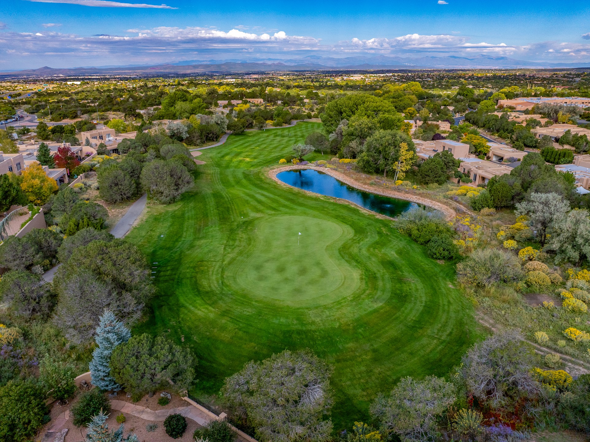 This beautifully updated Pion floor plan condo located in Pion Ridge at Quail Run offers exceptional comfort, design, and access to resort-style amenities. The home features two full primary suites on the main level, plus a third bedroom or office, with a fourth bedroom upstairs--perfect for guests or a second workspace. Nearly all daily living can be enjoyed on the main floor. The renovated kitchen showcases custom cabinetry, a new center island, Neolith countertops, and premium Sub-Zero and Wolf appliances. Bathrooms have been tastefully updated, including a luxurious primary bath with a rain shower and hand-held sprays. Both primary closets include custom built-ins and generous storage. Additional highlights include diamond plaster walls, enhanced art lighting, ductless A/C, and refreshed landscaping. Residents enjoy exclusive access to Quail Run's resort-style amenities, including a clubhouse with dining, fitness center, golf course, tennis courts, swimming pool, and 24-hour security. The HOA covers exterior maintenance, roof, and more, offering peace of mind and effortless living. Situated on a quiet cul-de-sac, this move-in-ready home embodies the best of Santa Fe comfort and style. Imagine the Possibilities and schedule the showing today!