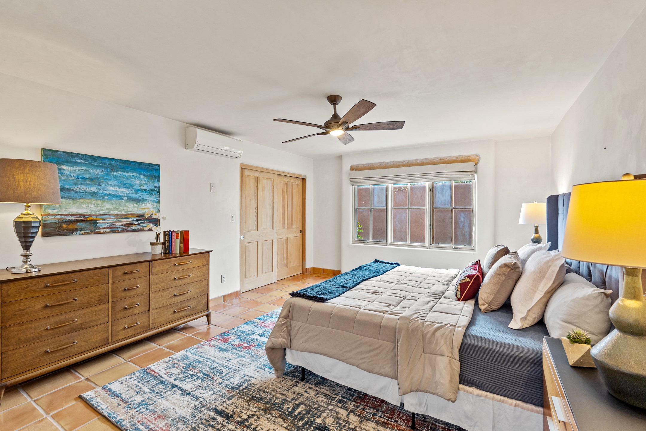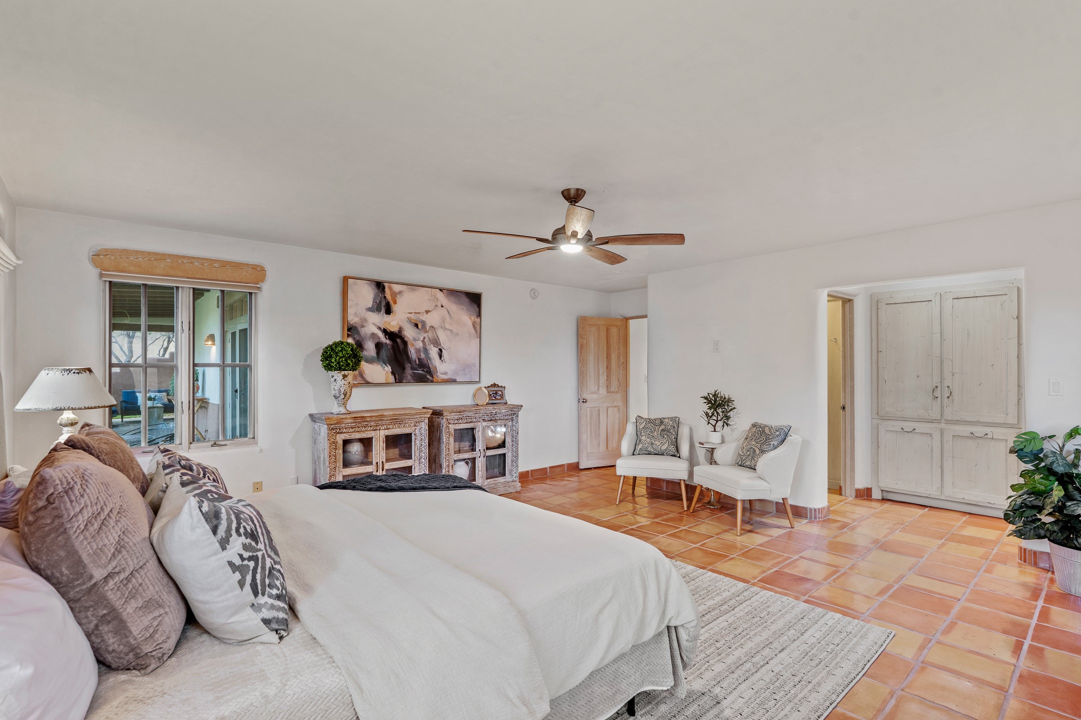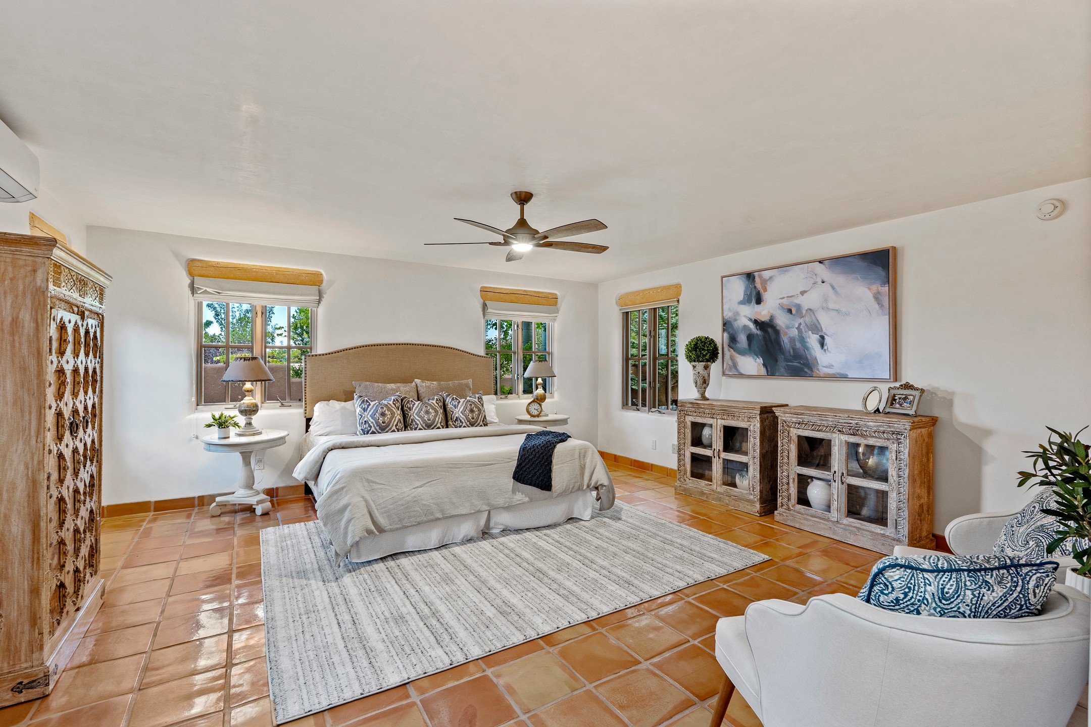 This beautifully updated Pion floor plan condo located in Pion Ridge at Quail Run offers exceptional comfort, design, and access to resort-style amenities. The home features two full primary suites on the main level, plus a third bedroom or office, with a fourth bedroom upstairs--perfect for guests or a second workspace. Nearly all daily living can be enjoyed on the main floor. The renovated kitchen showcases custom cabinetry, a new center island, Neolith countertops, and premium Sub-Zero and Wolf appliances. Bathrooms have been tastefully updated, including a luxurious primary bath with a rain shower and hand-held sprays. Both primary closets include custom built-ins and generous storage. Additional highlights include diamond plaster walls, enhanced art lighting, ductless A/C, and refreshed landscaping. Residents enjoy exclusive access to Quail Run's resort-style amenities, including a clubhouse with dining, fitness center, golf course, tennis courts, swimming pool, and 24-hour security. The HOA covers exterior maintenance, roof, and more, offering peace of mind and effortless living. Situated on a quiet cul-de-sac, this move-in-ready home embodies the best of Santa Fe comfort and style. Imagine the Possibilities and schedule the showing today!