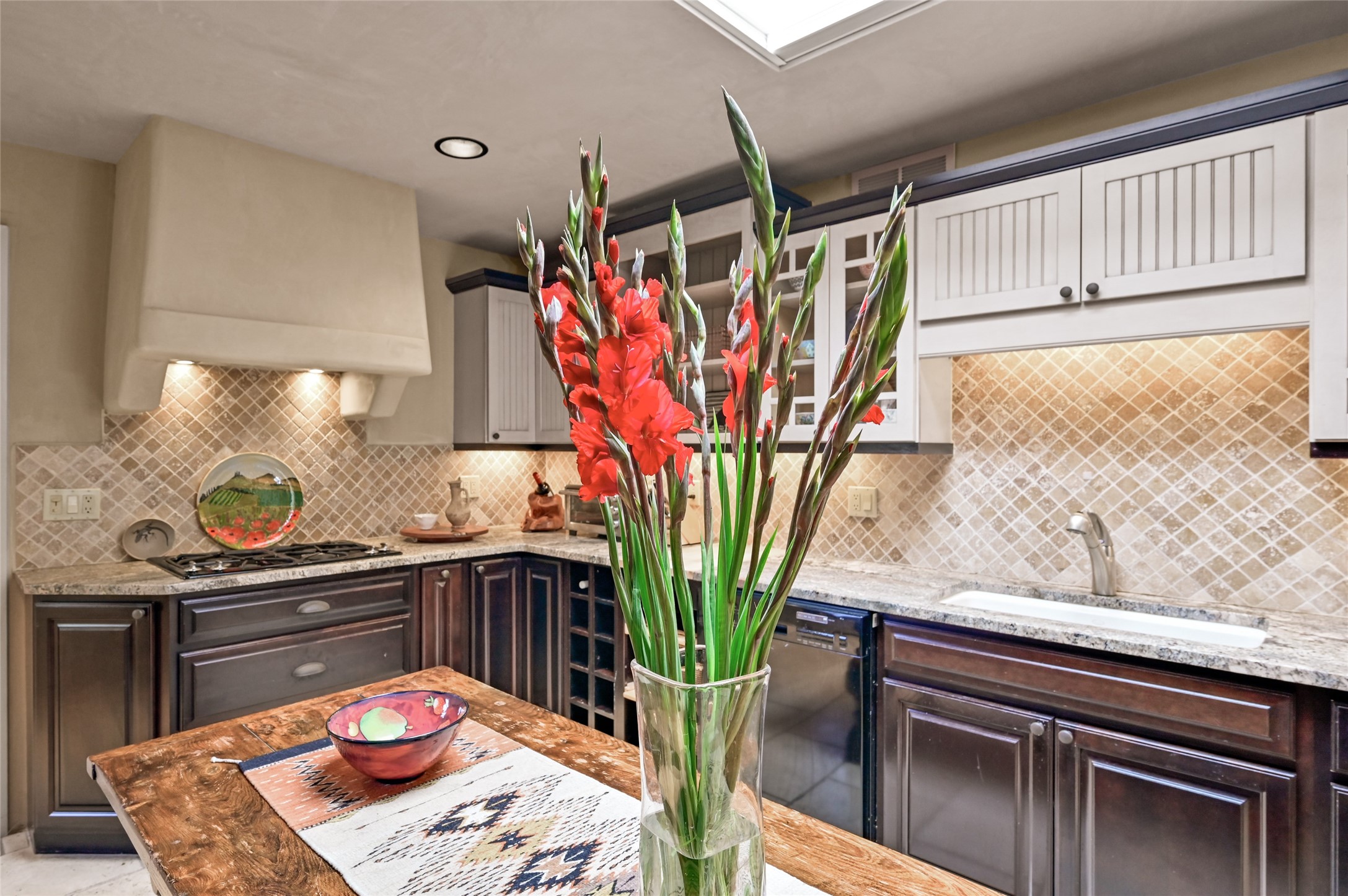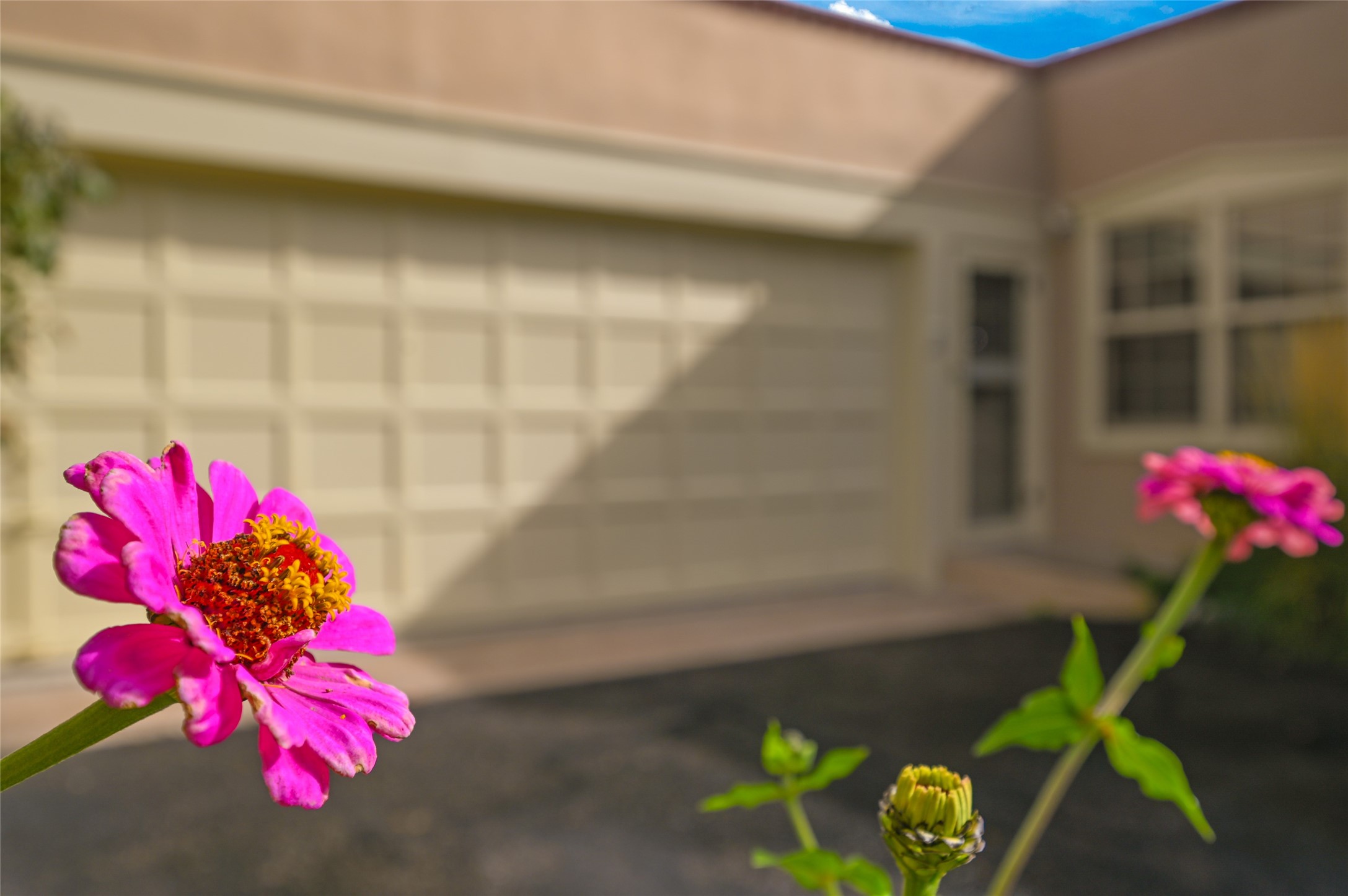 In the heart of Santa Fe, where art, culture, and cuisine intertwine, lies a hidden gem within the exclusive gates of The Compound Condos. Sheltered by graceful old trees and surrounded by lush, mature gardens, this residence offers a quiet escape moments from Canyon Road and the pulse of downtown. A private courtyard welcomes you inside, where sunlight pours through large windows and sliding doors, illuminating a warm living space anchored by a classic fireplace. Here, mornings begin with the scent of brewed coffee and evenings drift easily into fireside conversations. The open country kitchen, complete with generous counter space, vigas, and skylights, feels like the heart of the home. The primary suite, which captures the soft glow of the eastern light includes a kiva fireplace, a spacious dressing area, laundry, and full bath. A comfortable guest suite with walk-in closet and 3/4 bath ensures everyone feels at home. A heated two-car garage with an extra storage room adds practicality to this serene and private haven. A rare offering, where every detail reflects the timeless charm and understated feel of Santa Fe living.