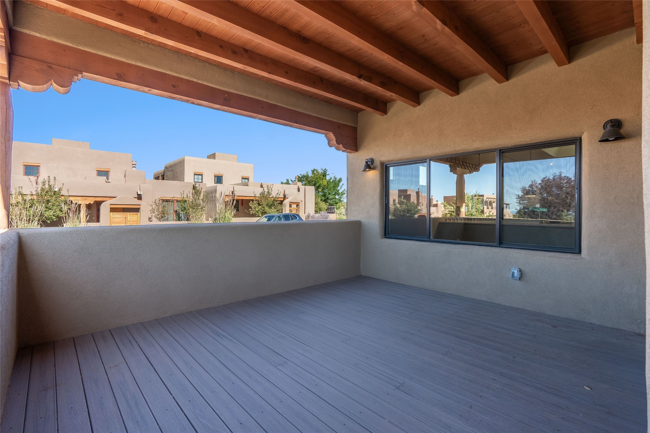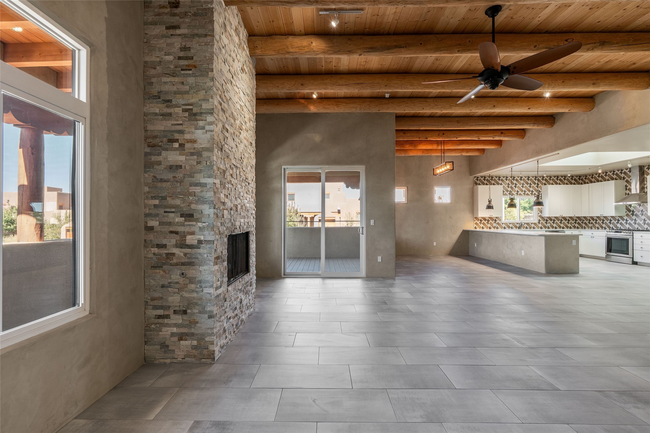 Sophistication meets Santa Fe charm at 32 Calle Lemita, an elegant residence in the coveted Aldea de Santa Fe community. This 3-bed, 3-bath home offers refined living on a 0.16-acre lot with stunning natural light and partial sunset views. The open, airy floor plan highlights soaring ceilings, rich finishes, and seamless flow between living, dining, and kitchen--perfect for stylish entertaining. The expansive living room offers a stacked stone fireplace, high ceilings and traditional Vigas. Plaster walls throughout the main living area. The chef's kitchen boasts premium cabinetry with soft close drawers, generous counter space with quartz countertops, designer tile backsplash and high-end stainless steel appliances. Massive pantry/storage room off the kitchen. The luxurious primary suite offers a spa-inspired bath, one of the most custom walk-in closets you will ever view, plus separate shower and jacuzzi tub. Two additional oversized bedrooms provide versatility for guests or a home office. Laundry room with sink and built-in cabinetry. Whole house radiant cooling/heating system. Adjacent to the heated/cooled 4 car garage is a flex room, perfect for a home gym or studio space. Outdoor living shines with a private enclosed courtyard and elevated patio designed to capture Santa Fe's dramatic sunsets. Lots of wonderful upgrades, such as LED recessed lights, floor to ceiling tile in multiple bathrooms, carved stone sinks and much more. Located approximately 20 minutes from the historic Santa Fe plaza, Aldea de Santa Fe offers exclusive amenities including walking trails, pickleball/tennis/basketball, community gathering spaces, and easy access to fine dining, galleries, and world-class cultural events. This property is ideal as a sophisticated full-time residence or lock-and-leave retreat for discerning buyers seeking style, privacy, and connection to Santa Fe's vibrant lifestyle.