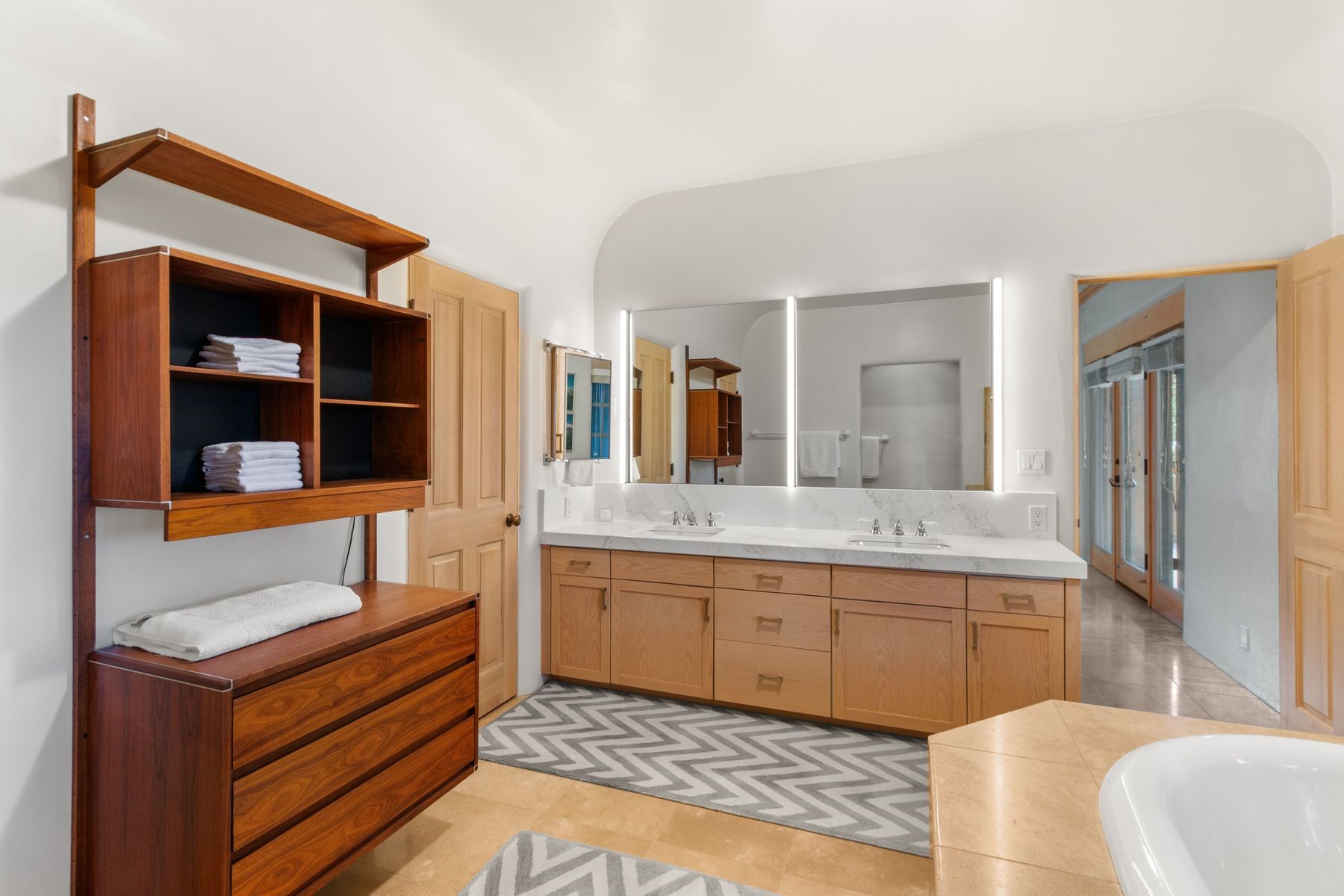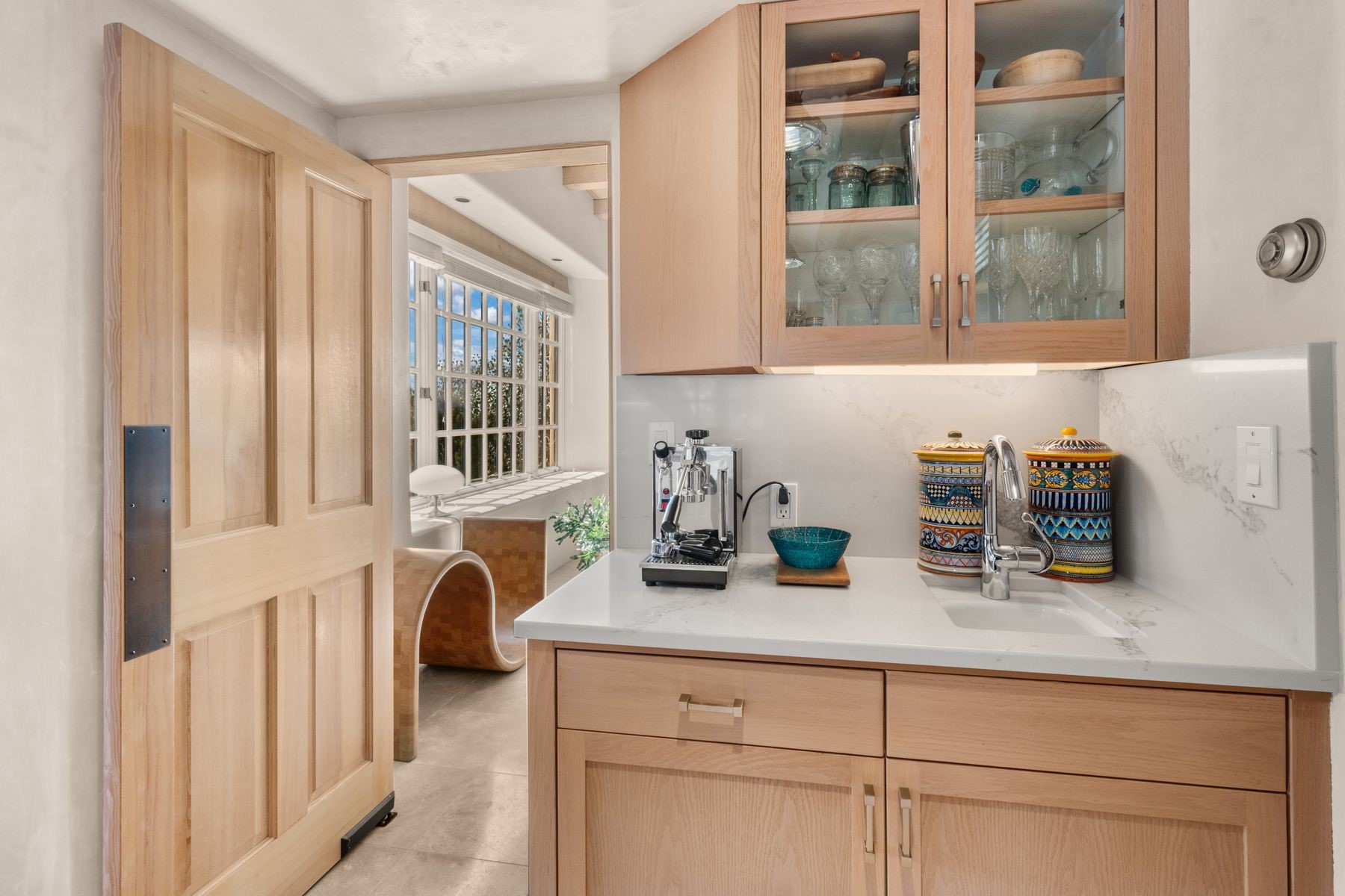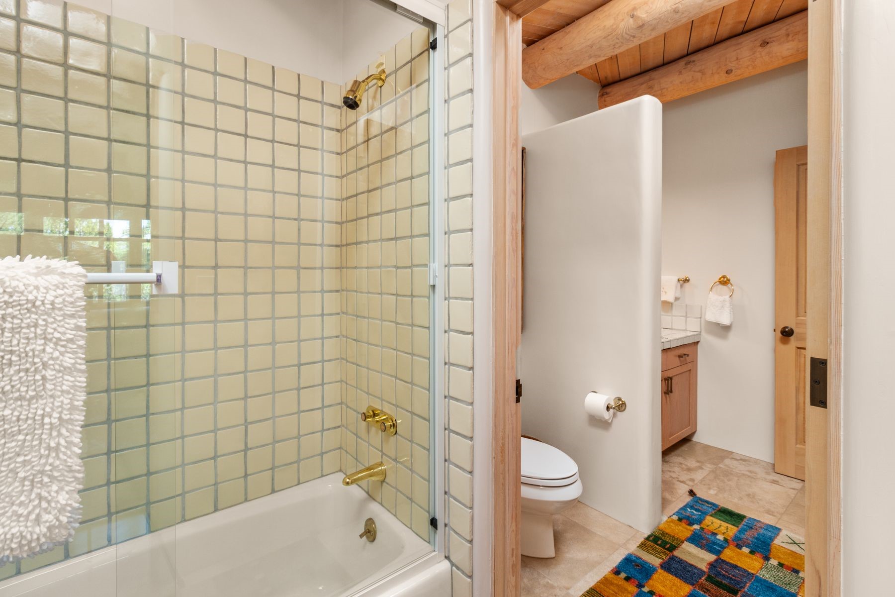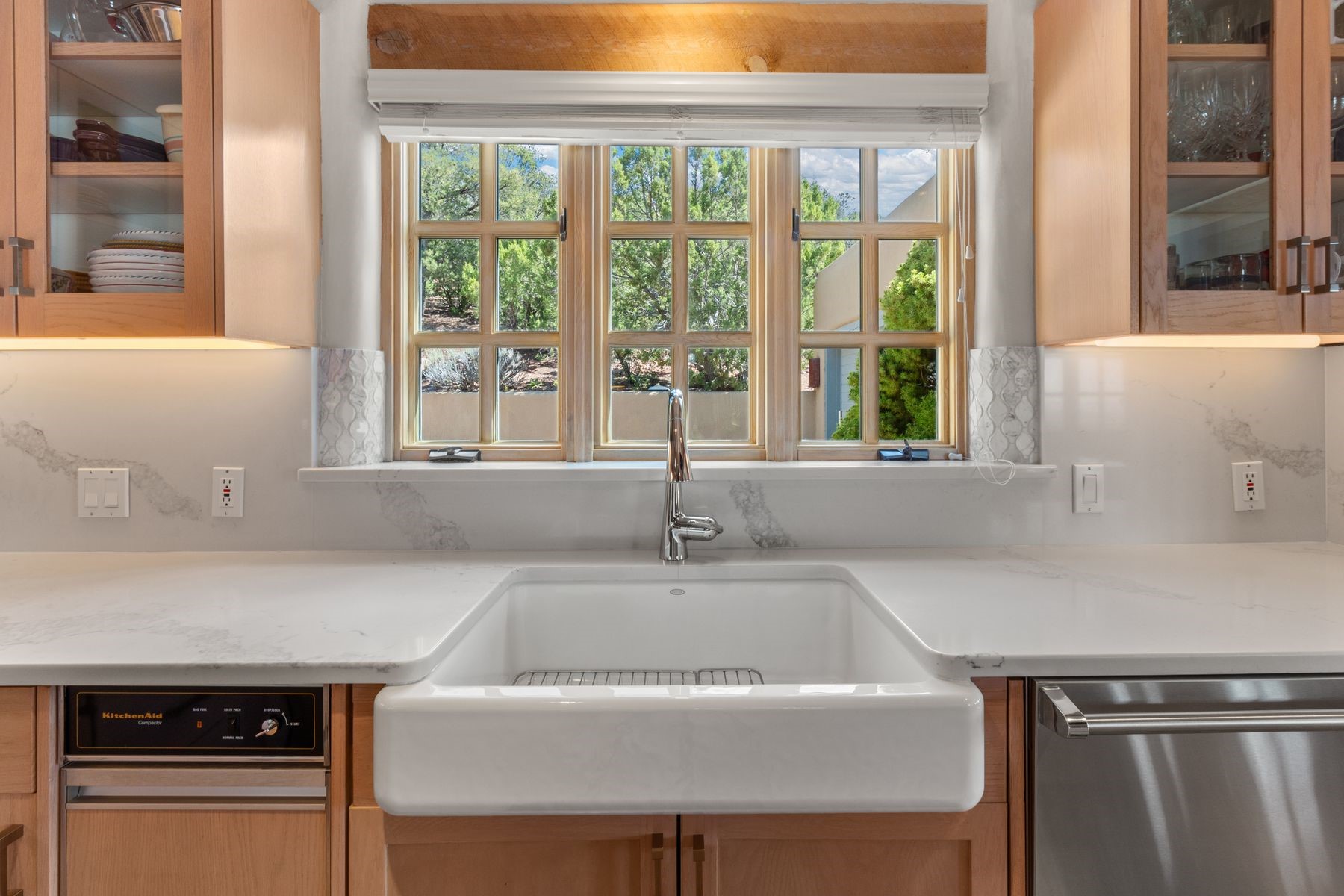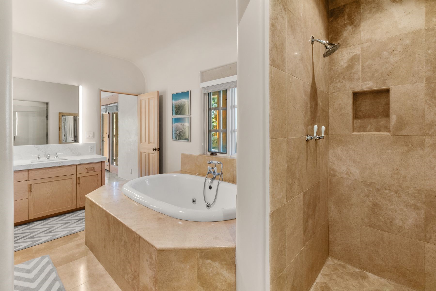 Nestled in a private gated neighborhood just five minutes from Canyon Road, this stunning 3-bedroom, 3-bath residence captures the essence of Santa Fe living with breathtaking views and refined details throughout.Arrive via a paver-lined driveway leading to a spacious two-car garage and be welcomed into a home built for both comfort and sophistication. Inside, French limestone imported from Forte dei Marmi flows seamlessly throughout, complemented by exquisite diamond finished plaster walls that add depth, texture, and timeless elegance. The expansive floor plan opens to over 800 square feet of covered portals, perfect for entertaining or savoring quiet evenings while soaking in the dramatic vistas.The gourmet kitchen is appointed with high-end finishes and appliances, designed to satisfy both everyday living and special occasions. Each bedroom offers privacy and comfort, complemented by spa-like baths.With its combination of architectural elegance, premium materials, and proximity to Santa Fe's vibrant art and dining scene, this home offers a rare opportunity to enjoy luxury and convenience in one of the city's most sought-after locations.