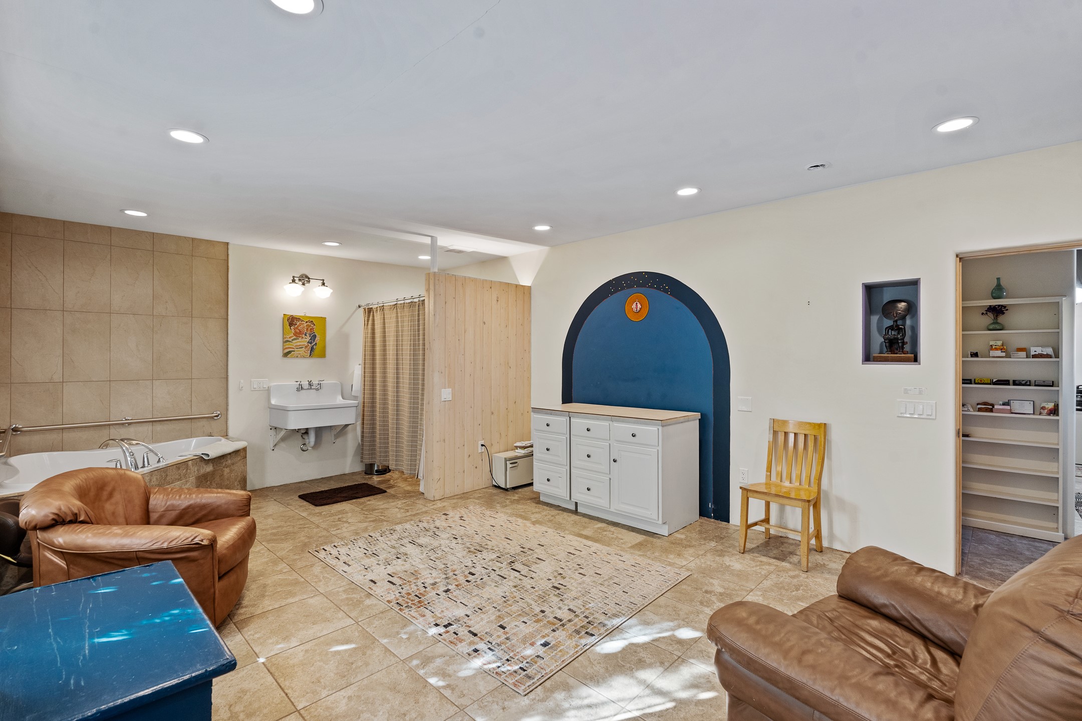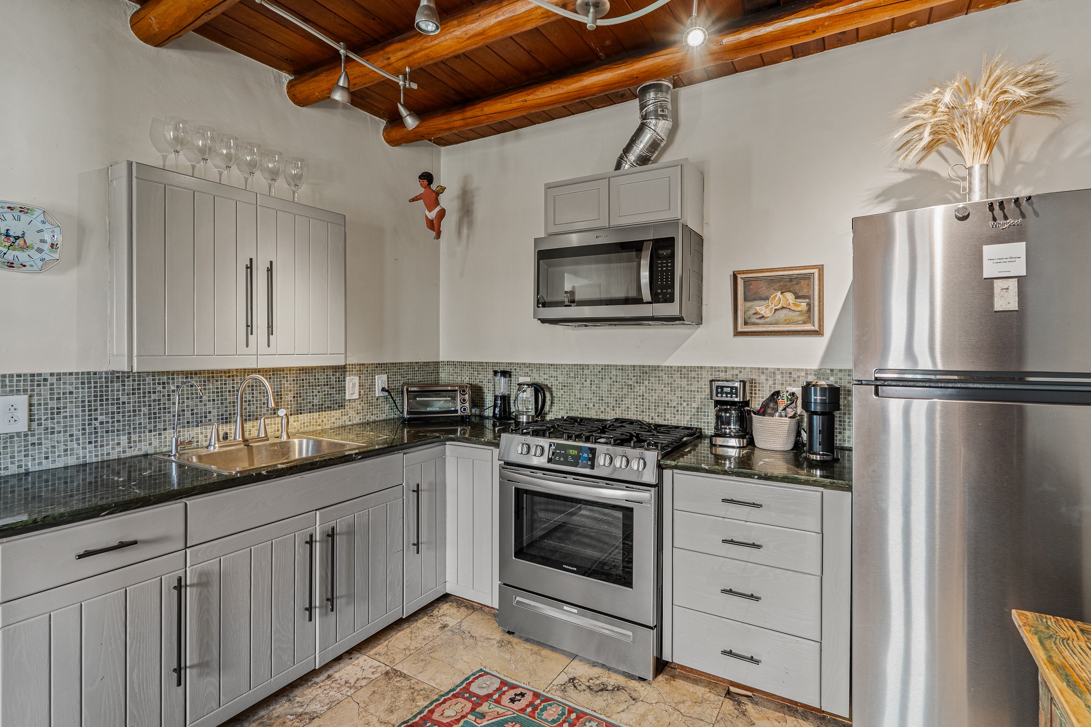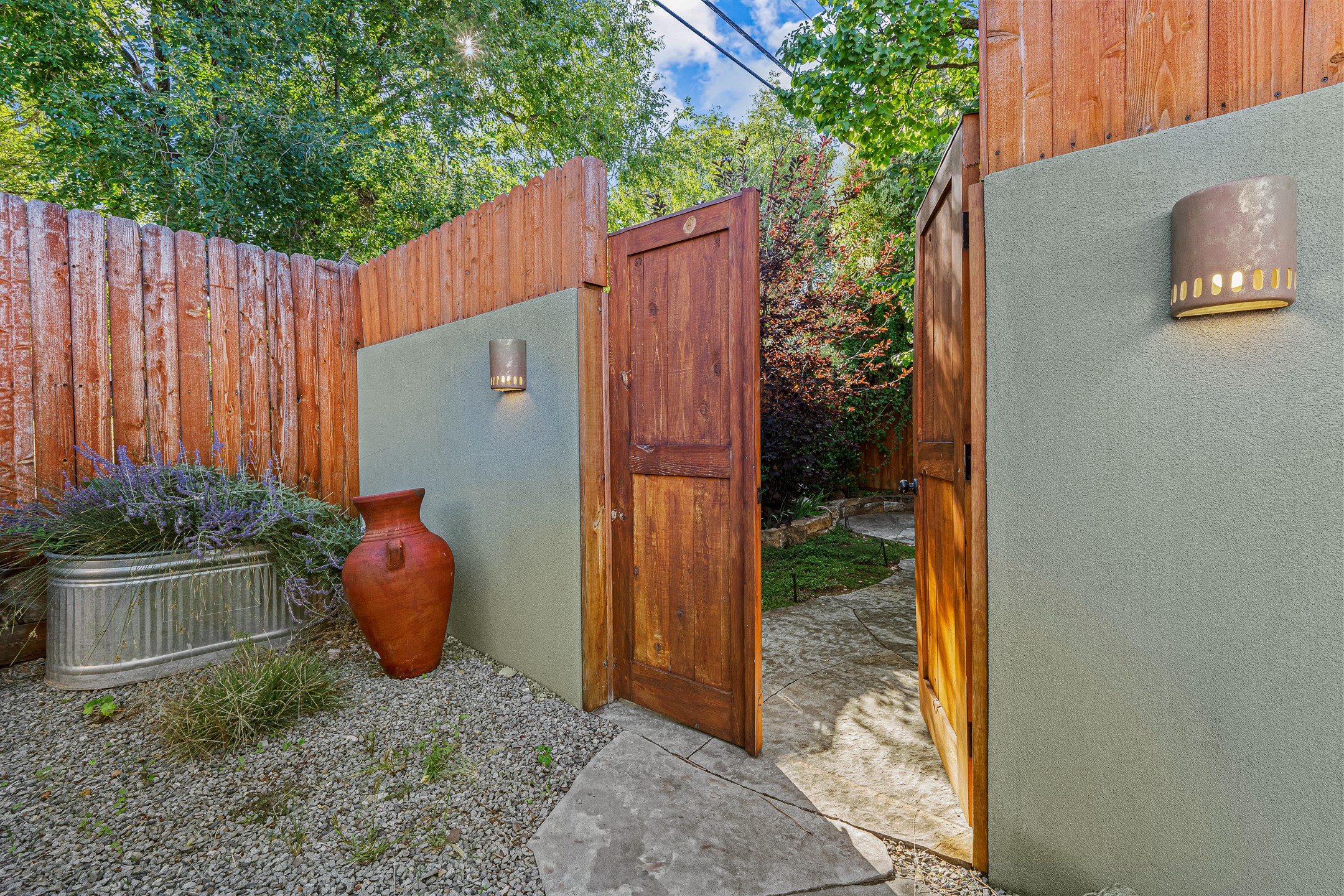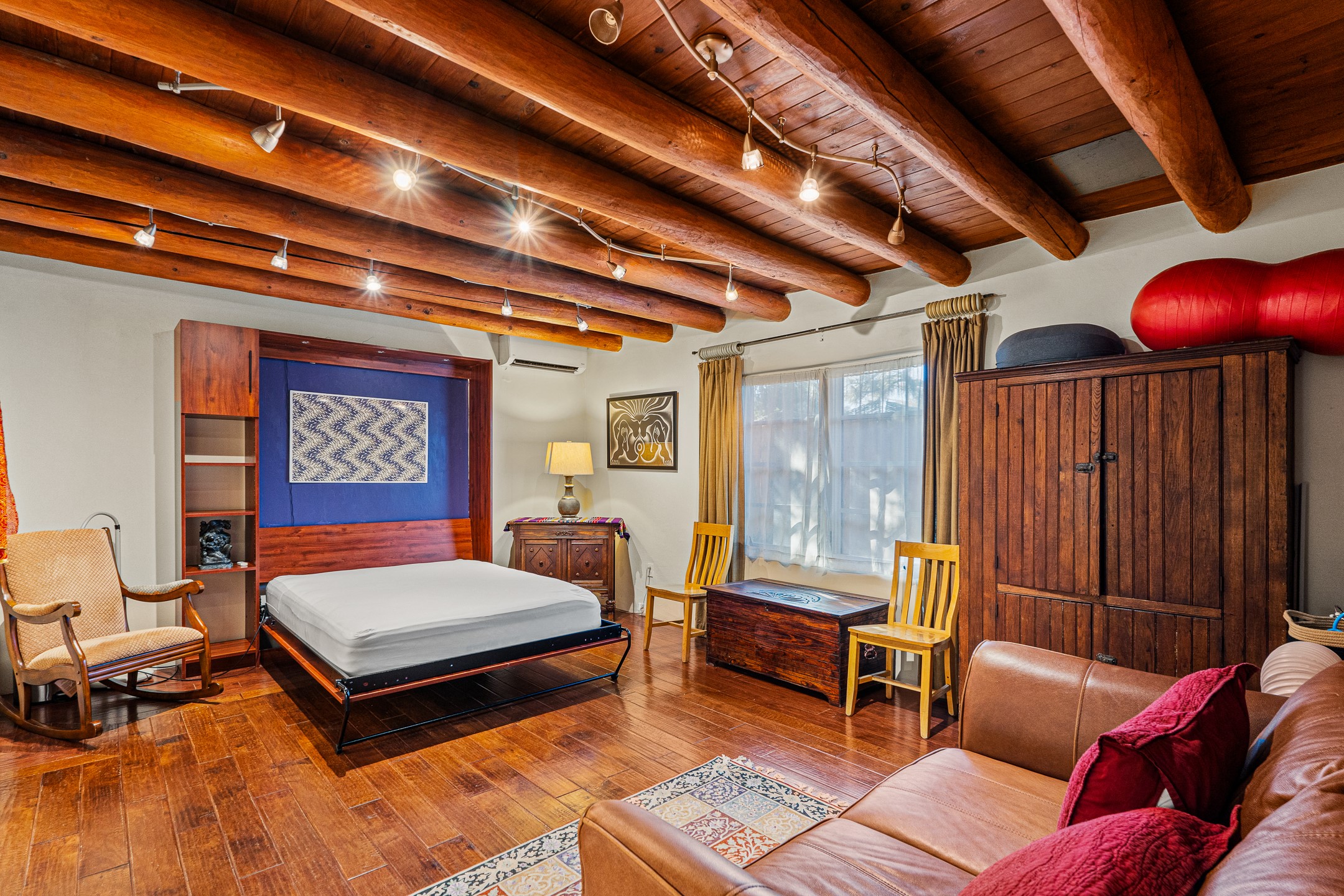 Beautifully renovated commercial property featuring sustainable, green design elements in the bustling S. St. Francis corridor, designed by Scott Irving. Step into a welcoming reception and waiting area with hardwood floors and viga ceilings throughout. The front of the building includes three windowed offices and two restrooms, one of which is ADA accessible. The updated kitchen/breakroom features track lighting and modern appliances.Toward the back of the building, you'll find a private office with an en suite restroom and hardwood floors, along with a large office or conference room that opens to a private, fenced, landscaped courtyard shaded by mature trees. Additional features include washer/dryer connections, abundant storage, and on-site parking. This property is ideal for office users, medical professionals, and many other business types. Don't miss this opportunity!
