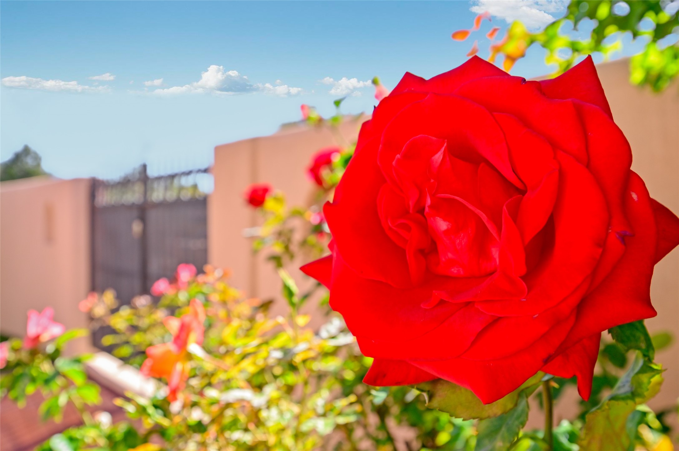 This house feels like a home. It's the real estate equivalent of comfort food! From the mid century modern details in the living/dining area to the updated kitchen to a lovely sunroom opening onto the large, private patio and rose garden, everything about this place is welcoming. The primary suite offers many options with a spacious bedroom, ensuite bath, huge walk-in closet and two adjoining rooms that can be configured to suit many needs -- home office, media room, workout space, nursery, play room, yoga shanti, you name it! Two additional bedrooms and another full bath, all with ample storage, complete the picture. On a corner lot in a true neighborhood where people watch out for one another, you will be minutes from grocery shopping, schools, restaurants, healthcare facilities with easy access to the Railrunner and I-25. Take advantage of the recent price reduction and start your new chapter in this versatile and meticulously maintained home.