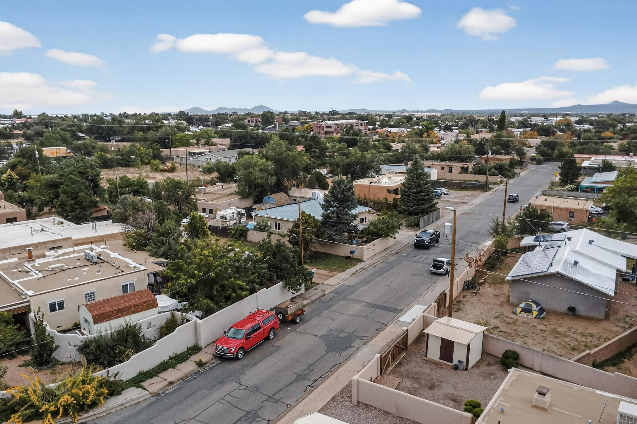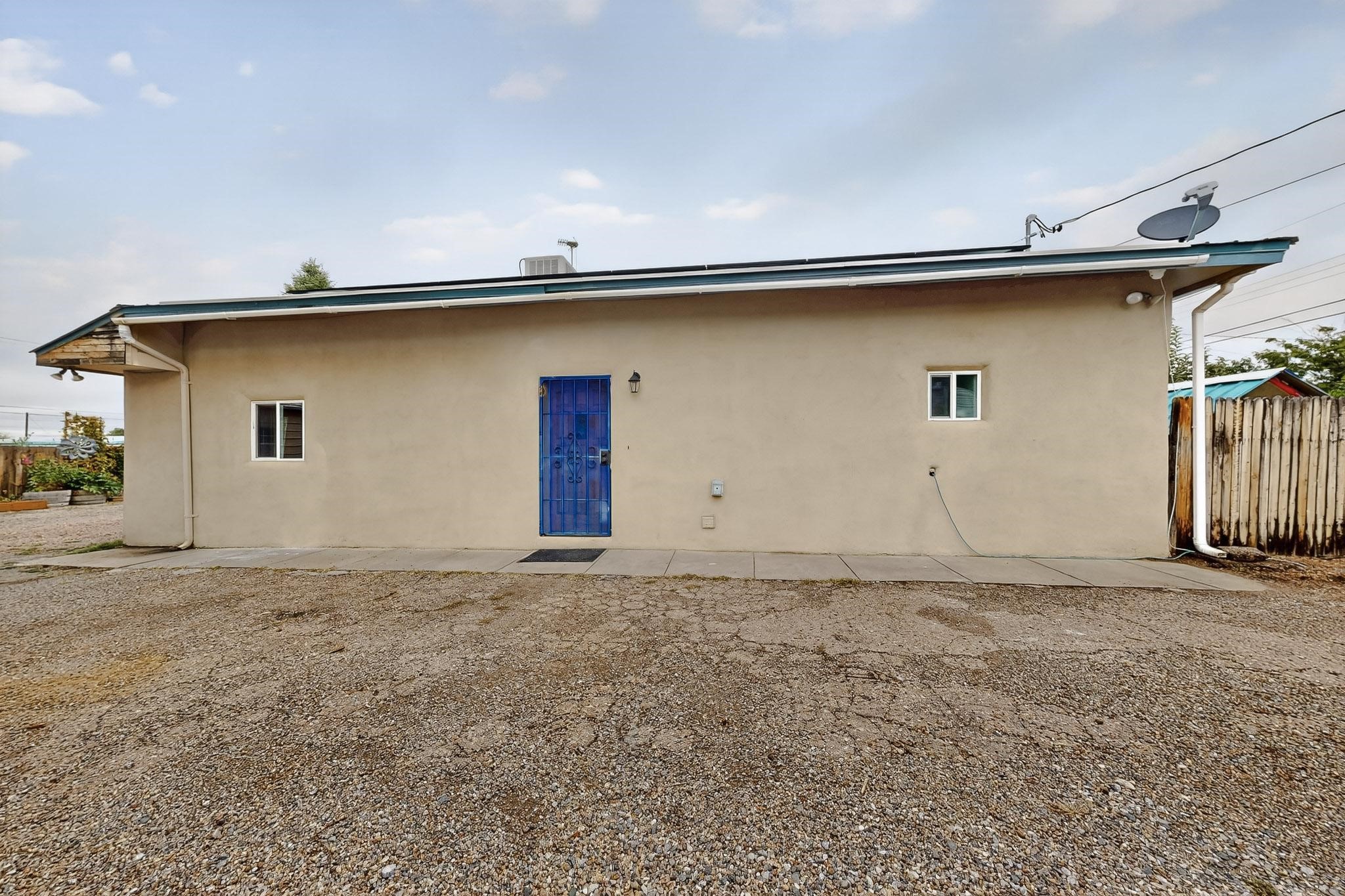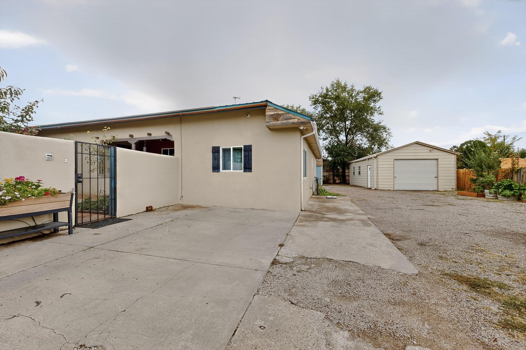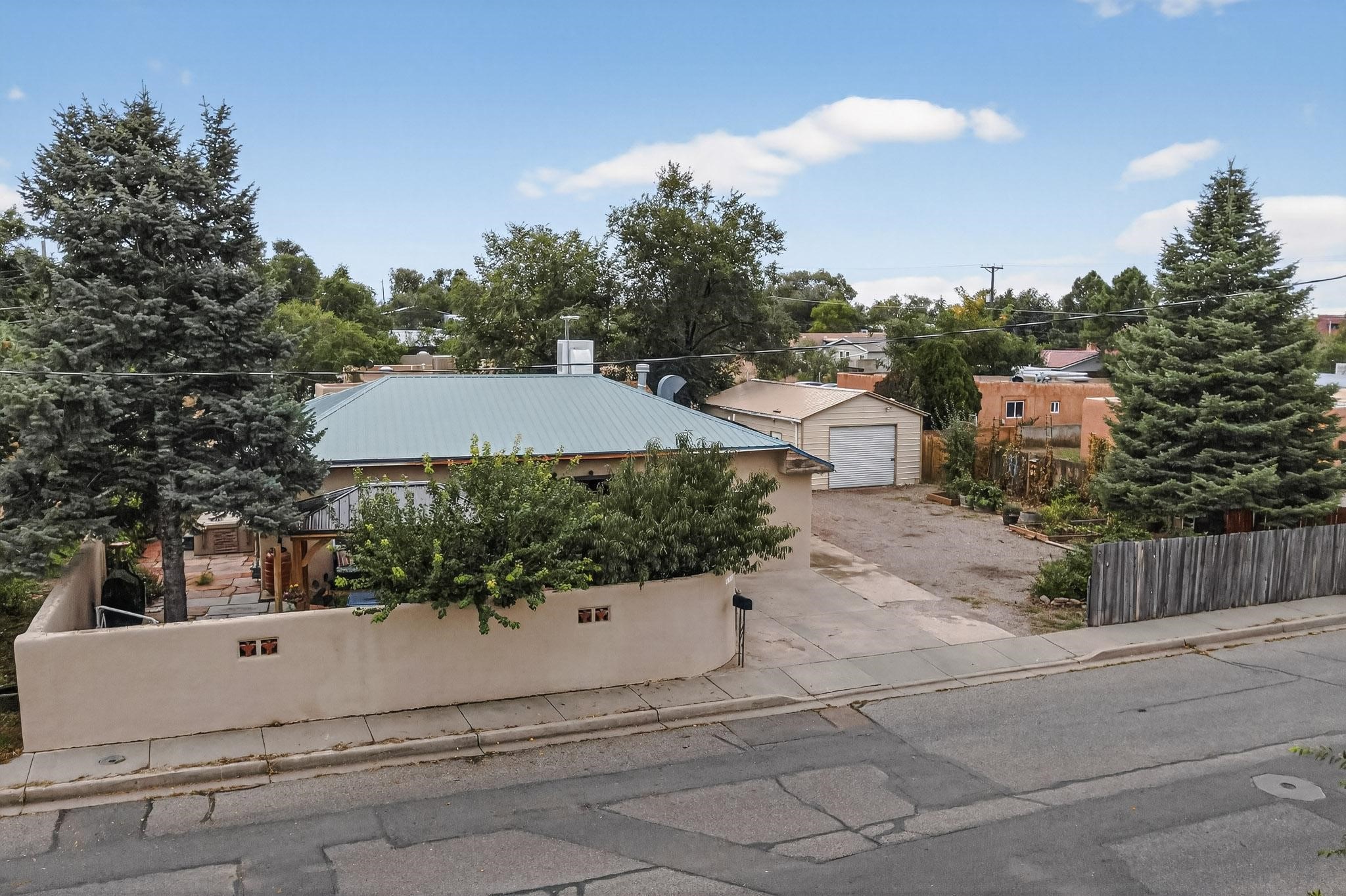 Enjoy country living in this well cared for .21 acre property in the heart of Santa Fe! The home's entry courtyard, with its new ramada, sets the tone for relaxed outdoor living. Inside, the adobe portion of the home, built in 1947, exudeswarmth and includes the spacious updated Kitchen, Living Room, Primary Bedroom; the newer stick-built wing features 2 substantial guest bedrooms, the primary bathroom and a remodeled bathroom. Interior improvements include newwindows, new paint, newer water heater, furnace and appliances. Owners have added a fabulous detached 18' X 30' garage, and will convey several sheds, a camping trailer, a green house and a hot tub, if wanted. Also included is fully paid for solar panels that were added in 2024. Lush and charming gardens with fruits, veggies and herbs plus mature trees on irrigation further enhance the property's appeal. A large basement is accessible from the side of the home for additional storage. Come see this sweet home at your first opportunity!