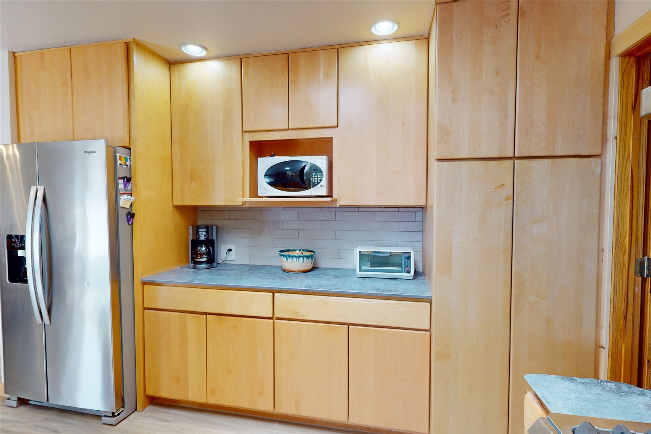 Beautifully Updated White Rock Home! This stylishly updated 3-bedroom, 2-bath home offers comfortable, modern living with a single-story, open floor plan that seamlessly connects the living, dining, and kitchen areas--perfect for both everyday living and entertaining. The kitchen shines with sleek cabinetry, contemporary countertops, stainless steel appliances, and a breakfast bar. The spacious living area features recessed lighting and wood-look floors, creating a warm, inviting atmosphere throughout. The kitchen and living areas flow seamlessly to the dining room with a large picture window that fills these areas with natural light and a patio door for access to the back yard. The private primary suite serves as a relaxing retreat, complete with plush carpet, and an updated en-suite bath. the primary suite has access to a private patio through through a patio door. Two additional bedrooms offer flexibility for guests, family, or a home office, while the second full bath continues the home's fresh, modern style. Additional highlights include a large laundry area with access to the attached heated two-car garage. Outdoors, enjoy the fully fenced backyard--perfect for gardening, play, or quiet relaxation--and the easy-care front landscaping that provides a welcoming first impression with the beautiful entry to the home. With its thoughtful updates, spacious layout, and desirable location, this home is the perfect opportunity to experience the best of White Rock living.