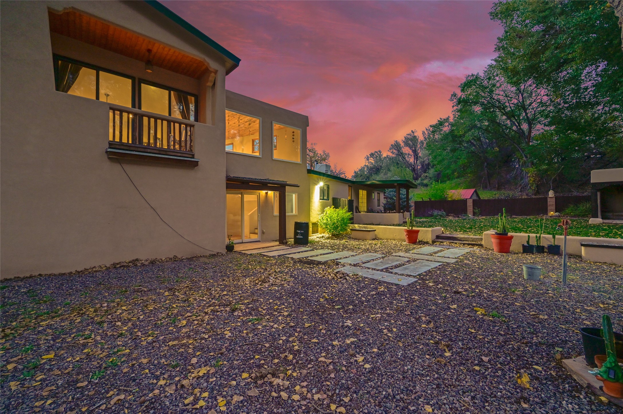 Welcome to this beautifully updated home nestled on just under an acre in serene La Mesilla. With 3,238 sq. ft. of inviting living space--including 3 bedrooms, 4 bathrooms, and 2 spacious living rooms--there's plenty of room for family and friends. The attached 800 sq. ft. studio offers a perfect private retreat for guests, work, or creativity.Originally a modular home on a permanent foundation, the lovely addition features a spacious upstairs master suite with a private balcony that overlooks the peaceful Bosque and stunning Black Mesa views.The thoughtfully converted garage studio, with warm hardwood floors and its own bathroom, adds even more comfort and flexibility.Enjoy the tranquility of a private well along with recent updates like all new stucco, a new septic system, roof, appliances, and water softener. This charming La Mesilla home is a perfect blend of comfort, style, and nature--ready to welcome you.