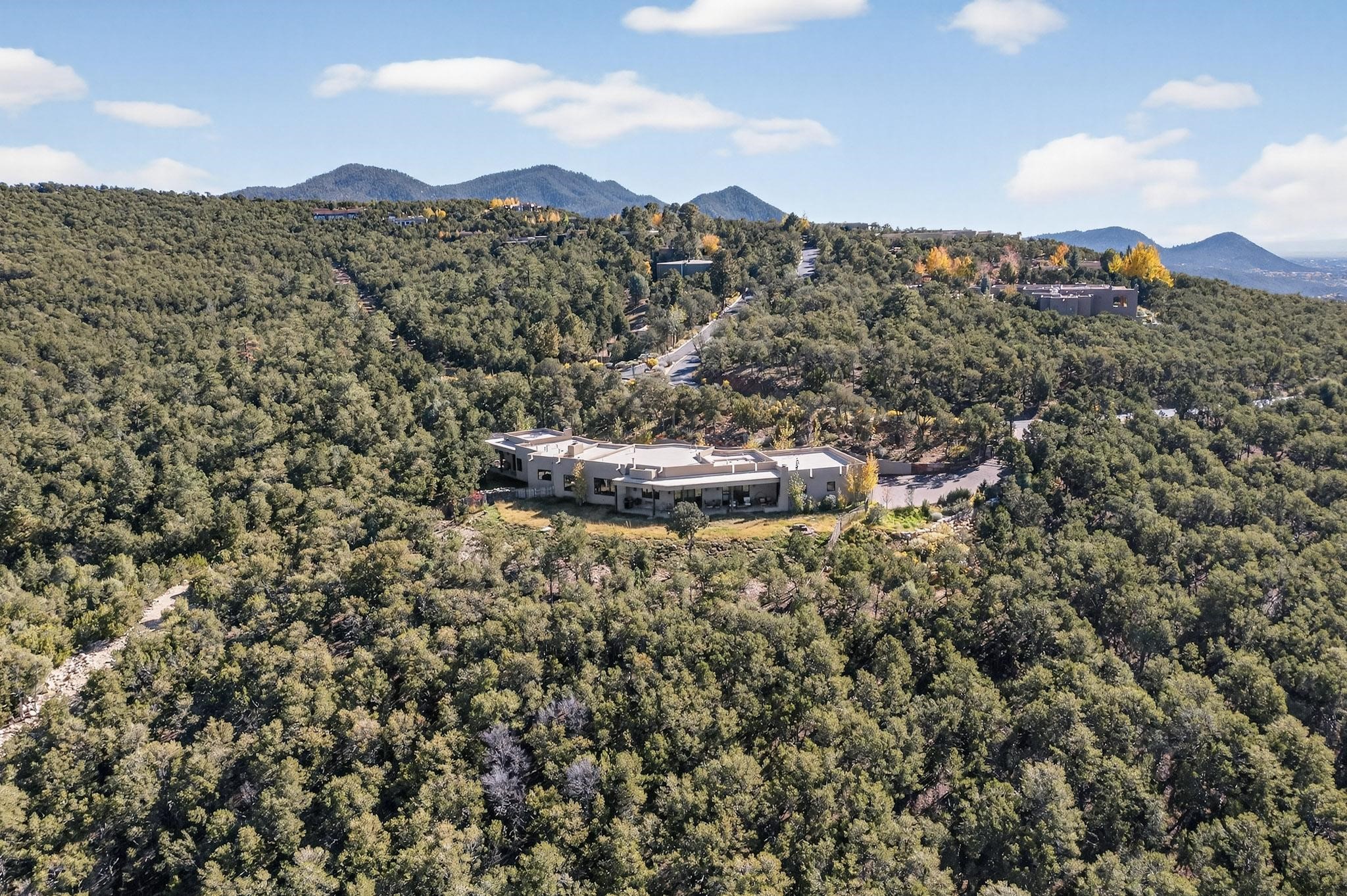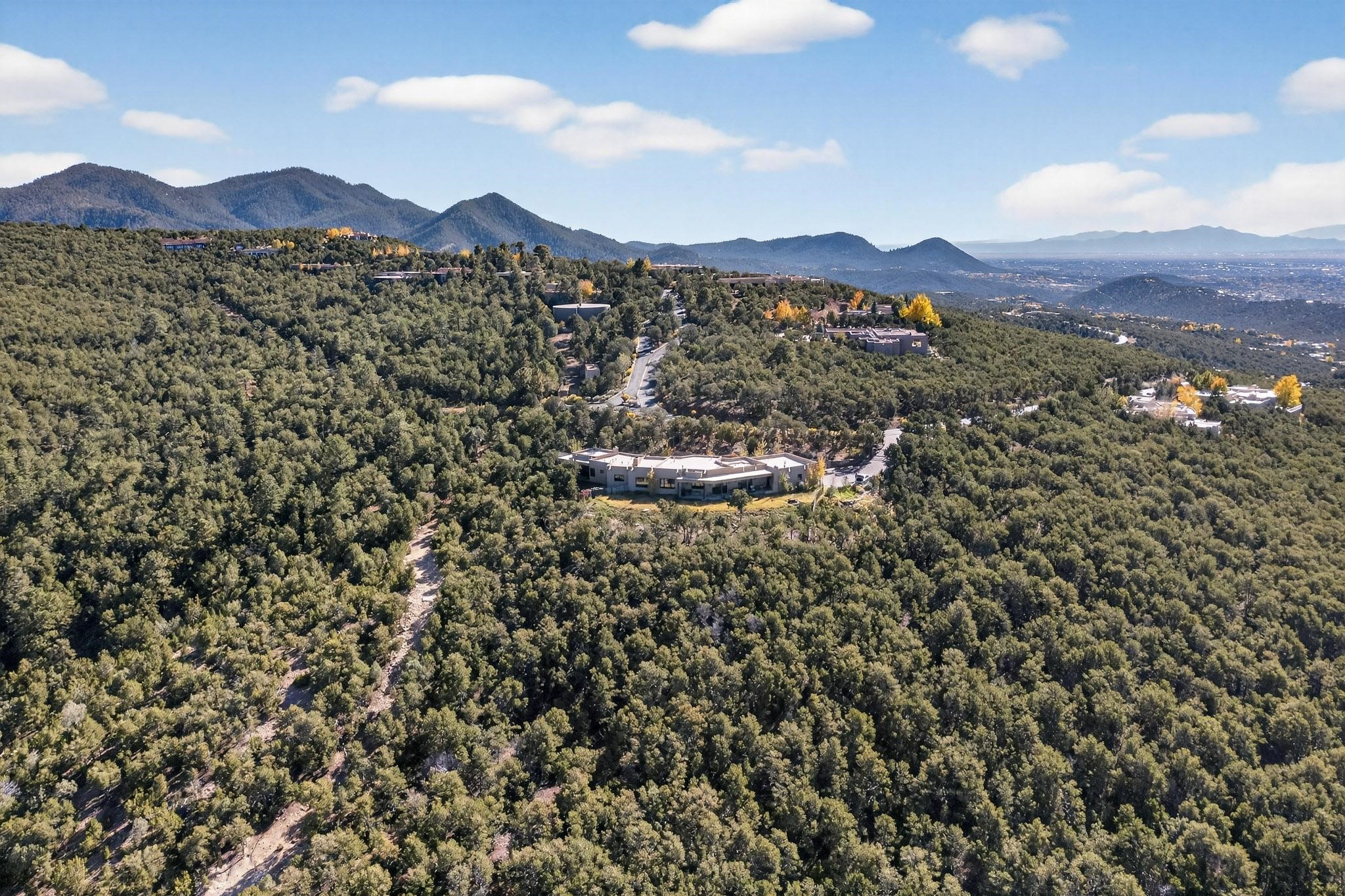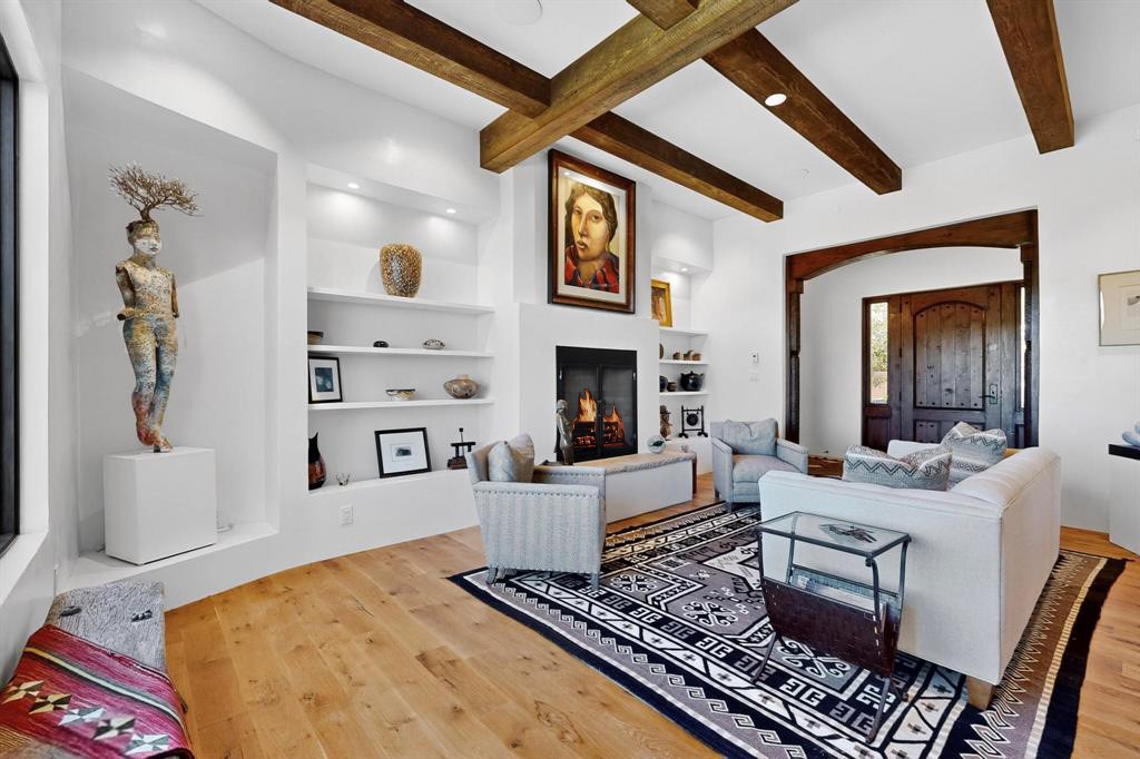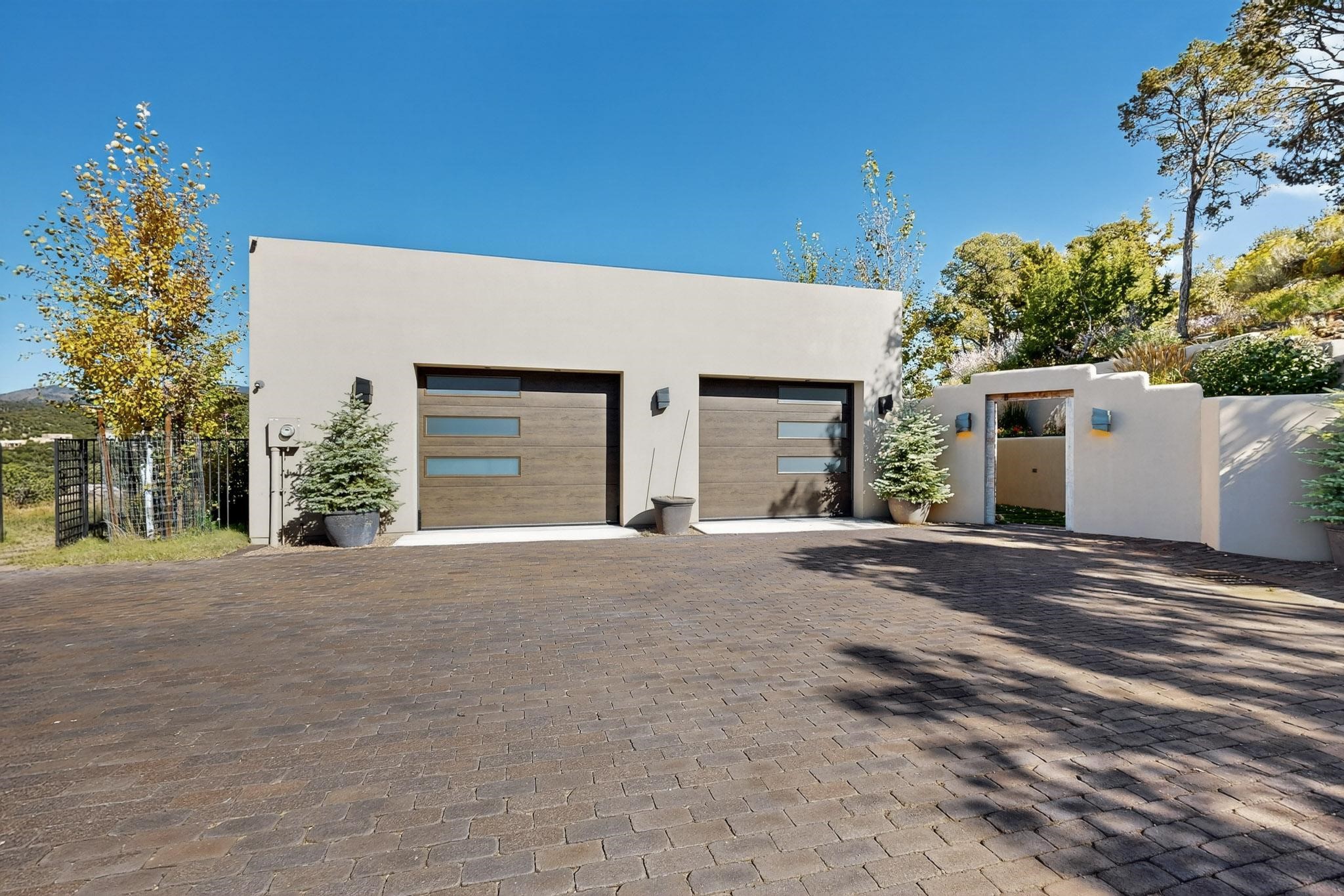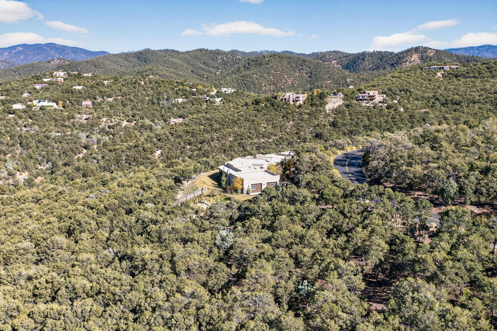 Stunning Santa Fe Contemporary Home in Prestigious High SummitExperience refined Santa Fe living in this recently completed custom home by acclaimed builder John Reeder Construction, located in the highly sought-after gated High Summit community off Hyde Park Road. This residence is approximately 3546 sq ft with 3 bedrooms and blends modern design with timeless southwest elements. The heart of this home is a true chef's kitchen, featuring exquisite custom cabinetry, a spacious center island with built-in service drawers, and seamless access to a climate-controlled wine room that accommodates hundreds of bottles- perfect for entertaining. The open-concept family room boasts a grand fireplace and opens onto a covered portal ideal for al fresco dining while taking in breathtaking sunsets over the Santa Fe skyline. In total, this home includes four fireplaces, creating warmth and ambiance throughout. A stunning gallery-style entry provides the perfect backdrop for art and sets the tone for the rest of the home. Enjoy sweeping views of the Sangre de Cristo and Jemez mountains, as well as sparkling city lights. The professionally landscaped grounds feature two tranquil fountains and is situated on two consolidated lots, ensuring exceptional privacy-- especially for the serene primary suite. Additional features include paved roads to the home which opens onto a gated driveway lined with stone pavers. The garage is oversized (approximately 1000 sq ft). The development has underground utilities and is situated in a prime location approximately 5 minutes from the historic Santa Fe Plaza, renowned galleries and top-tier dining.
