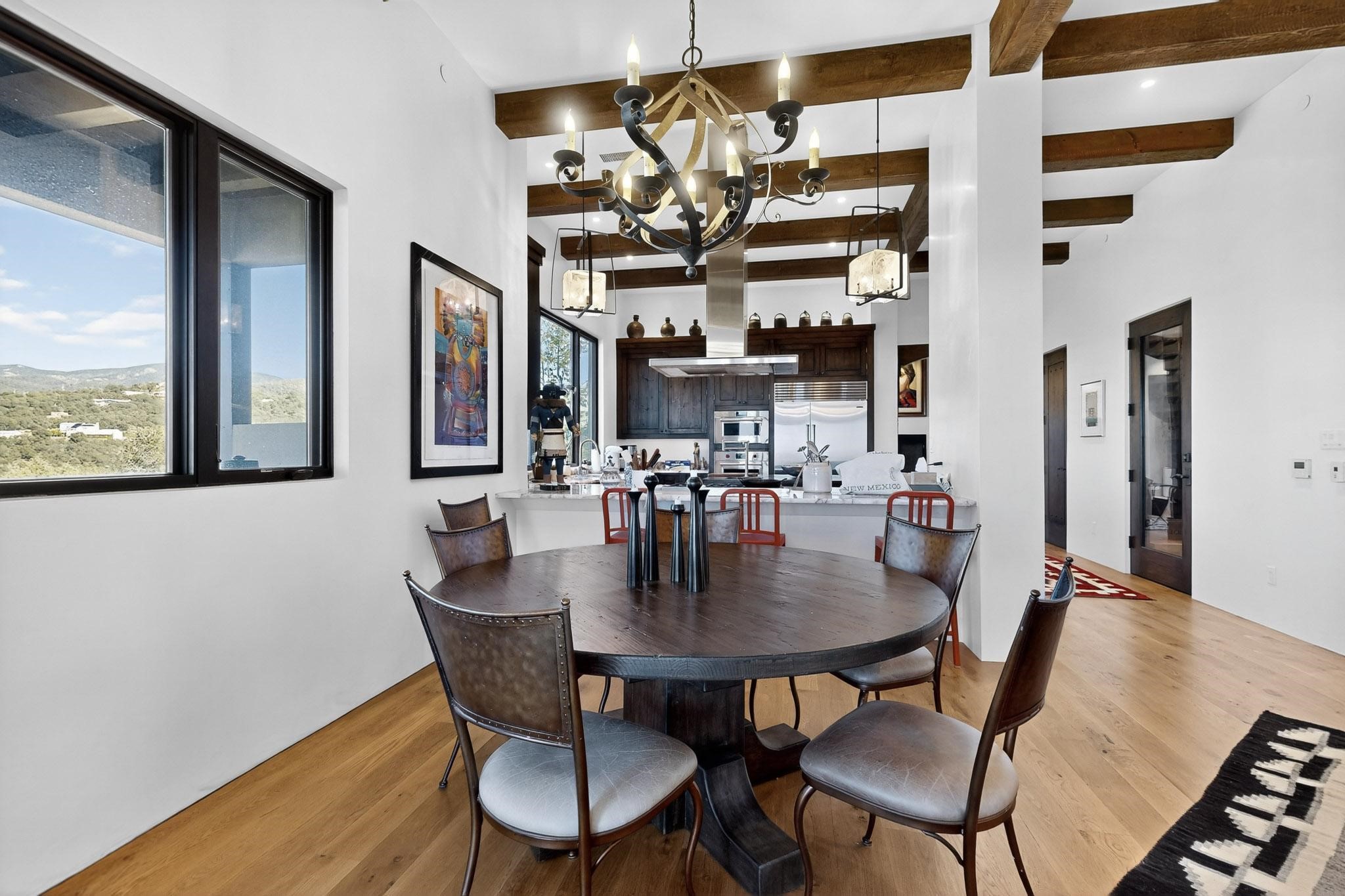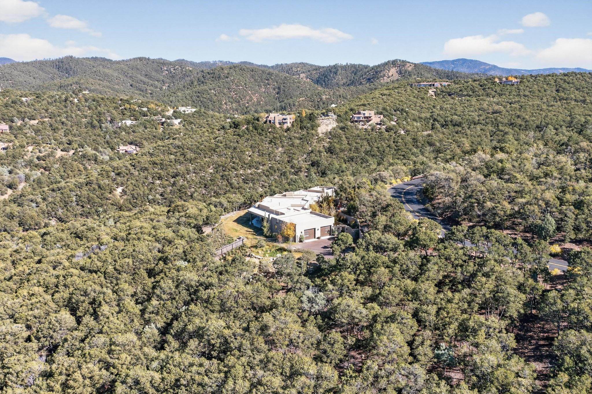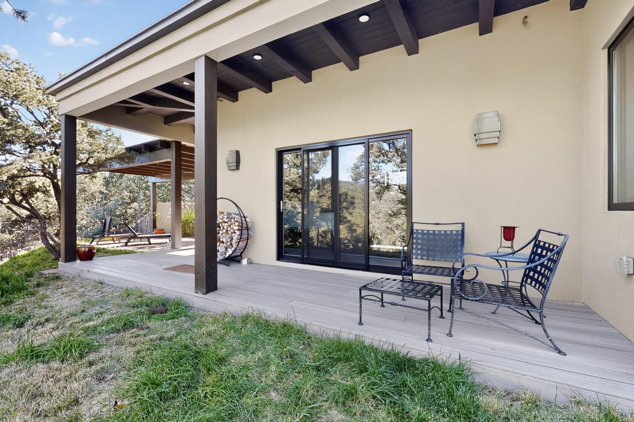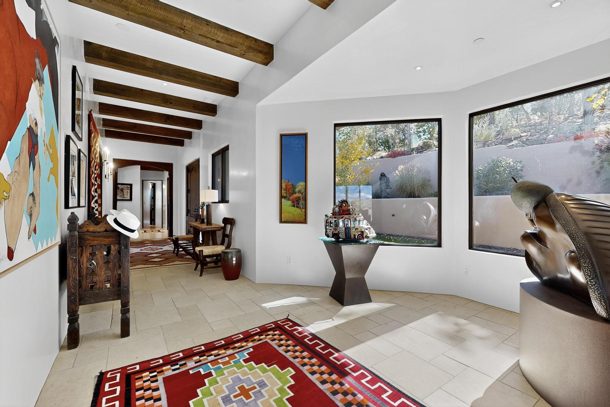 Stunning Santa Fe Contemporary Home in Prestigious High SummitExperience refined Santa Fe living in this recently completed custom home by acclaimed builder John Reeder Construction, located in the highly sought-after gated High Summit community off Hyde Park Road. This residence is approximately 3546 sq ft with 3 bedrooms and blends modern design with timeless southwest elements. The heart of this home is a true chef's kitchen, featuring exquisite custom cabinetry, a spacious center island with built-in service drawers, and seamless access to a climate-controlled wine room that accommodates hundreds of bottles- perfect for entertaining. The open-concept family room boasts a grand fireplace and opens onto a covered portal ideal for al fresco dining while taking in breathtaking sunsets over the Santa Fe skyline. In total, this home includes four fireplaces, creating warmth and ambiance throughout. A stunning gallery-style entry provides the perfect backdrop for art and sets the tone for the rest of the home. Enjoy sweeping views of the Sangre de Cristo and Jemez mountains, as well as sparkling city lights. The professionally landscaped grounds feature two tranquil fountains and is situated on two consolidated lots, ensuring exceptional privacy-- especially for the serene primary suite. Additional features include paved roads to the home which opens onto a gated driveway lined with stone pavers. The garage is oversized (approximately 1000 sq ft). The development has underground utilities and is situated in a prime location approximately 5 minutes from the historic Santa Fe Plaza, renowned galleries and top-tier dining.