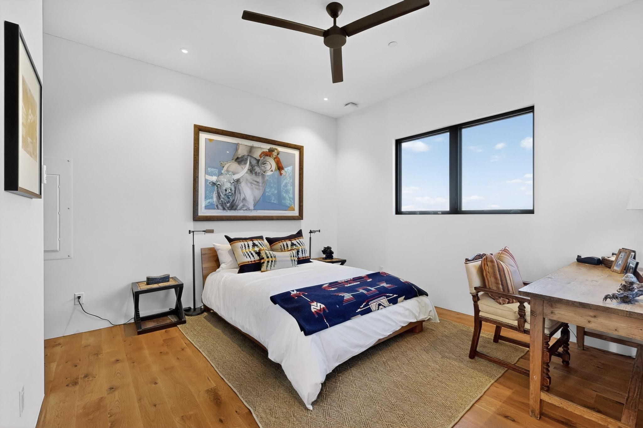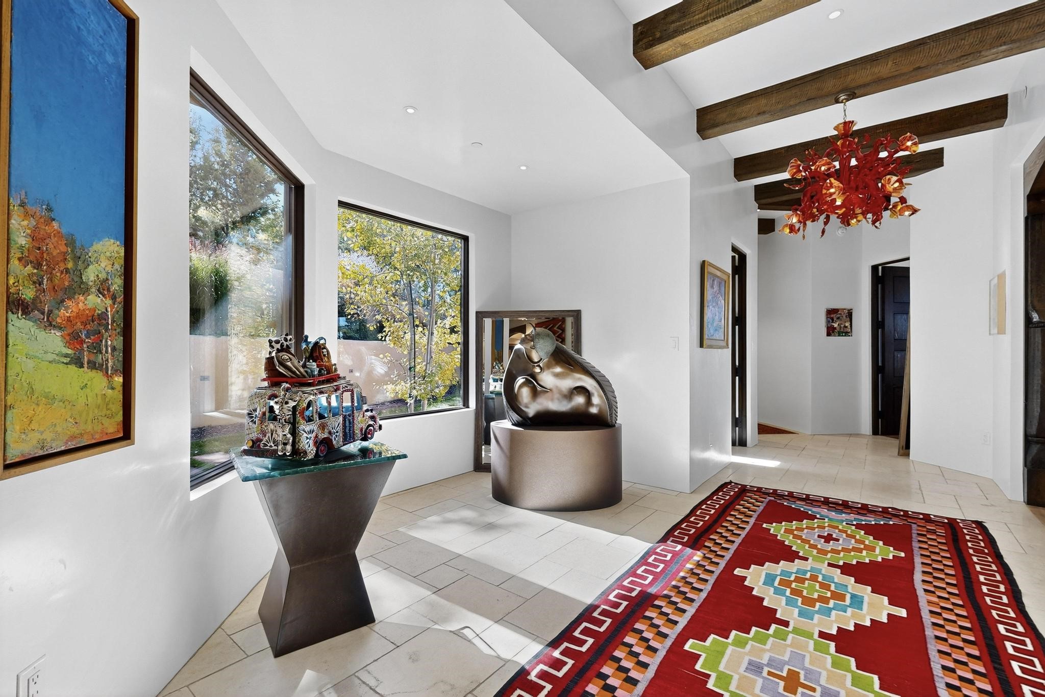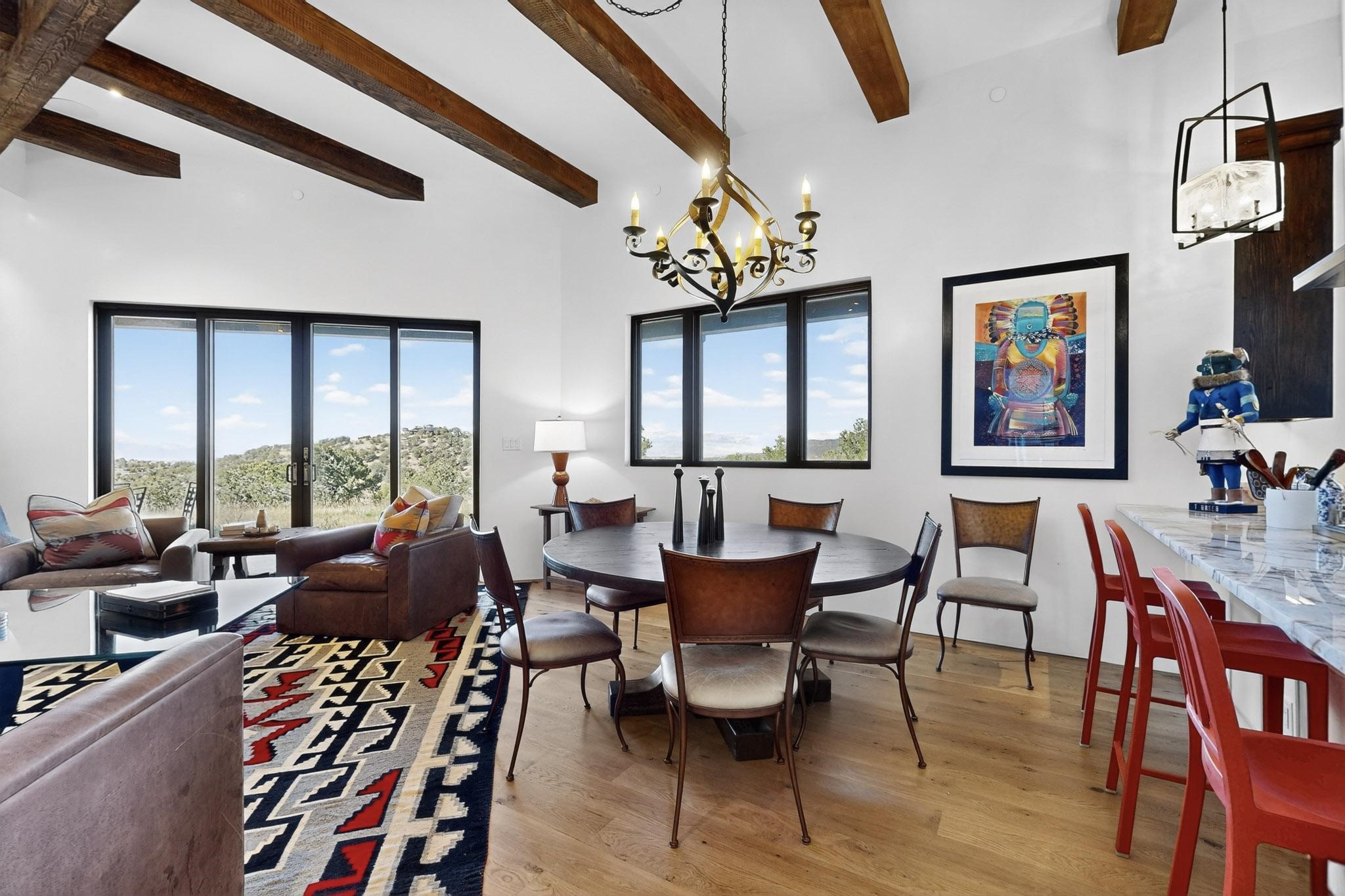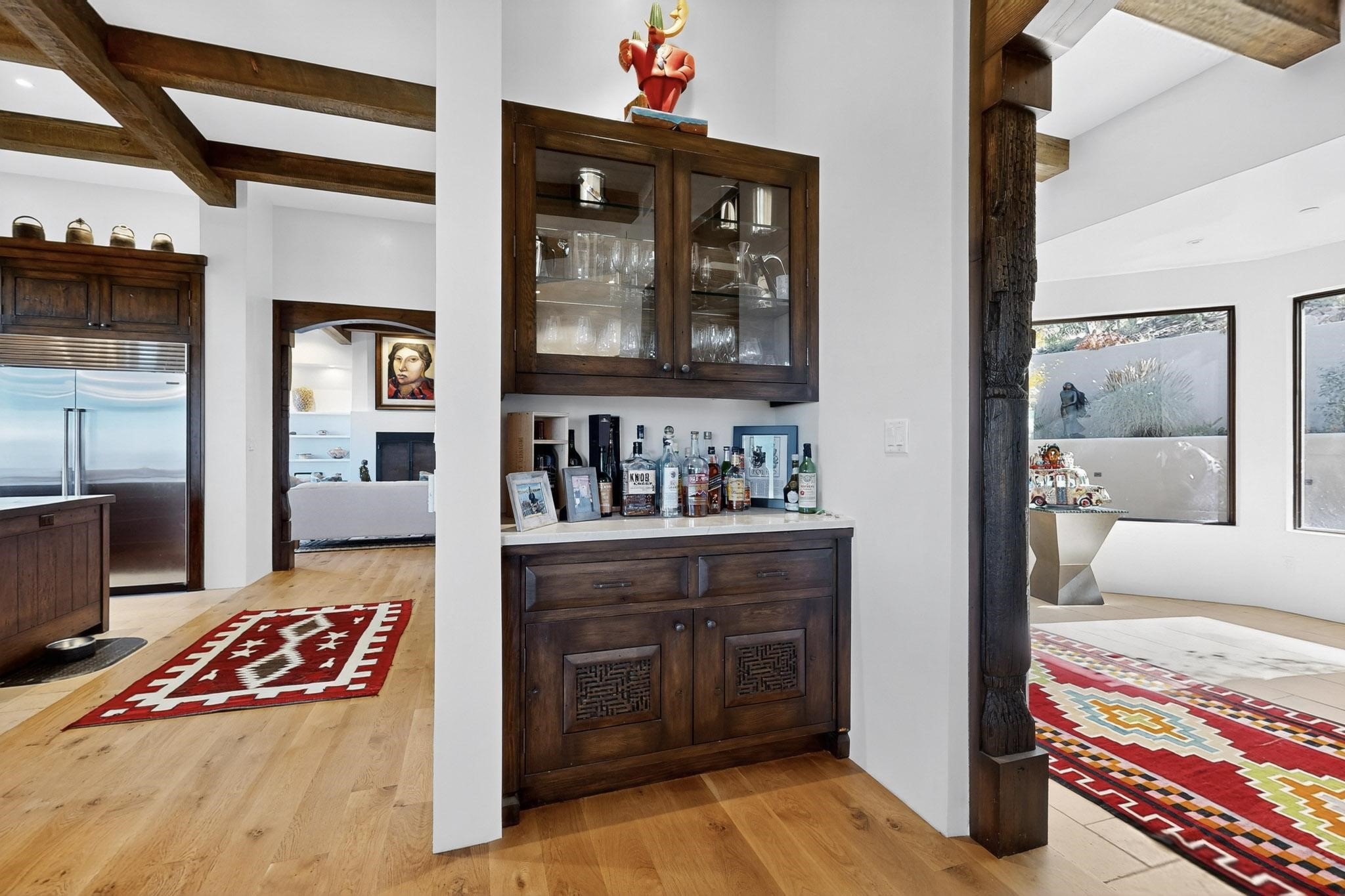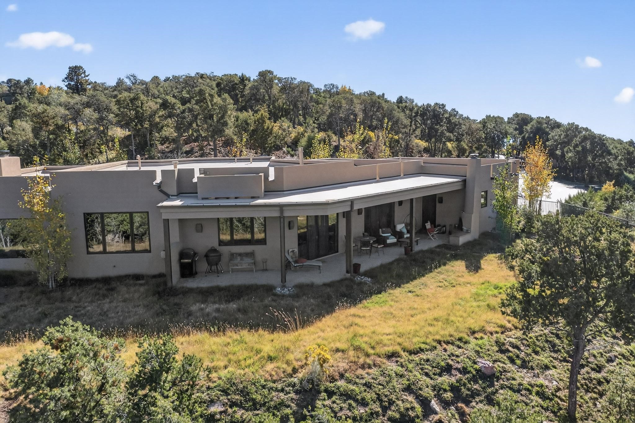Stunning Santa Fe Contemporary Home in Prestigious High SummitExperience refined Santa Fe living in this recently completed custom home by acclaimed builder John Reeder Construction, located in the highly sought-after gated High Summit community off Hyde Park Road. This residence is approximately 3546 sq ft with 3 bedrooms and blends modern design with timeless southwest elements. The heart of this home is a true chef's kitchen, featuring exquisite custom cabinetry, a spacious center island with built-in service drawers, and seamless access to a climate-controlled wine room that accommodates hundreds of bottles- perfect for entertaining. The open-concept family room boasts a grand fireplace and opens onto a covered portal ideal for al fresco dining while taking in breathtaking sunsets over the Santa Fe skyline. In total, this home includes four fireplaces, creating warmth and ambiance throughout. A stunning gallery-style entry provides the perfect backdrop for art and sets the tone for the rest of the home. Enjoy sweeping views of the Sangre de Cristo and Jemez mountains, as well as sparkling city lights. The professionally landscaped grounds feature two tranquil fountains and is situated on two consolidated lots, ensuring exceptional privacy-- especially for the serene primary suite. Additional features include paved roads to the home which opens onto a gated driveway lined with stone pavers. The garage is oversized (approximately 1000 sq ft). The development has underground utilities and is situated in a prime location approximately 5 minutes from the historic Santa Fe Plaza, renowned galleries and top-tier dining.