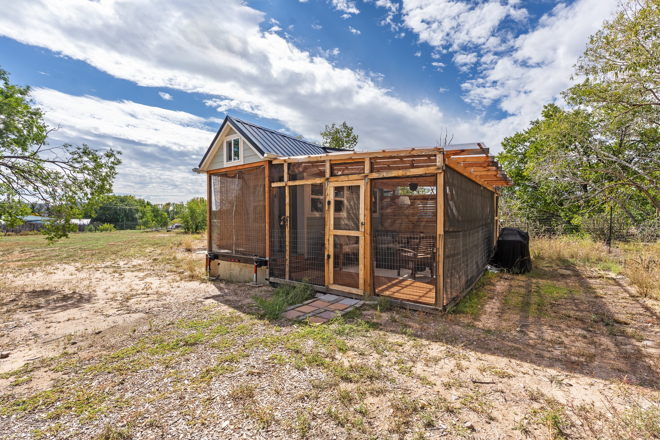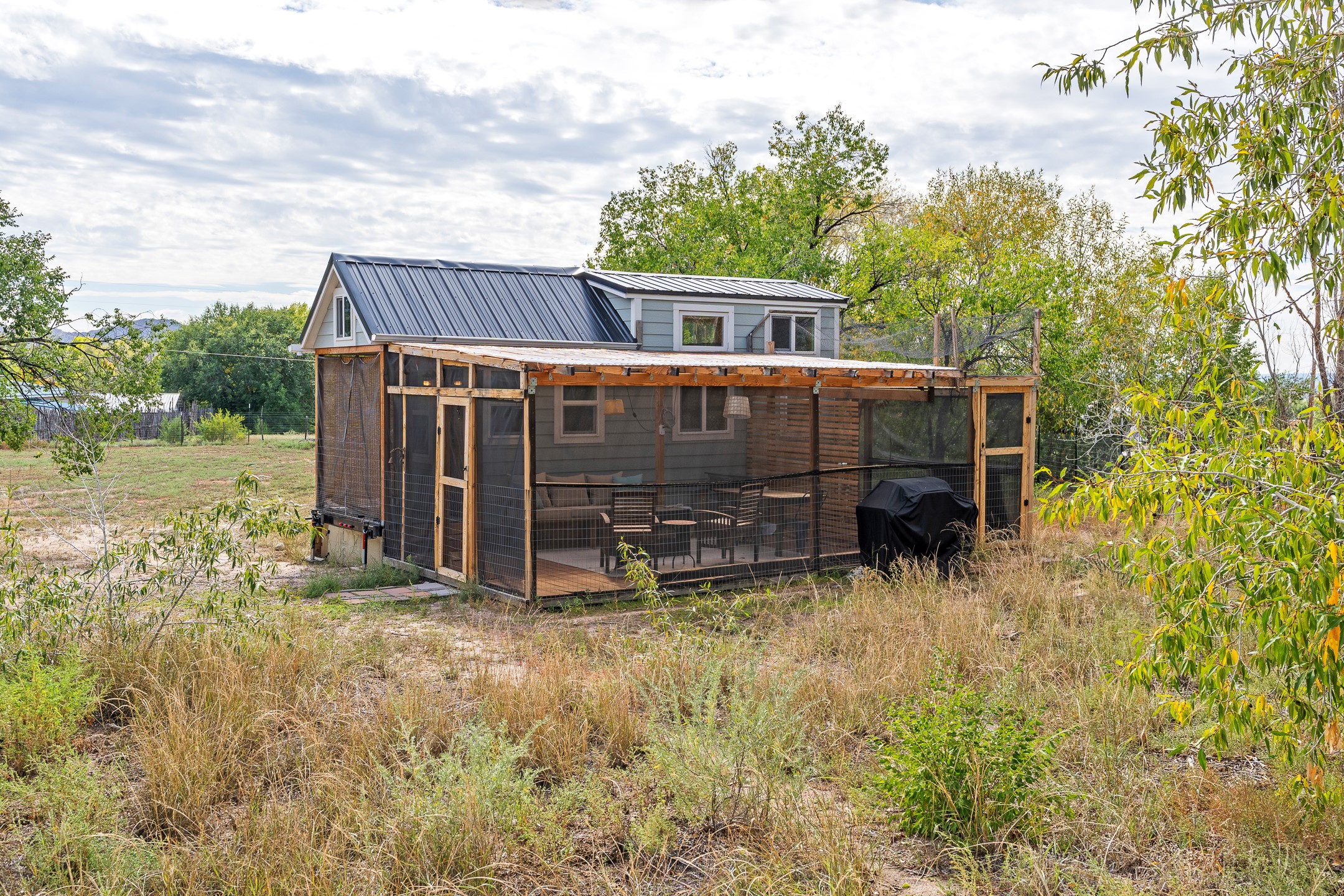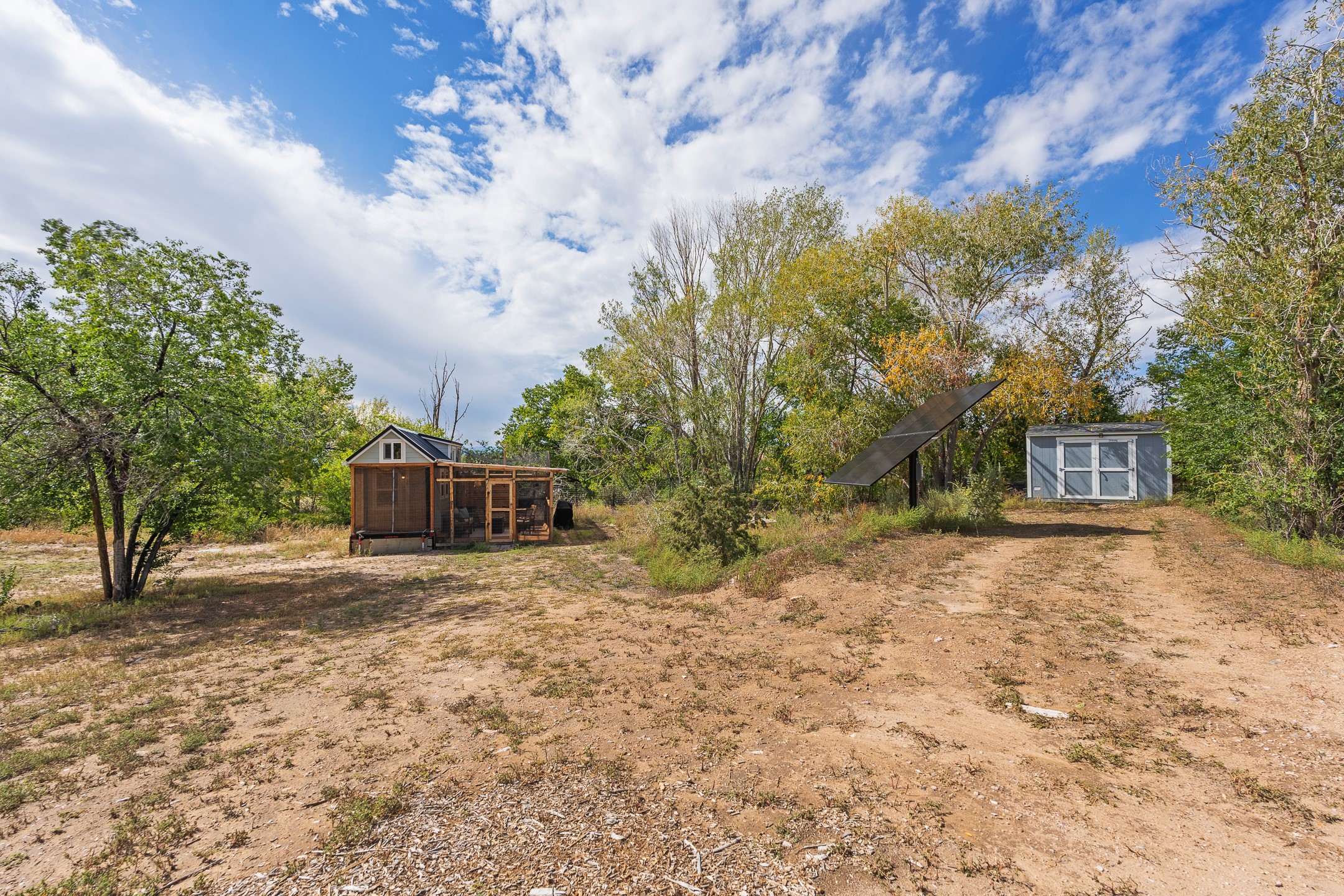 Escape to this beautifully crafted 28' x 8' tiny home, offering the perfect balance of comfort, efficiency, and seclusion. Nestled just a short drive from Santa Fe, Los Alamos, and Espaola, this thoughtfully designed retreat is functional for full-time living, a weekend getaway, or an off-grid workspace. Step inside to discover a bright and functional layout featuring a well-appointed kitchenette, a 3/4 bath connected to its own septic system, and a 72 sq ft sleeping loft perfect for restful nights. The home is fully powered by solar energy and equipped with a mini-split system for year-round heating and cooling, along with a high-efficiency water heater to keep utilities low and comfort high. Whether you're seeking solitude, sustainability, or a simplified lifestyle, this tiny home offers it all in a peaceful and private setting -- with the convenience of nearby cities just minutes away.