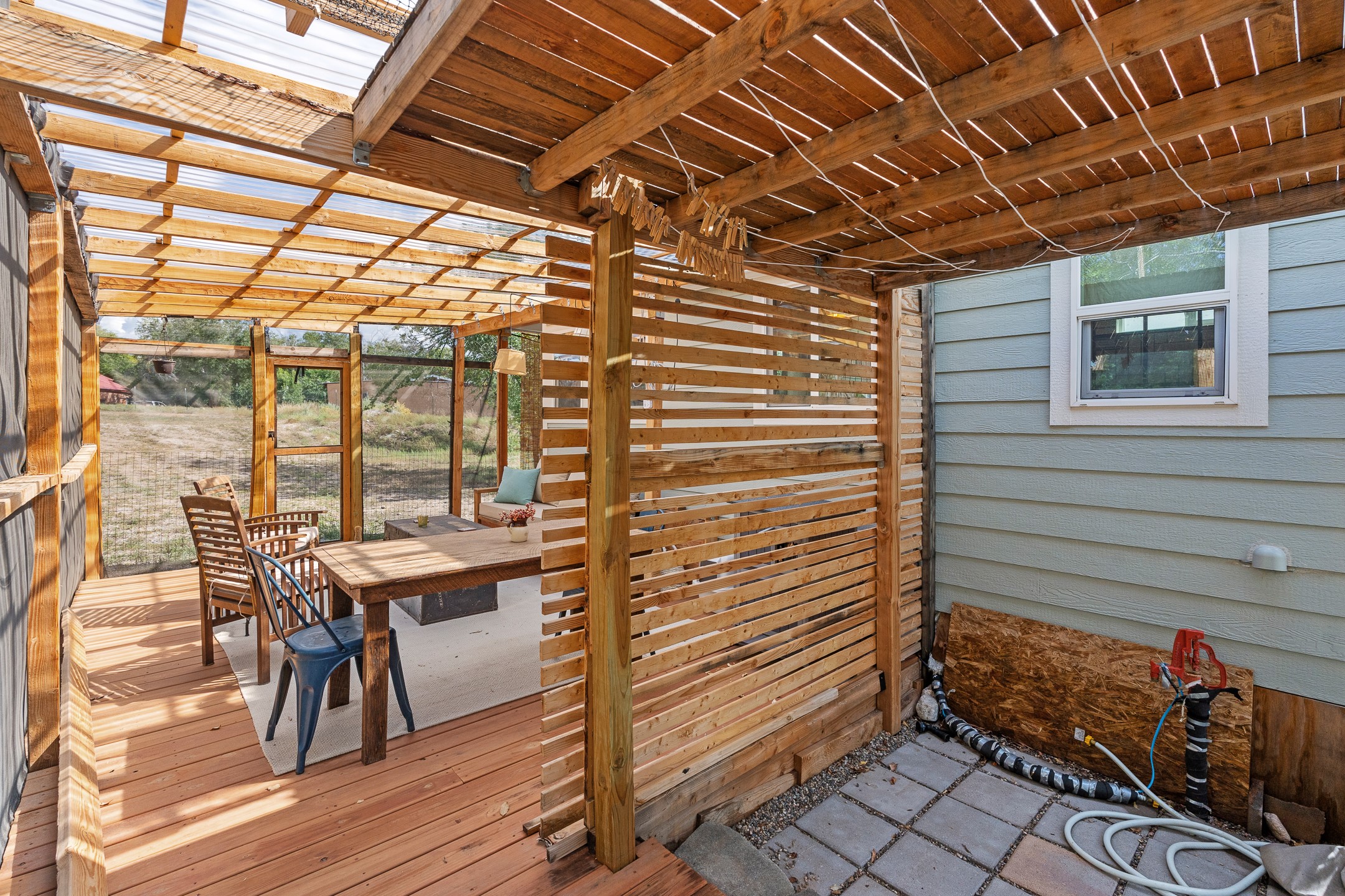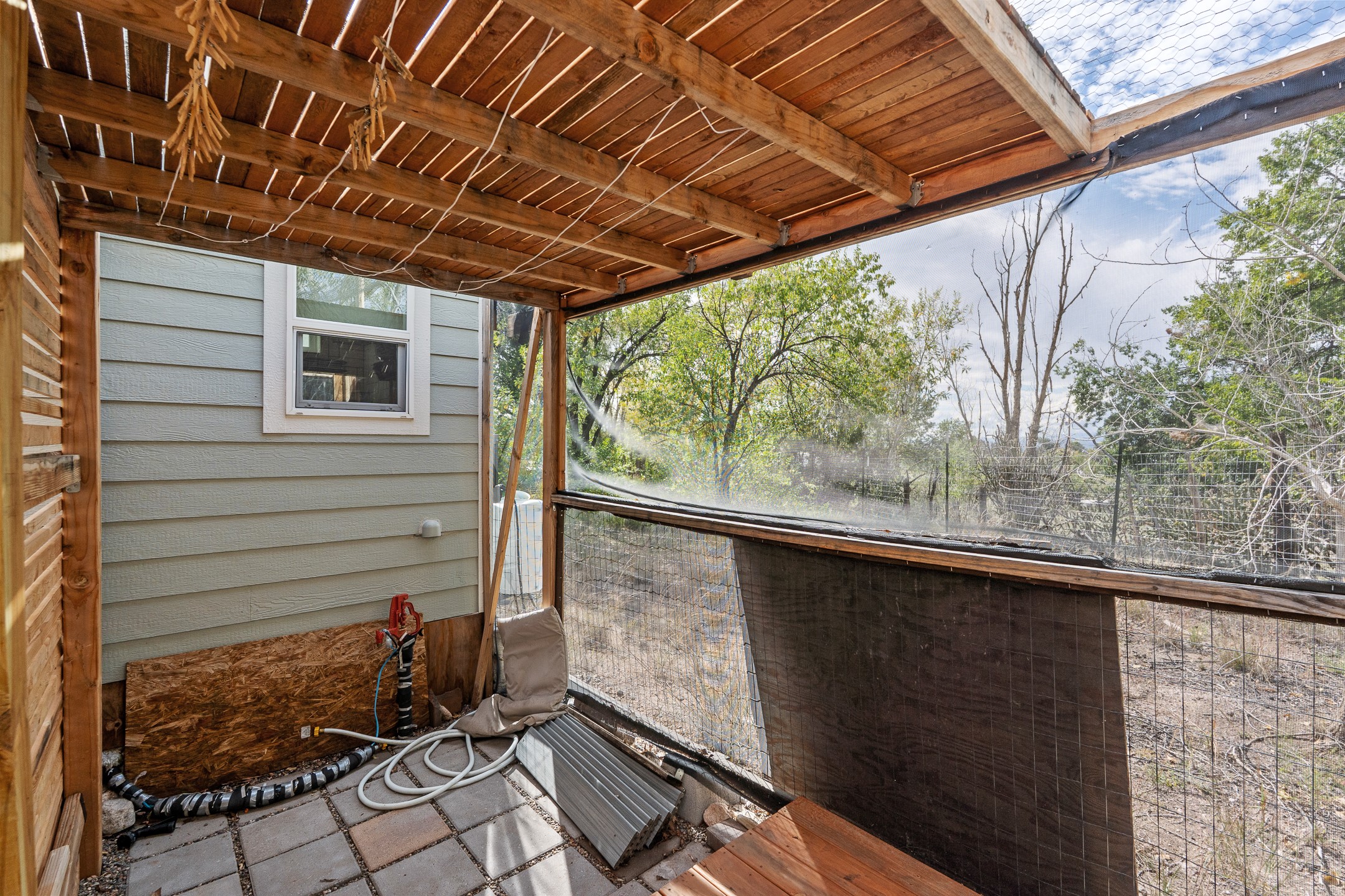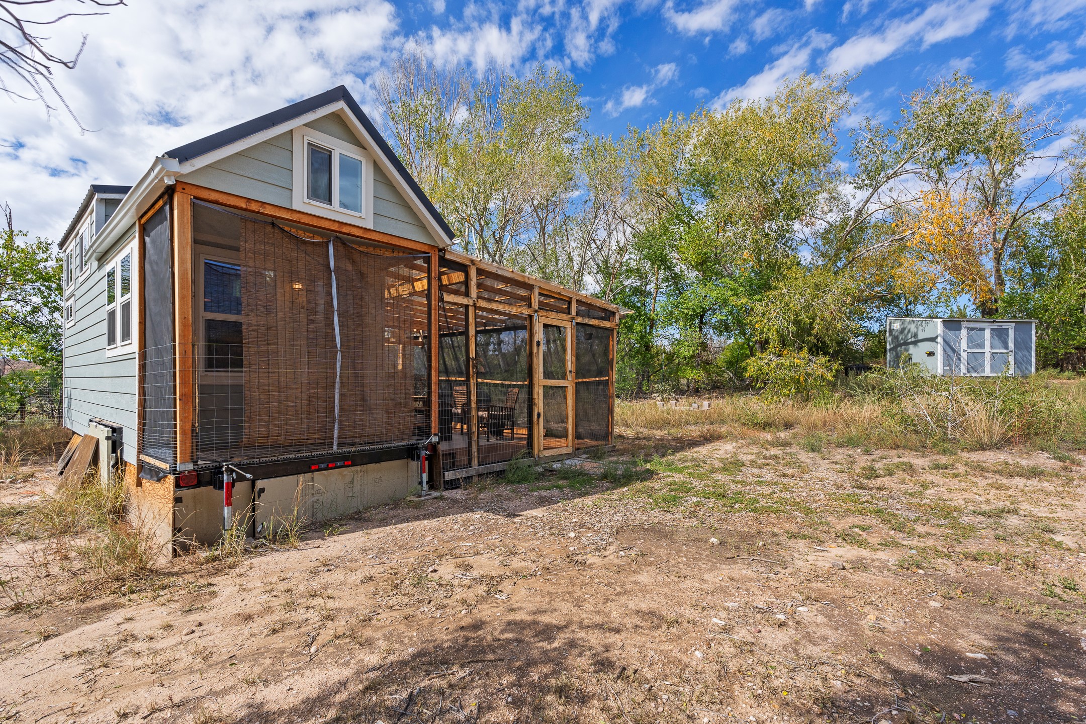 Escape to this beautifully crafted 28' x 8' tiny home, offering the perfect balance of comfort, efficiency, and seclusion. Nestled just a short drive from Santa Fe, Los Alamos, and Espaola, this thoughtfully designed retreat is functional for full-time living, a weekend getaway, or an off-grid workspace. Step inside to discover a bright and functional layout featuring a well-appointed kitchenette, a 3/4 bath connected to its own septic system, and a 72 sq ft sleeping loft perfect for restful nights. The home is fully powered by solar energy and equipped with a mini-split system for year-round heating and cooling, along with a high-efficiency water heater to keep utilities low and comfort high. Whether you're seeking solitude, sustainability, or a simplified lifestyle, this tiny home offers it all in a peaceful and private setting -- with the convenience of nearby cities just minutes away.