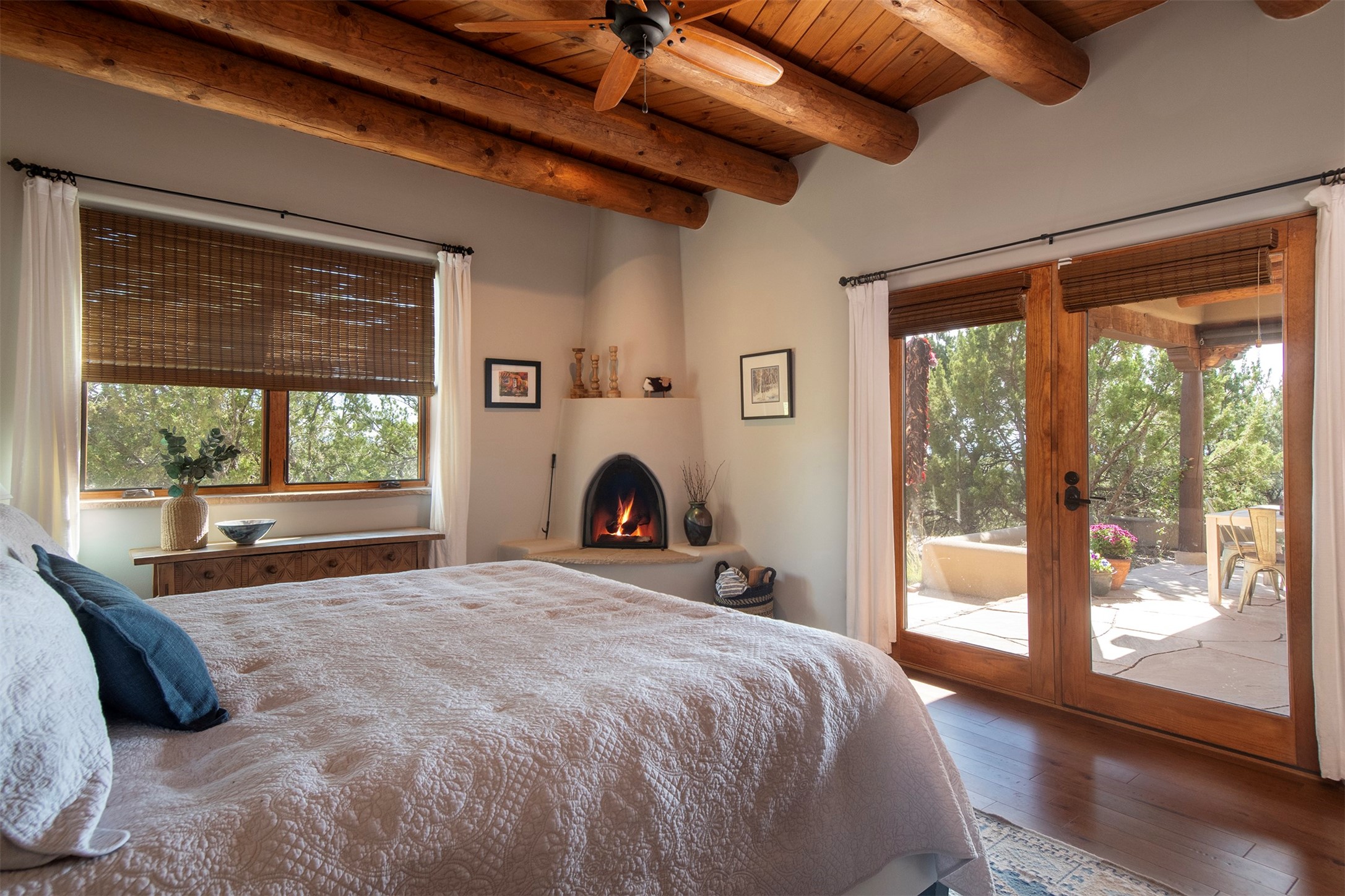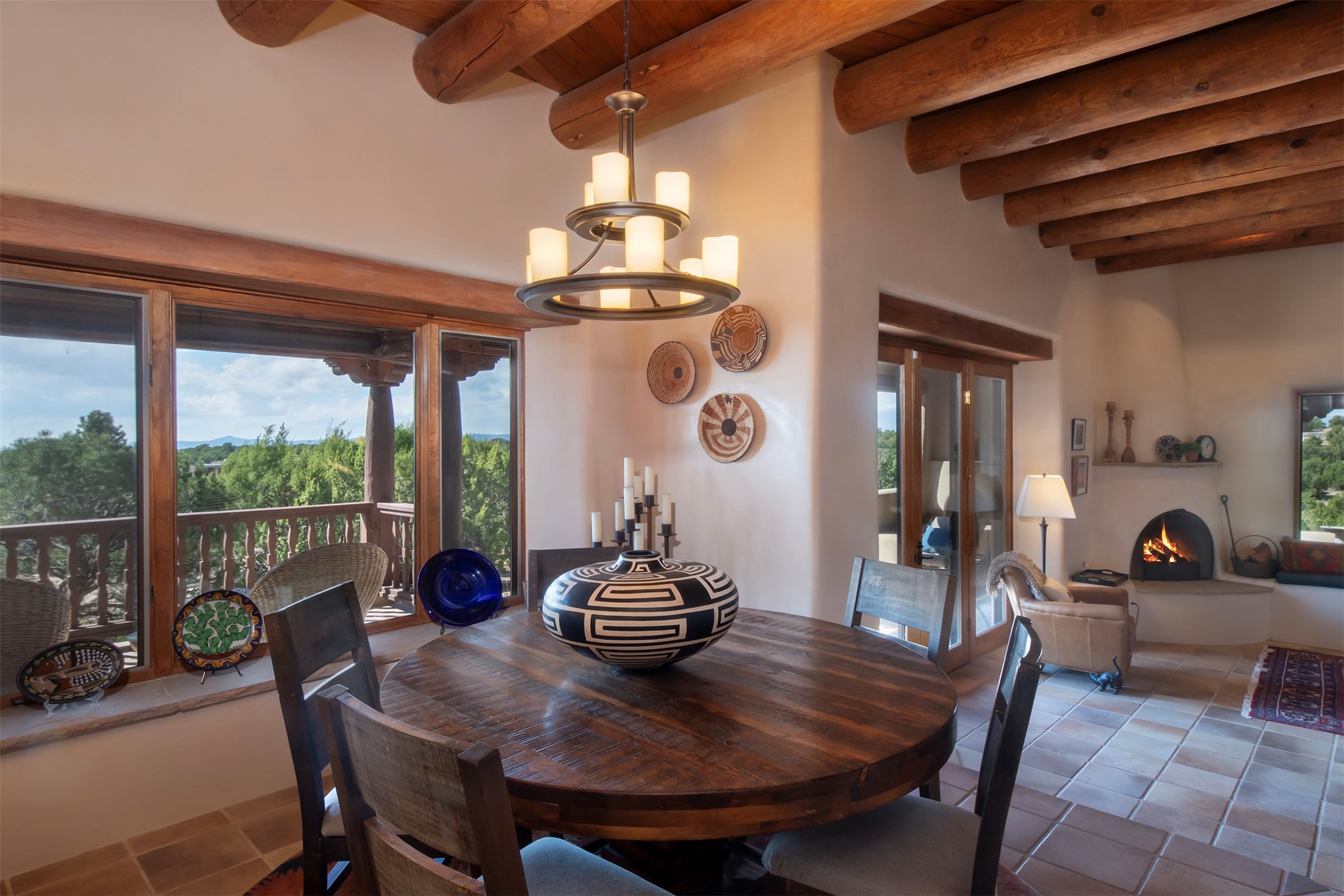 Set within the prestigious Las Campanas community, this exceptional 4-bedroom, 4-bathroom Santa Fe home showcases timeless Southwestern architecture blended with modern sophistication. Thoughtfully updated, the residence features numerous recent improvements. Expansive living spaces with soaring ceilings and large windows capture breathtaking mountain and sunset views. The gourmet kitchen, elegant dining area, and inviting outdoor patios create a seamless flow for entertaining or peaceful retreat. Offering access to world-class amenities, golf, and fine dining, 18 Arriba Circle represents the best of luxury living in Las Campanas--a perfect harmony of comfort, style, and Santa Fe charm.