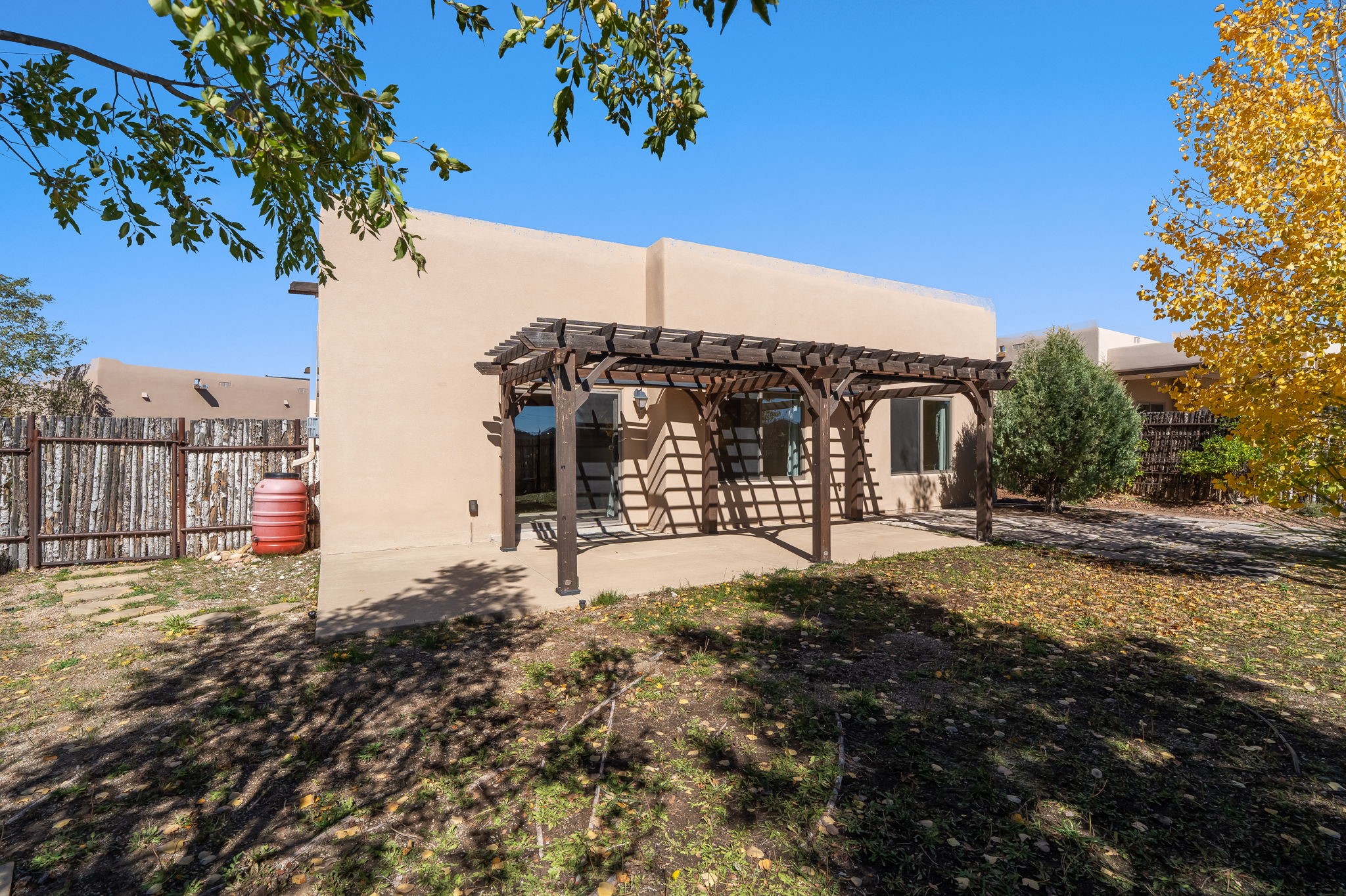 Mountain views from this sunny and charming single-level home with in-floor radiant heat. Located in the WOOD GORMLEY school district and on a cul-de-sac this home has been pre-inspected and is super clean and ready to go. All new stainless appliances with an open floorplan with kitchen, living and dining rooms. Spacious main primary bedroom with double sinks in the 3/4 bath and a walk in closet. Roof maintenance in 2024 with a 2-year warranty. Yard is landscaped on a drip and is fully fenced with two happy Aspen trees in the backyard. Gas fireplace in living room. Proper laundry room with 2024 washer and dryer. Ideal location close to shopping, schools, hospitals and 10 minutes from the Santa Fe Plaza. Six rain barrels stay with the property. There is a whole-house fan and surge protection. ADT alarm system can be transferred to new owners.