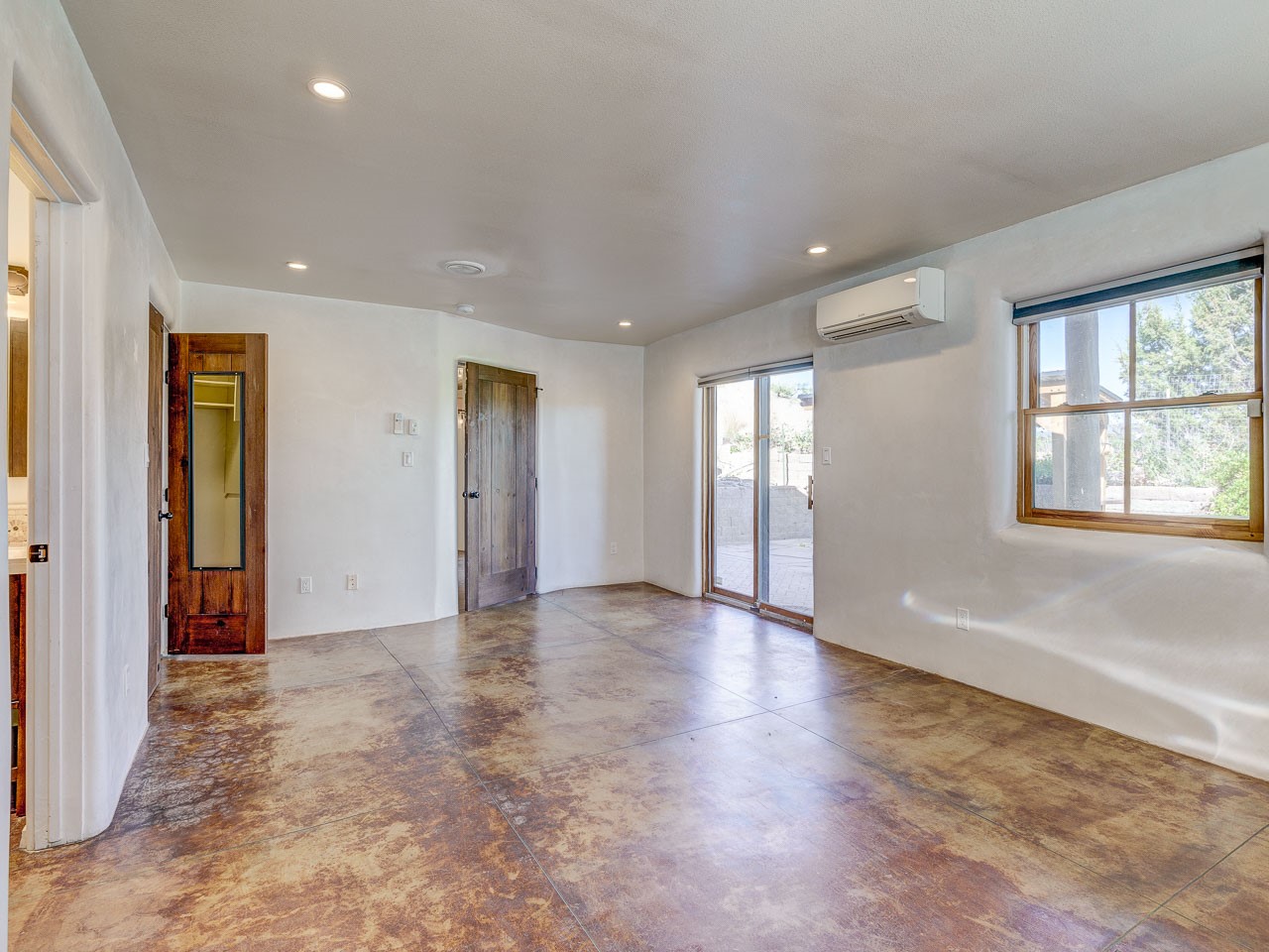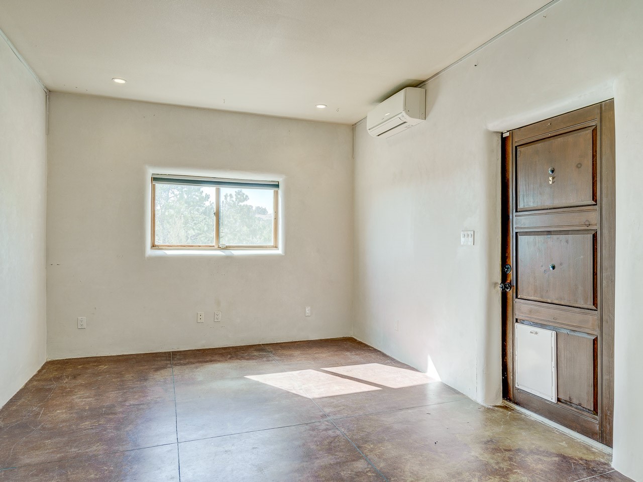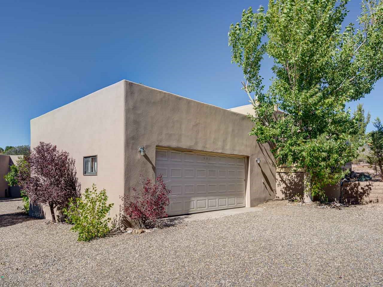 Private Santa Fe Retreat: Main House & Casita on a secluded 0.84 acre lot makes 801 Calle David the ultimate Santa Fe compound. This stunning property is a rare find, offering both a spacious main residence and a fully equipped, private 1 bedroom/1bathroom/1 car garage guest casita for unparalleled flexibility and privacy. Main Residence Highlights (2,559 Sq Ft): 4 Bedrooms with excellent separation, plus a bonus room that can be used as a media room or space to display your art or memorabilia. This rastra constructed home has beautiful diamond finished plaster walls, custom hardwood doors and a cozy two sided fireplace for Santa Fe's cool evenings. Enjoy multiple outdoor living spaces, including two decks and two covered patios, one complete with a relaxing hot tub and some mountain views. The main house has an attached two-car garage and the casita has its own attached one-car garage. The casita (840 Sq Ft) can be a true home-away-from-home for visitors or a perfect rental opportunity. Located in a desirable Santa Fe neighborhood, this property masterfully blends the best of New Mexico's timeless architecture with the space and amenities needed for modern living. The solar array is an added bonus taking advantage of Santa Fe's average 300 days of sunshine to reduce your utility costs.