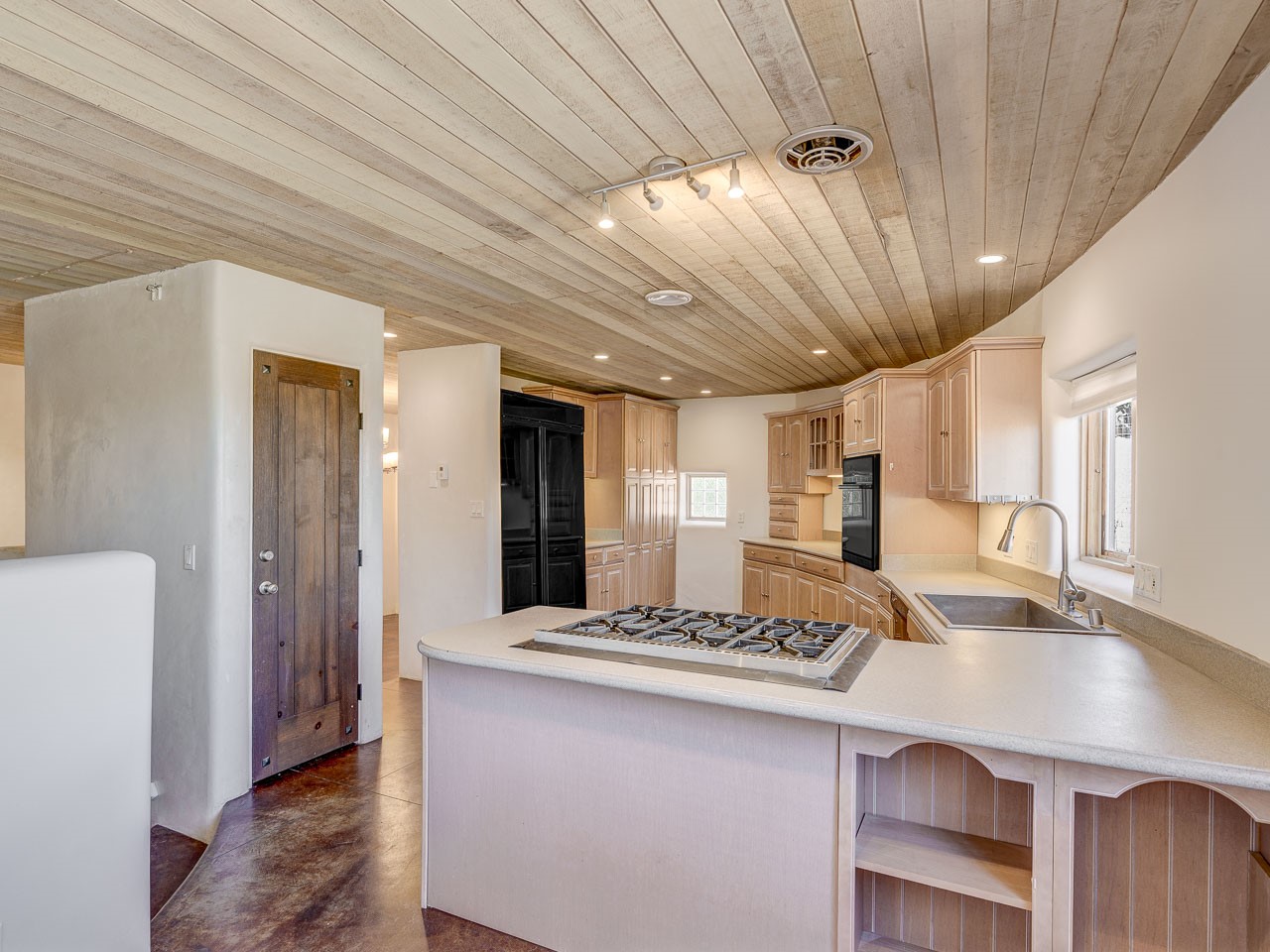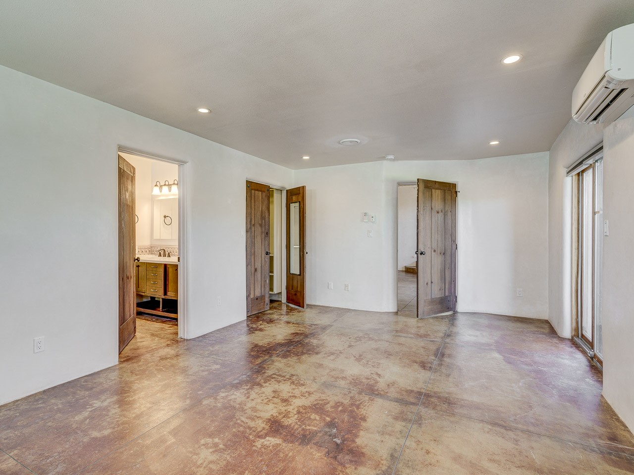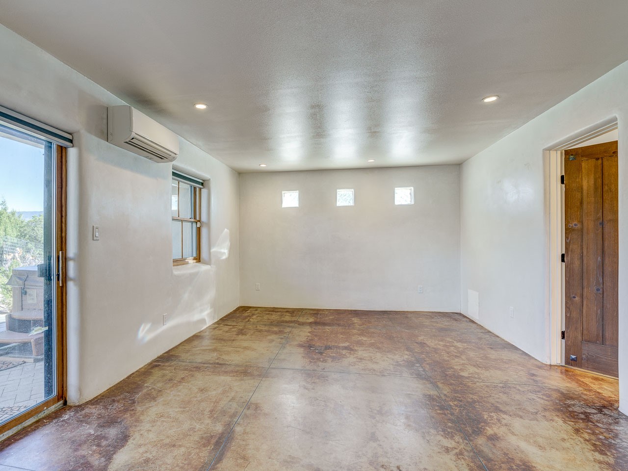Private Santa Fe Retreat: Main House & Casita on a secluded 0.84 acre lot makes 801 Calle David the ultimate Santa Fe compound. This stunning property is a rare find, offering both a spacious main residence and a fully equipped, private 1 bedroom/1bathroom/1 car garage guest casita for unparalleled flexibility and privacy. Main Residence Highlights (2,559 Sq Ft): 4 Bedrooms with excellent separation, plus a bonus room that can be used as a media room or space to display your art or memorabilia. This rastra constructed home has beautiful diamond finished plaster walls, custom hardwood doors and a cozy two sided fireplace for Santa Fe's cool evenings. Enjoy multiple outdoor living spaces, including two decks and two covered patios, one complete with a relaxing hot tub and some mountain views. The main house has an attached two-car garage and the casita has its own attached one-car garage. The casita (840 Sq Ft) can be a true home-away-from-home for visitors or a perfect rental opportunity. Located in a desirable Santa Fe neighborhood, this property masterfully blends the best of New Mexico's timeless architecture with the space and amenities needed for modern living. The solar array is an added bonus taking advantage of Santa Fe's average 300 days of sunshine to reduce your utility costs.