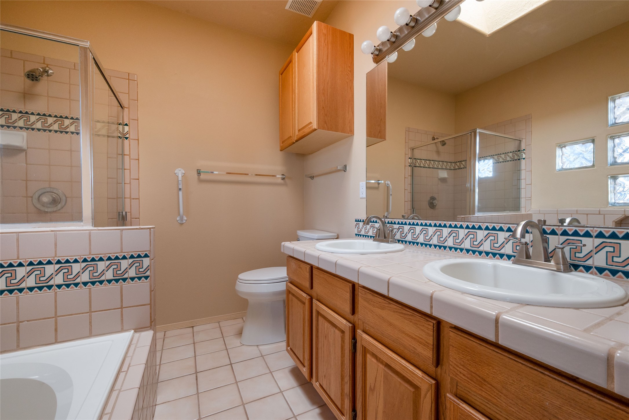 Home for the holidays in the sought-after Eldorado at Santa Fe community! Residents enjoy outstanding amenities including scenic walking and biking trails, dog park, greenbelts, basketball and tennis courts, pickleball, and a seasonal swimming pool. This inviting, move-in ready home has been freshly painted and features a heated sunroom filled with natural light--perfect for a studio, office, or relaxation space. The oversized, finished two-car garage offers abundant storage, while ample guest parking ensures convenience. Nestled on a cul-de-sac bordering a greenbelt, the property provides privacy and open views. The fenced yard offers pet security, and the generous lot includes fenced and gated RV parking plus room for gardening, growing, or simply enjoying the outdoors. Experience stunning sunsets and sweeping vistas that make Eldorado so special. HOA fees are just $620 annually per household. Don't miss this opportunity--homes like this are rare and won't last long!