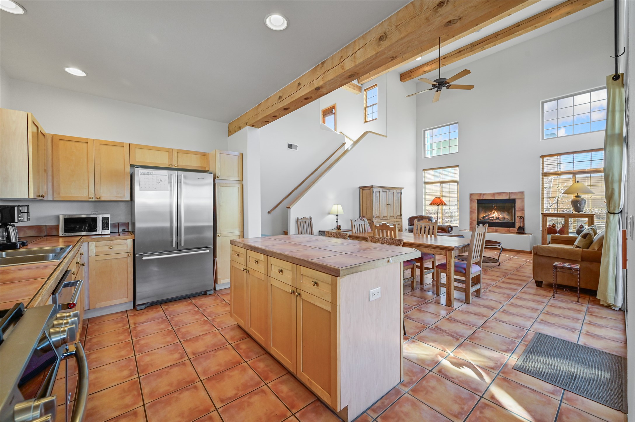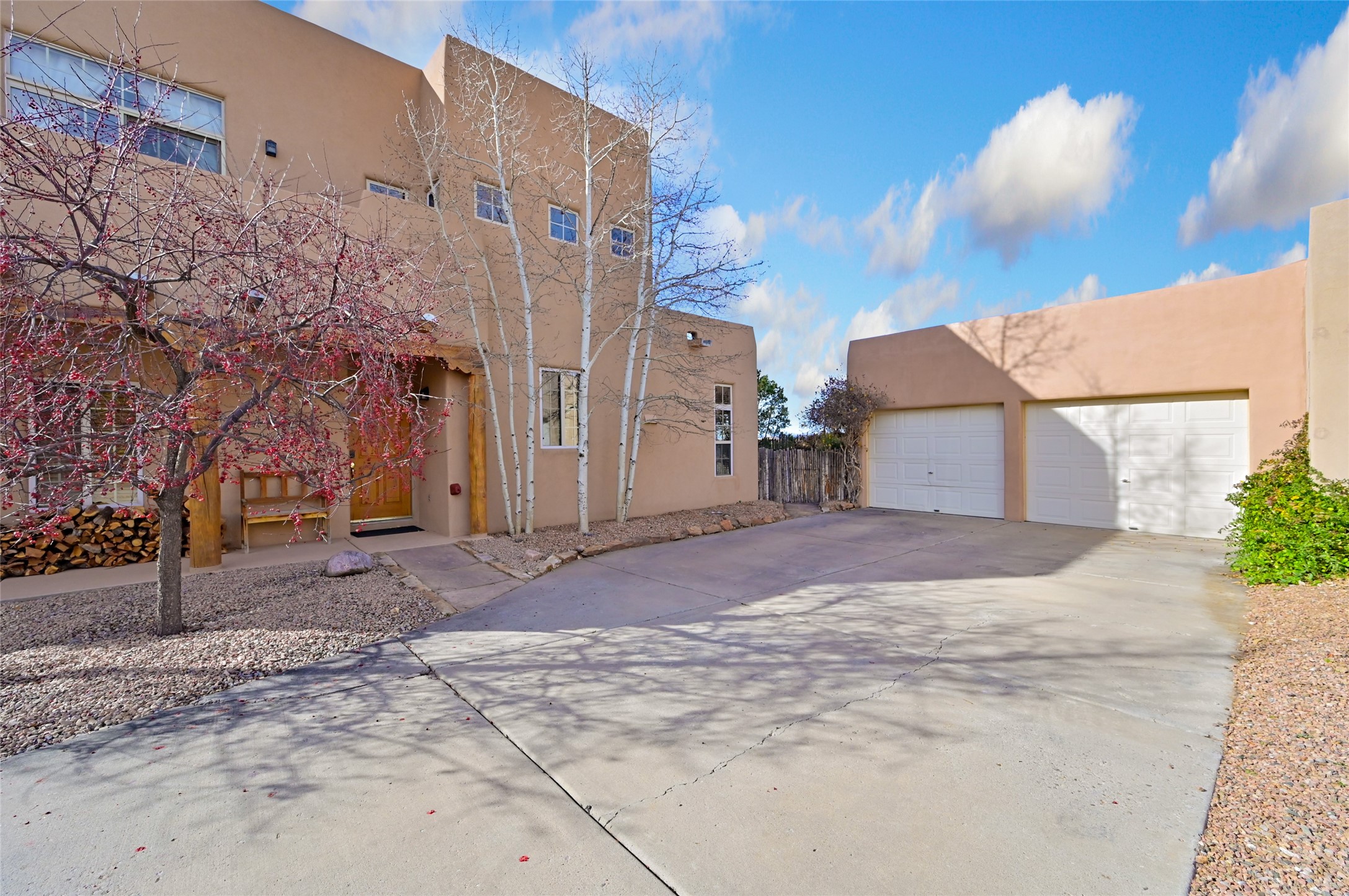 There is a comfy cozy feeling with this home. The gathering areas of the living room, dining room, kitchen and breakfast nook all flow nicely together. yet the Cathedral beamed ceilings add a feeling of elegance. Views from the two second story decks are situated to take advantage of both of Santa Fe's beautiful mountain ranges, as well as sunsets and sunrises. The club house community of Nava Ade offers an outdoor pool and hot tub (seasonal) along with locker rooms, sauna, work out room and community room. The trail system is part of the Chamisa and Las Soleras Trails which is great for walkers, runners, bikers or anyone just wanting to get out