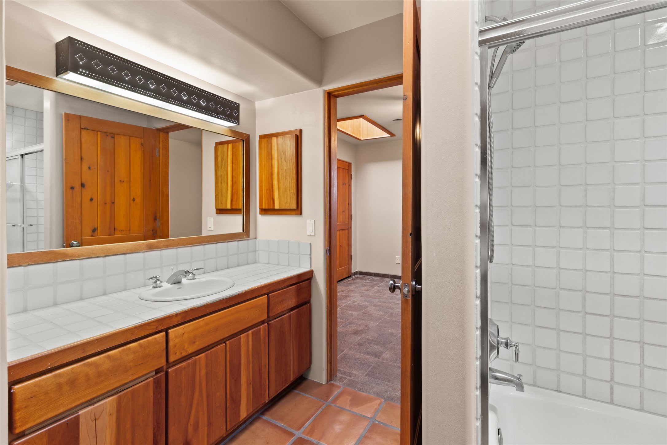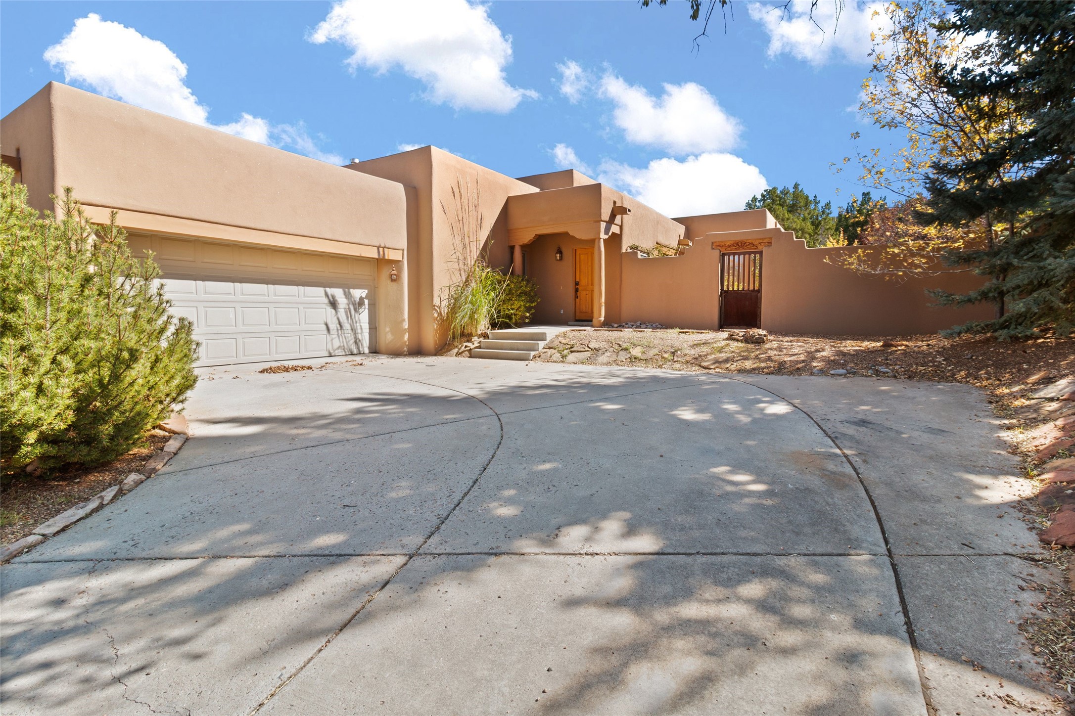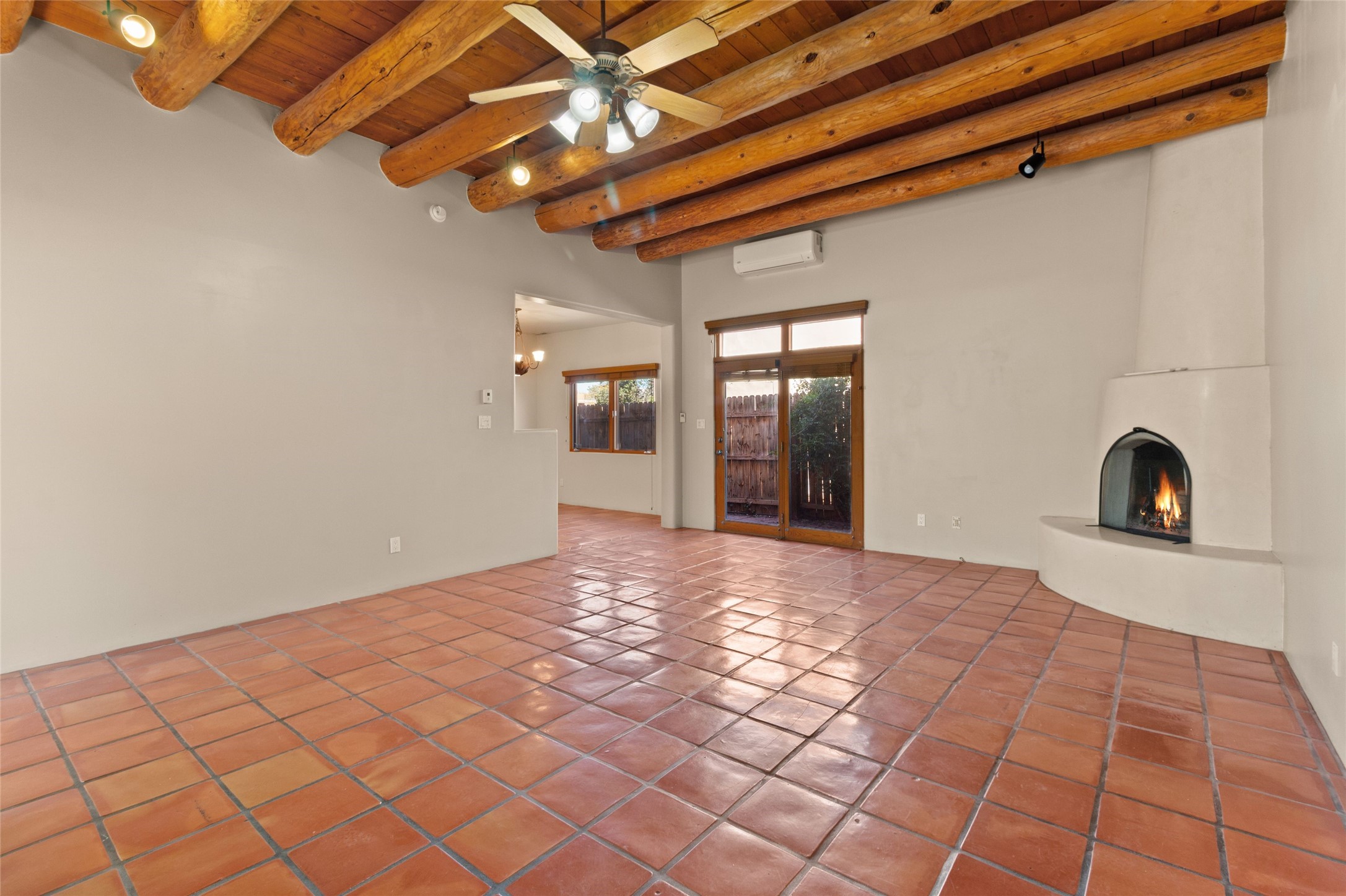 Classic Santa Fe charm meets modern comfort in this beautifully maintained 3-bedroom home spanning 1,907 square feet. Traditional wood vigas, Saltillo tile floors, and a classic kiva fireplace create an authentic Southwestern ambiance throughout. The updated kitchen features stainless steel appliances and opens seamlessly to inviting living and dining spaces -- perfect for both everyday living and entertaining. The home has been thoughtfully upgraded, blending contemporary touches with timeless Santa Fe style. The spacious primary suite offers a private retreat, while the attached 2-car garage adds convenience and functionality. The yard is a private oasis filled with mature rose bushes. Located in a desirable Santa Fe neighborhood of Pueblos del Sol, which has walking paths, parks and playgrounds., this home embodies the best of classic design and modern living.
