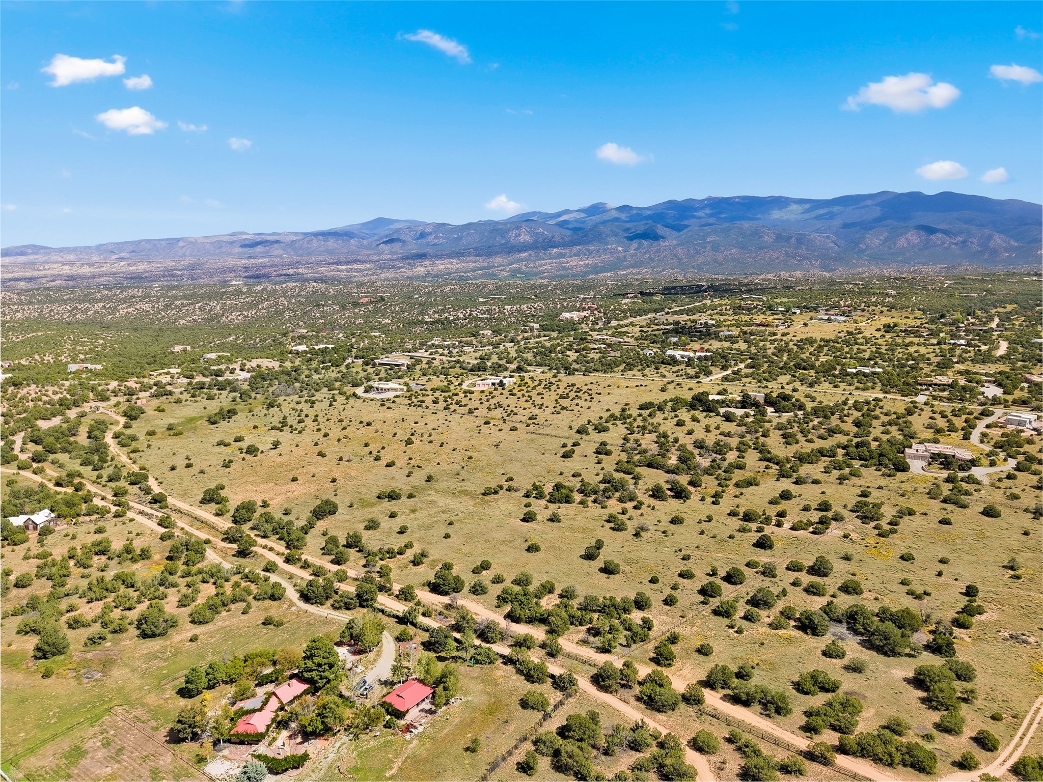 This wonderful, gated property has big views of Sangres de Cristo Mountains and sunset views over the Jemez Mountains. This is a no hassle site, with flat terrain for easy building, a shared well not subject to Aamodt and simple covenants only 15 minutes from the plaza. This gorgeous property is ready for your beautiful new home.